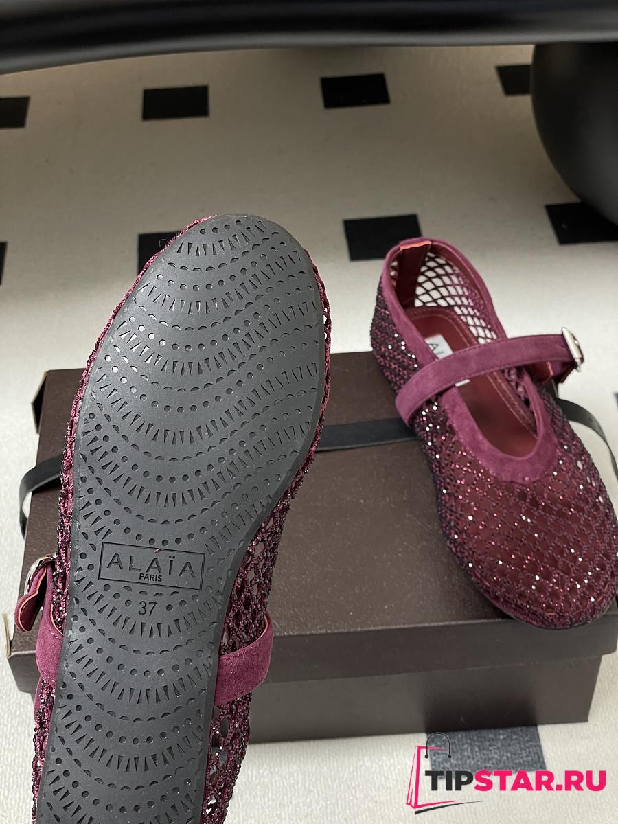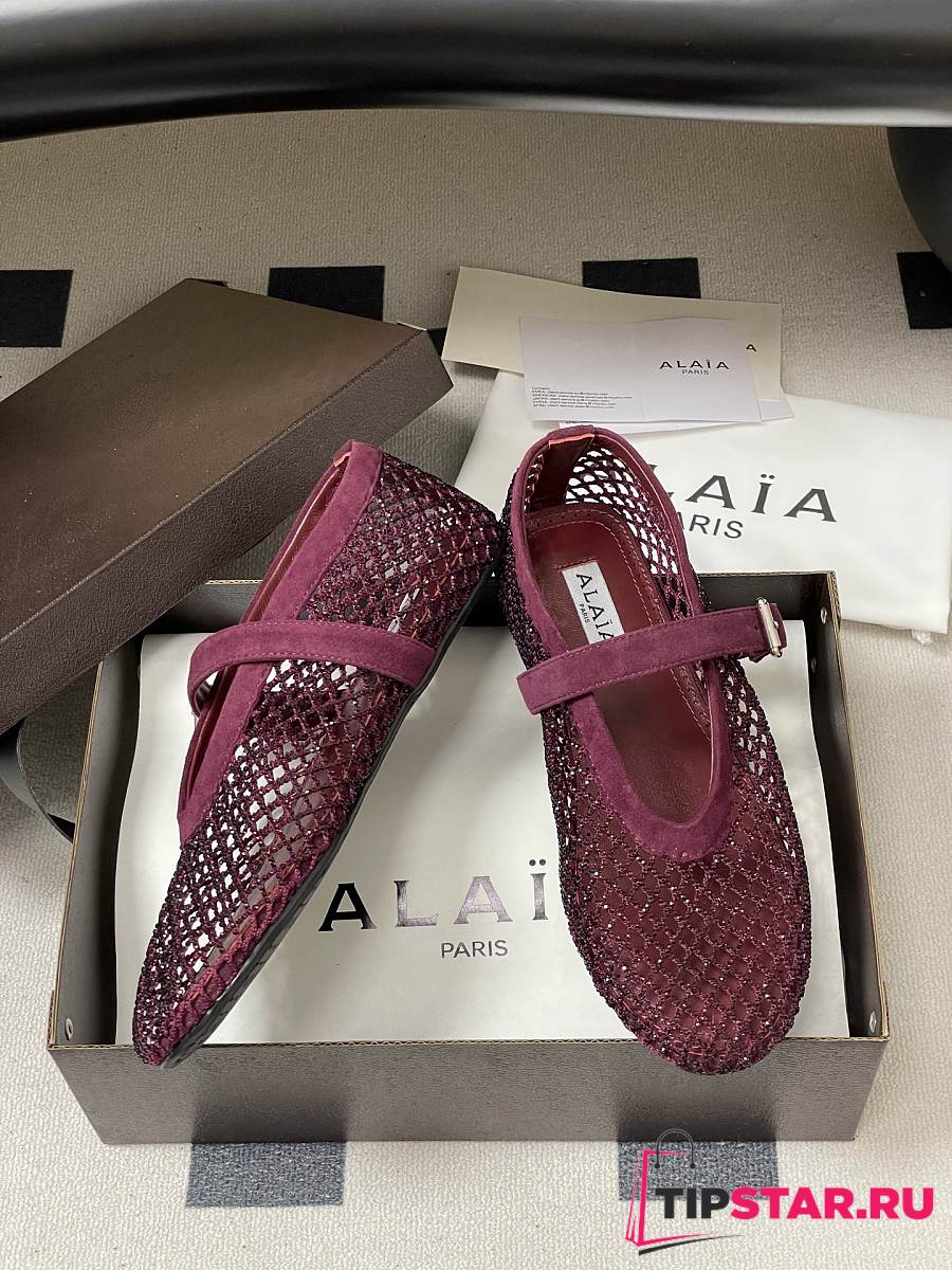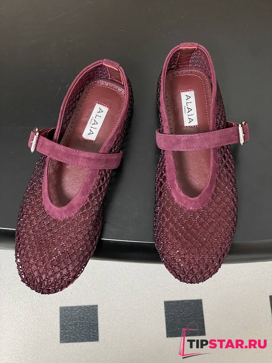 Alaïa Brown Mesh Ballet Flats In Burgundy