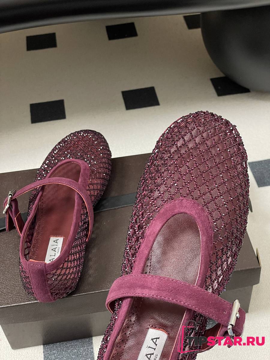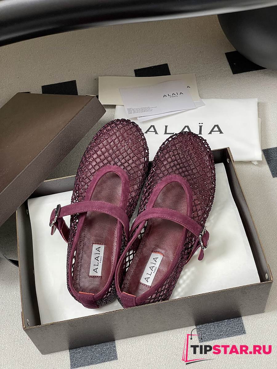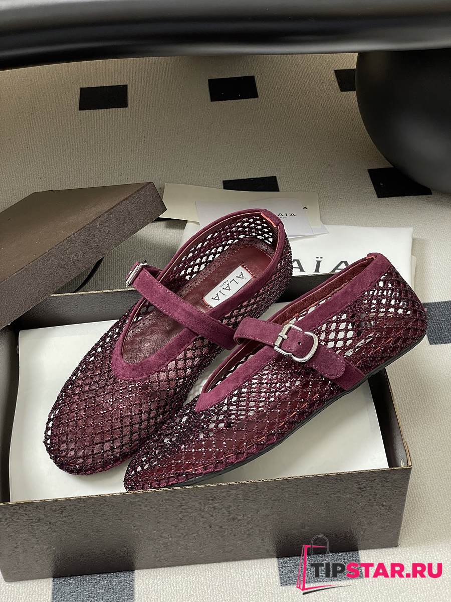 Alaïa Brown Mesh Ballet Flats In Burgundy