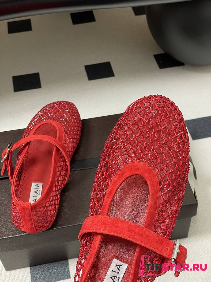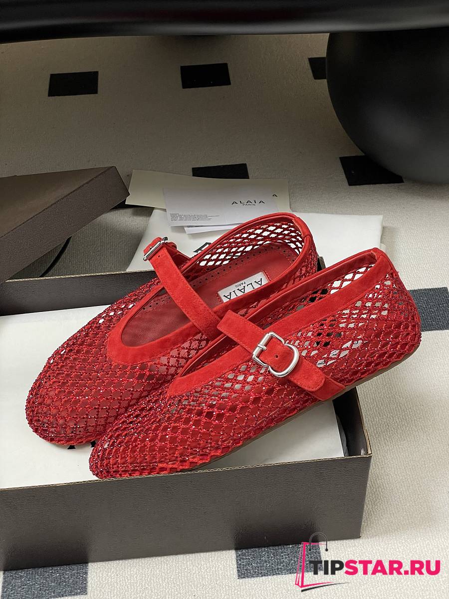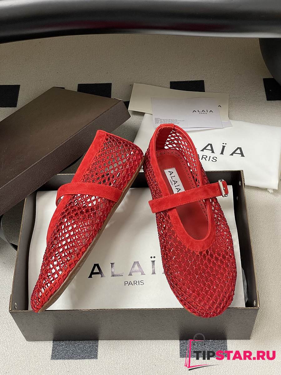 Alaïa Brown Mesh Ballet Flats In Red