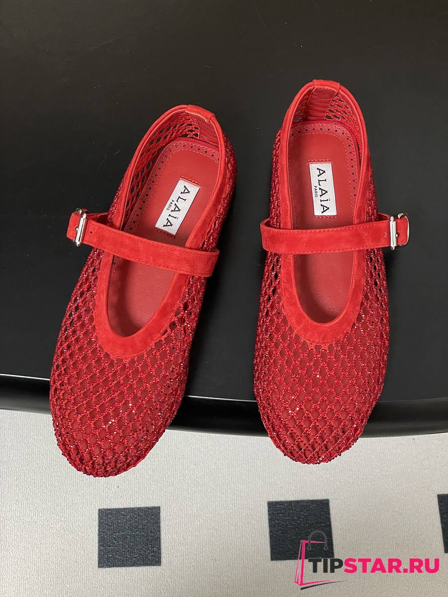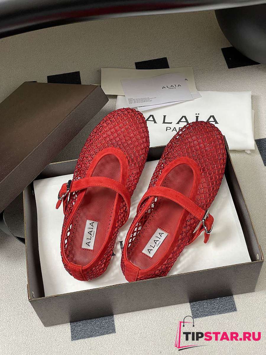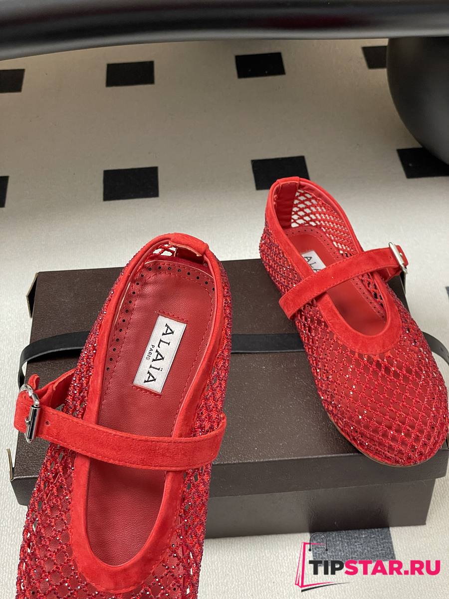 Alaïa Brown Mesh Ballet Flats In Red
