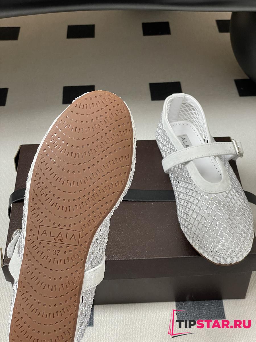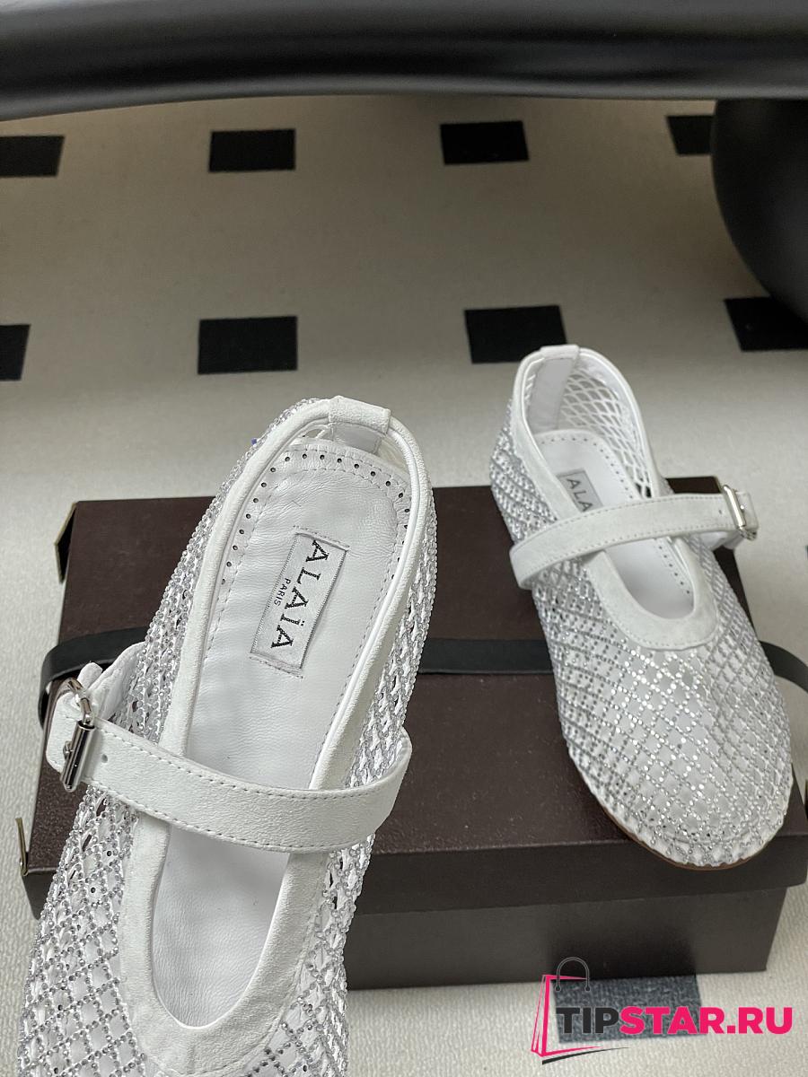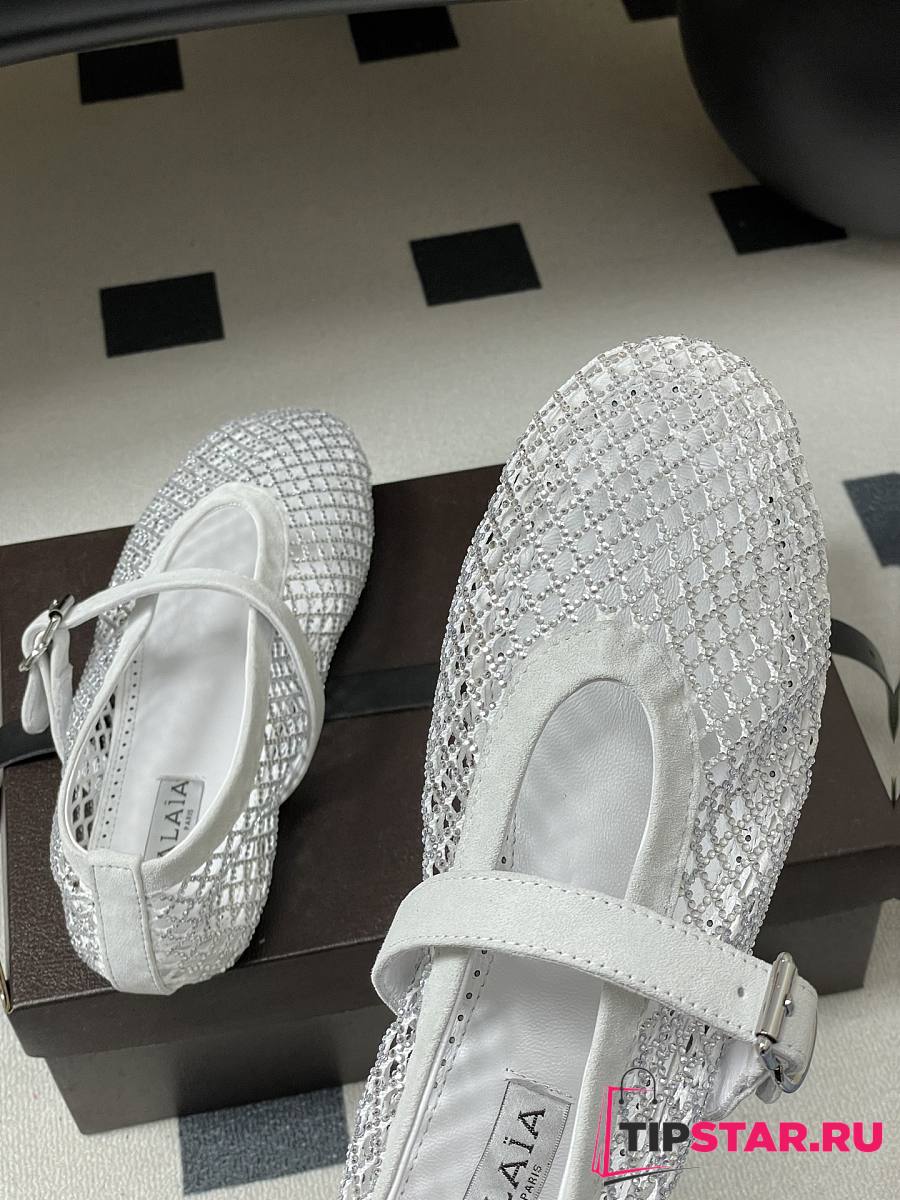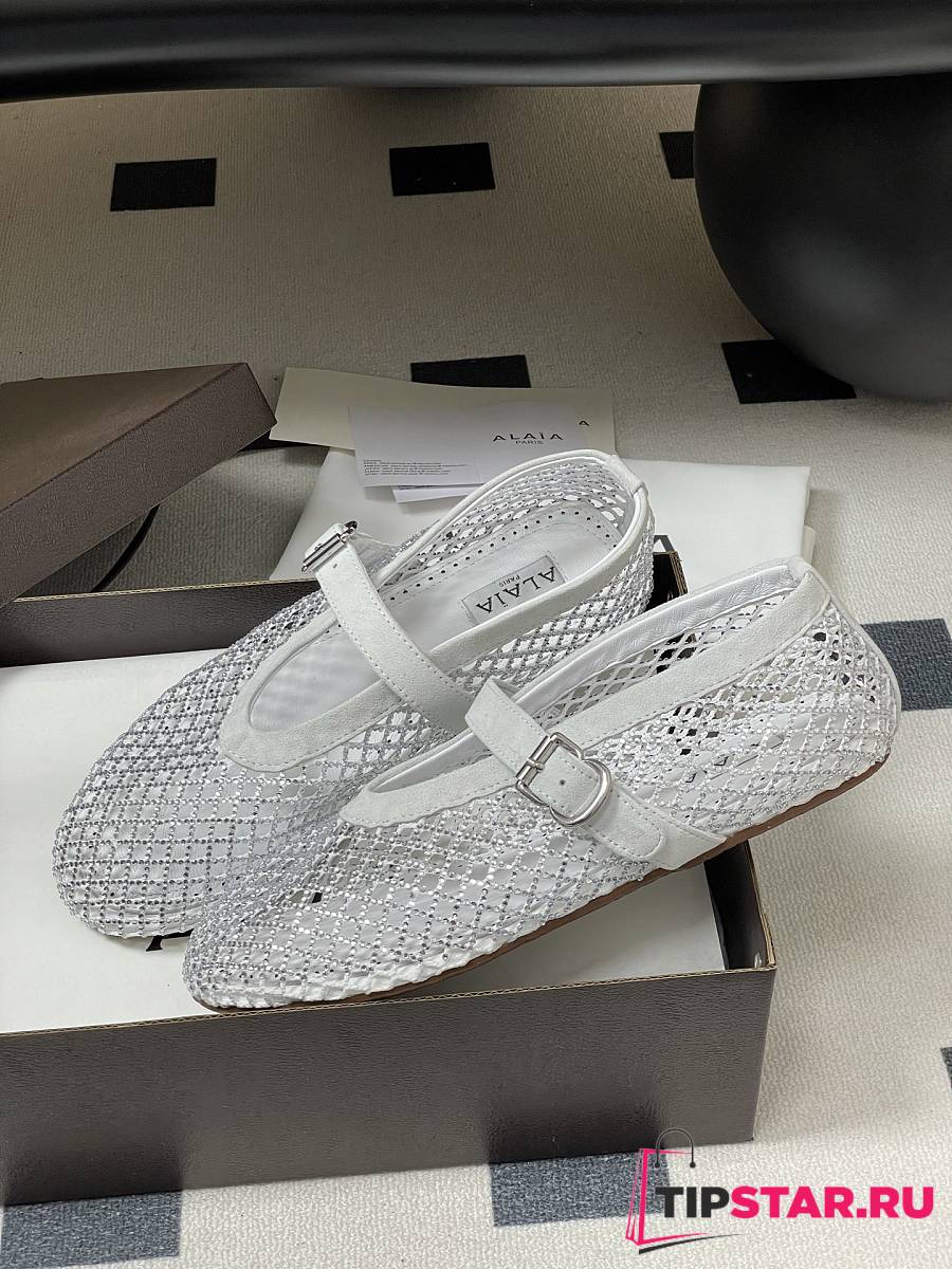 Alaïa Brown Mesh Ballet Flats In White