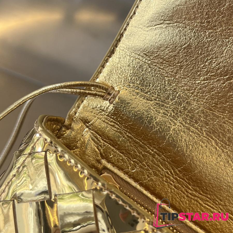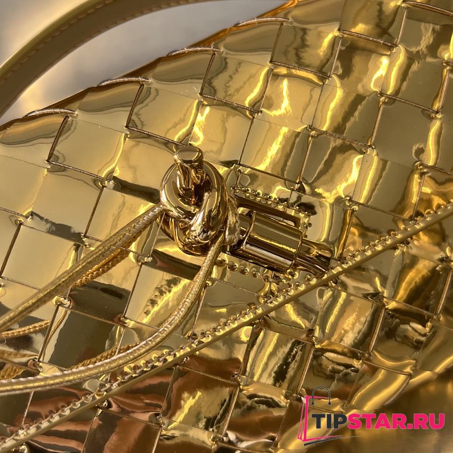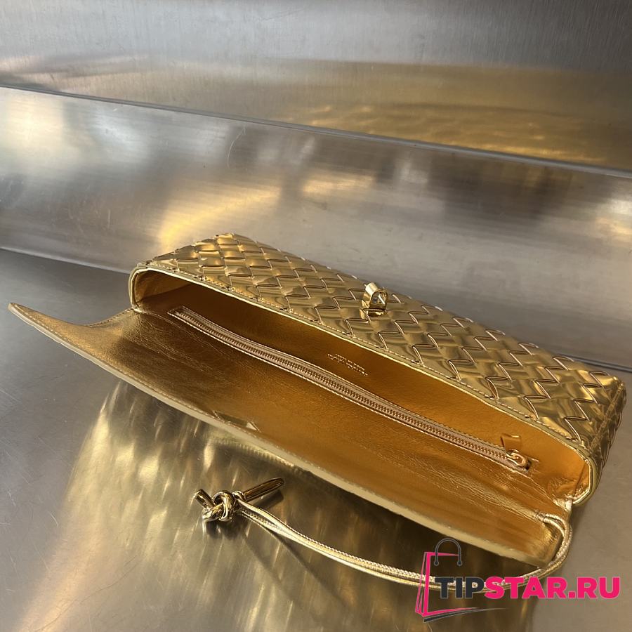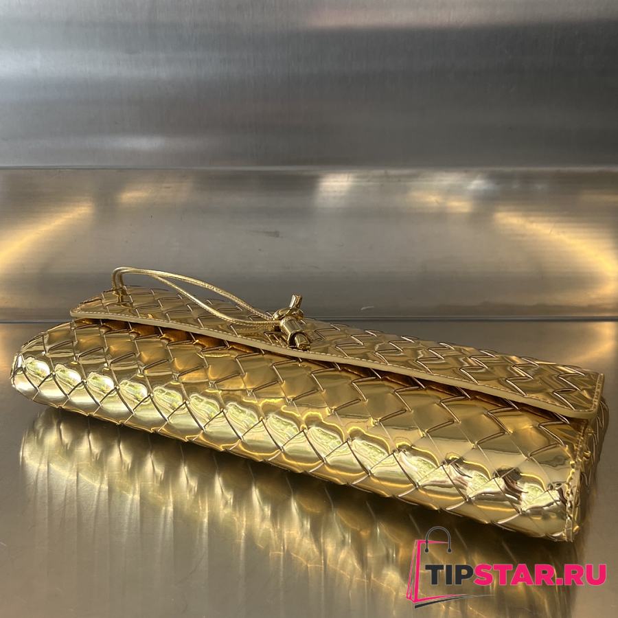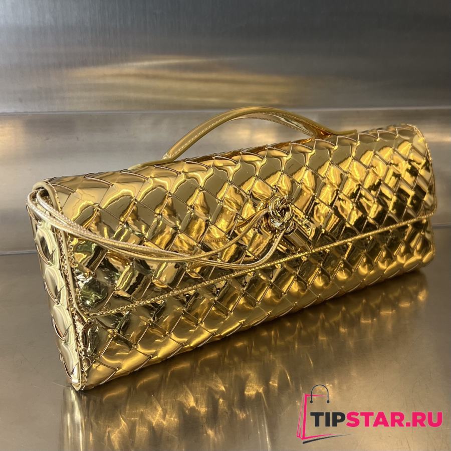 Bottega Veneta Andiamo Clutch Top handle clutch in Intrecciato laminated leather gold
