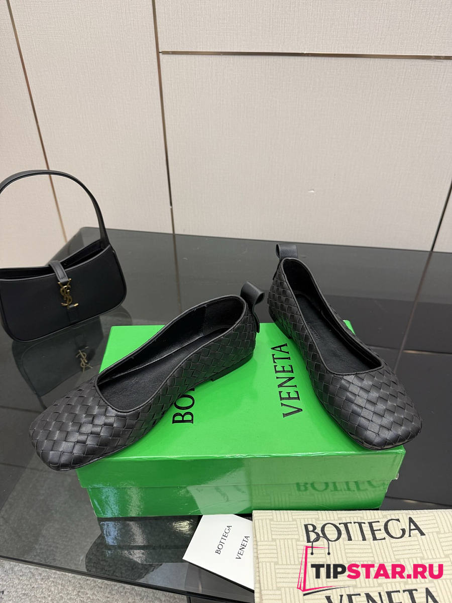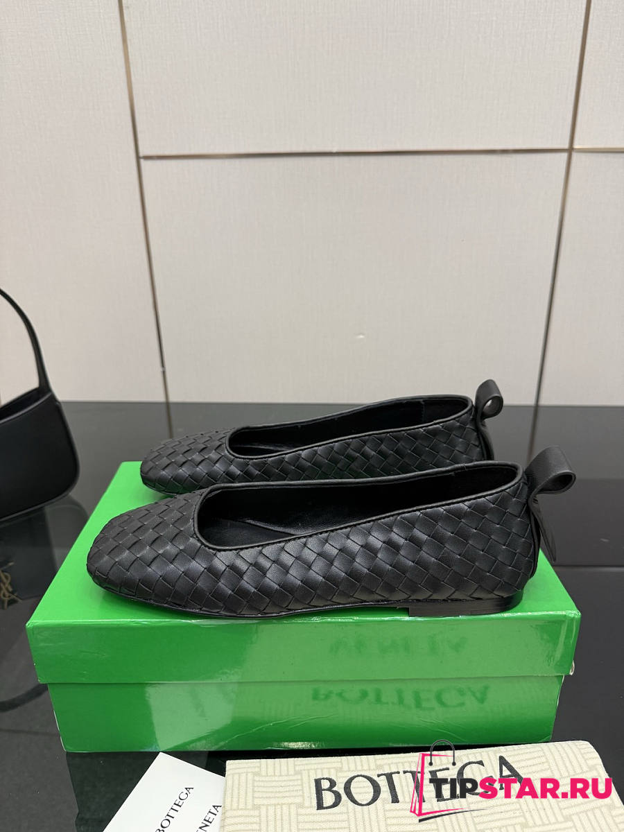 Bottega Veneta Black Intrecciato Woven Nappa Leather Bow Ballet Flats