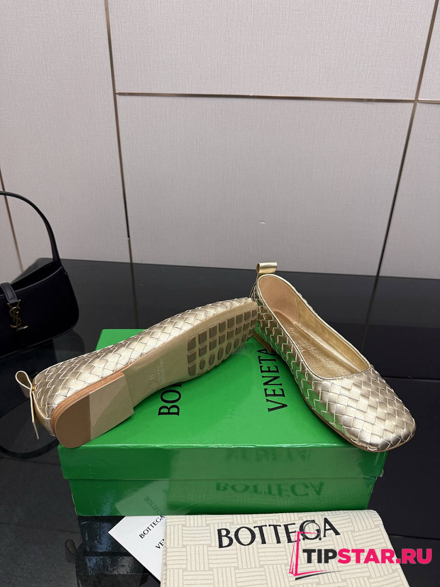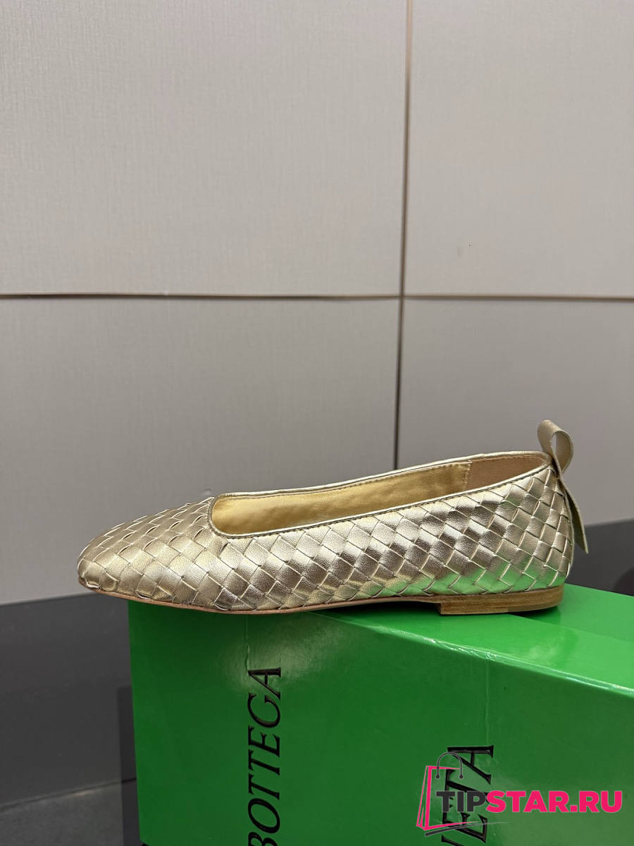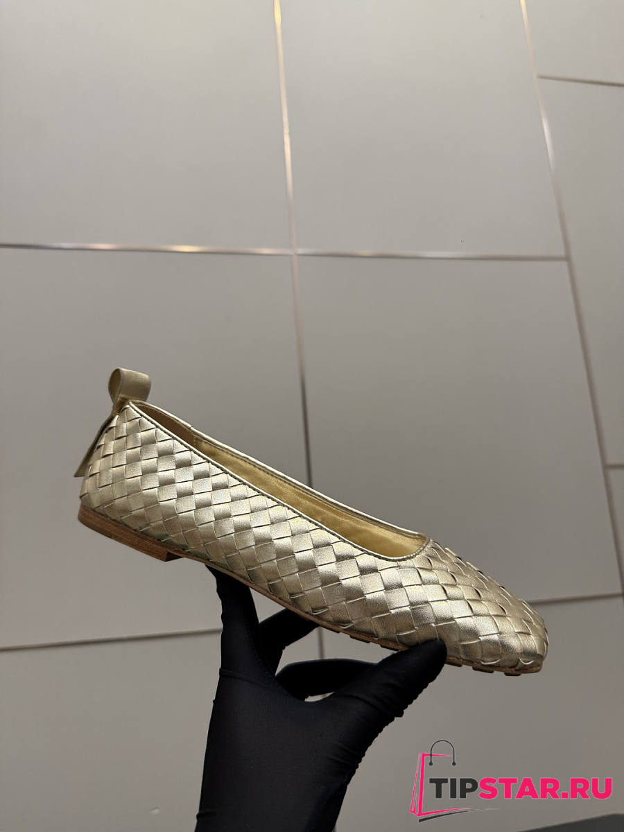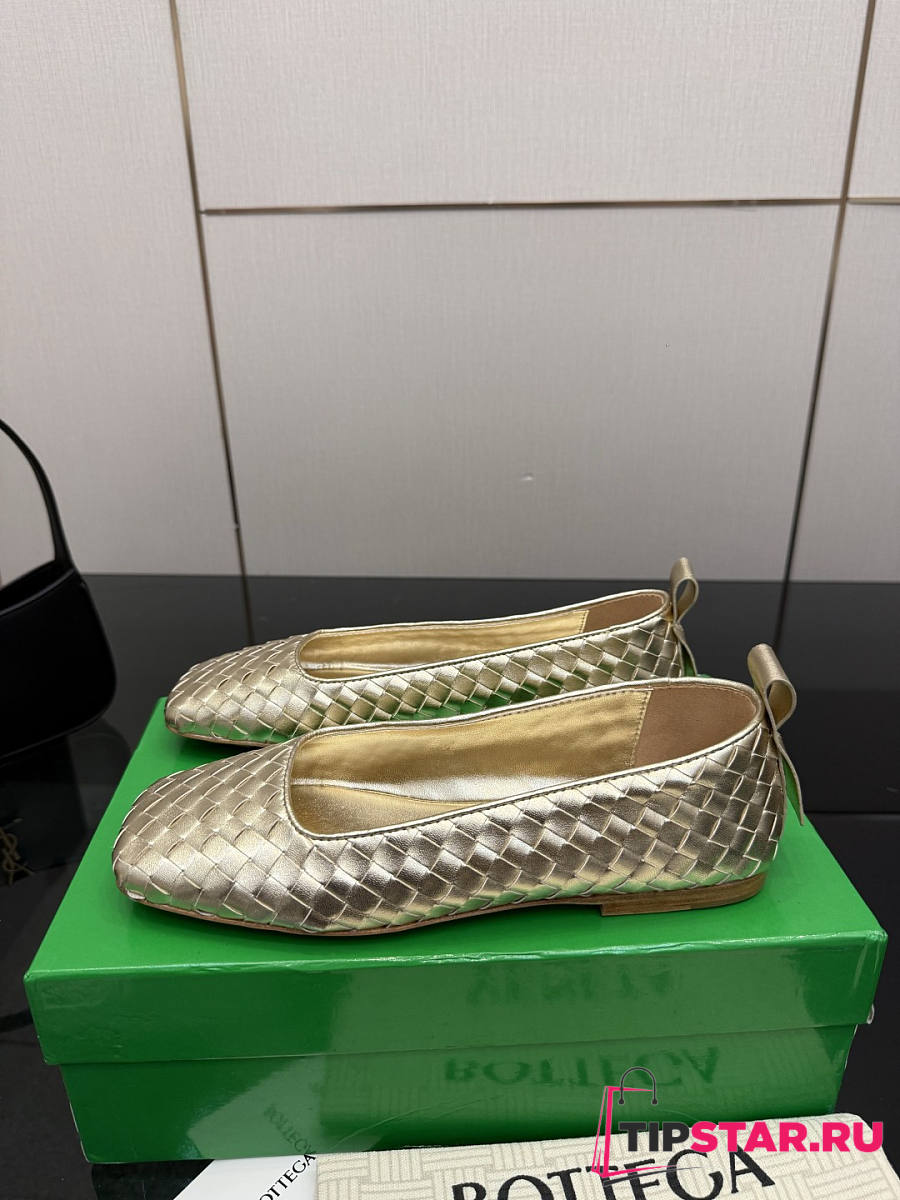 Bottega Veneta Gold Intrecciato Woven Nappa Leather Bow Ballet Flats