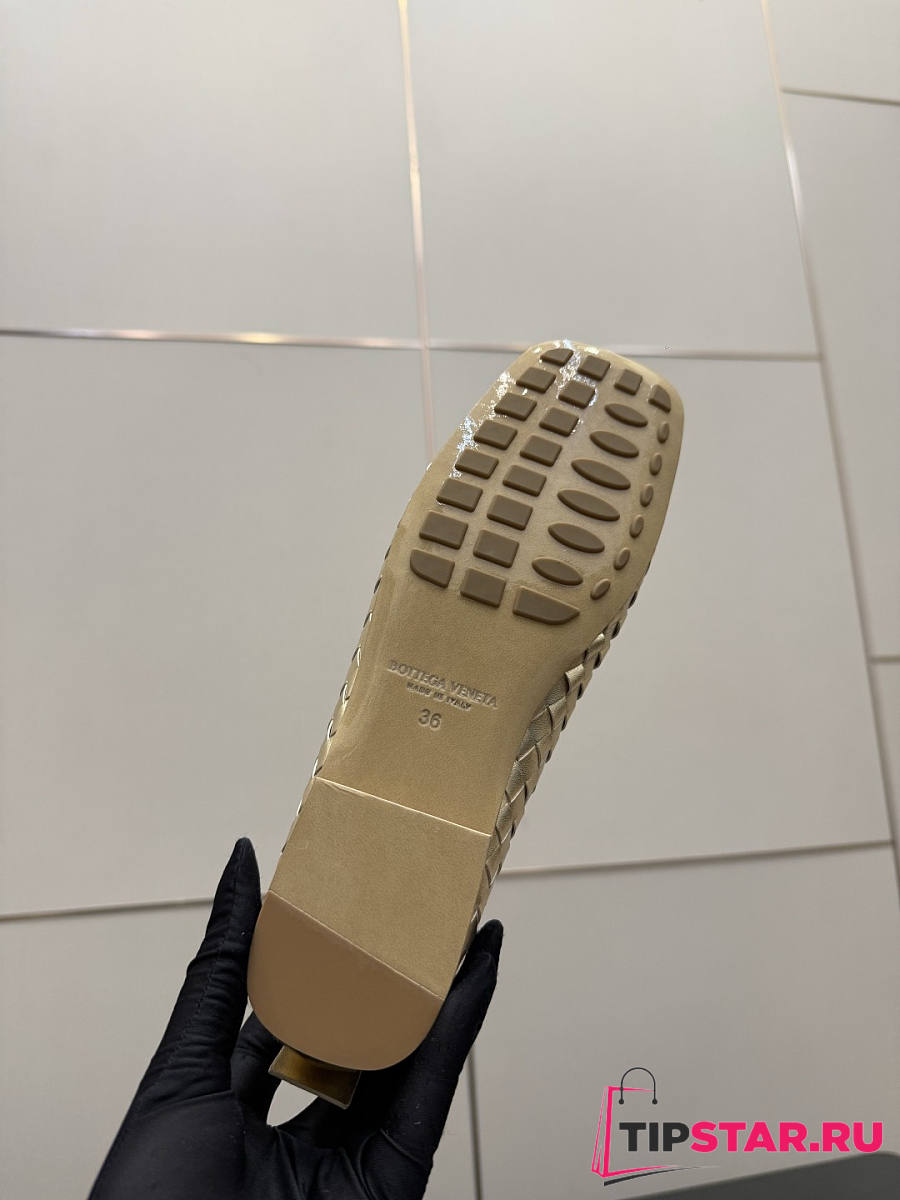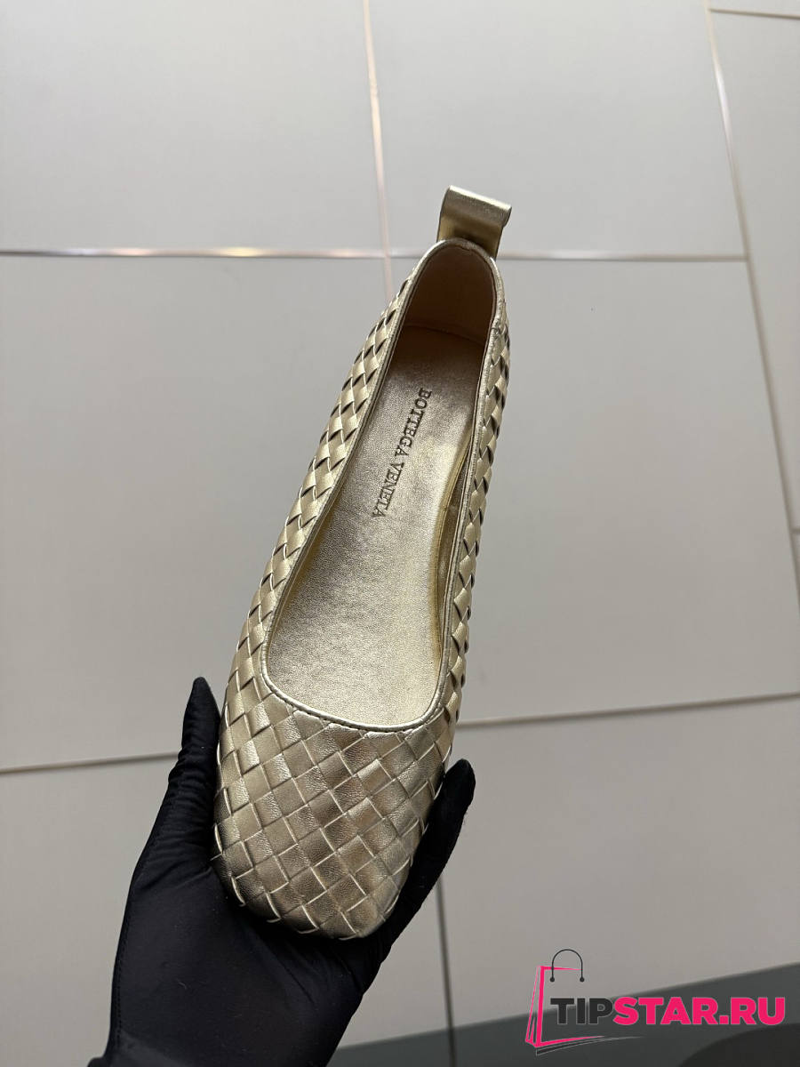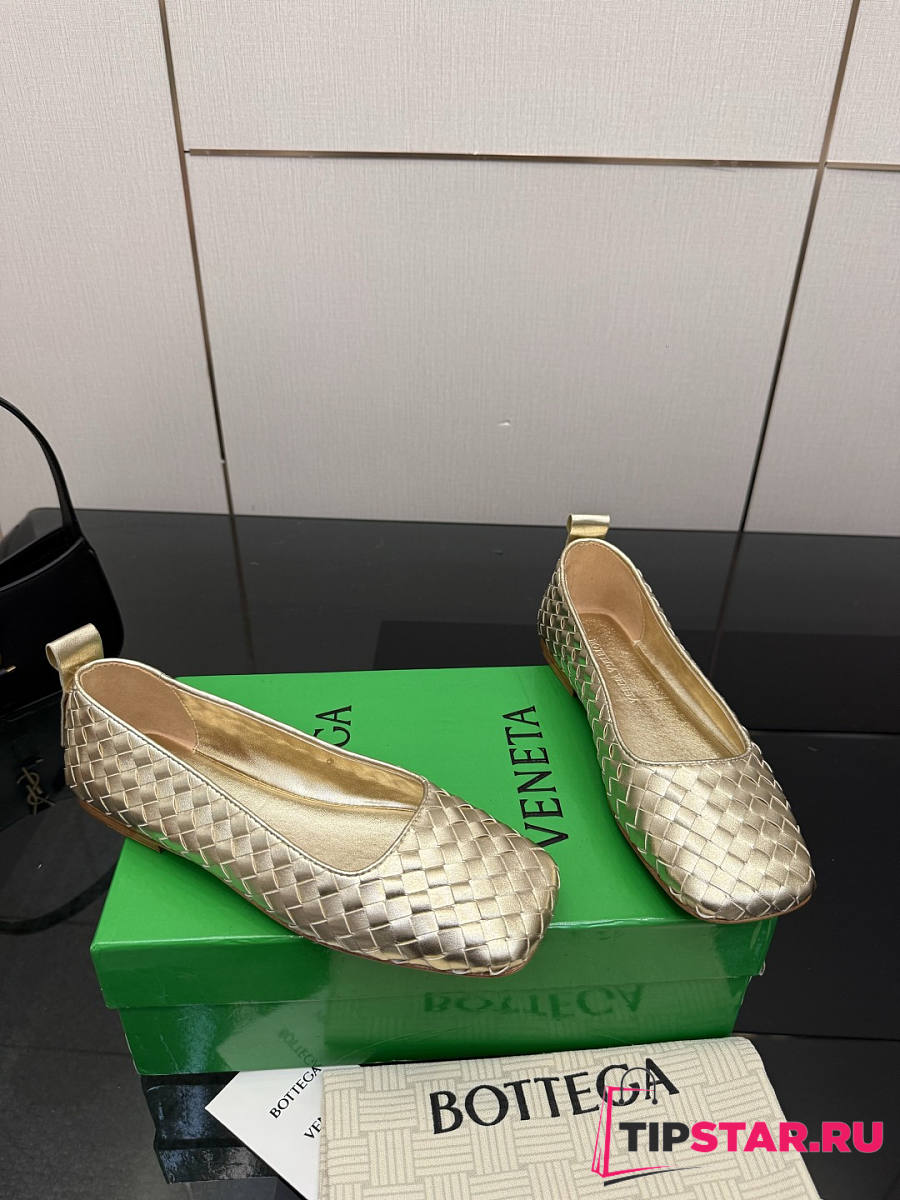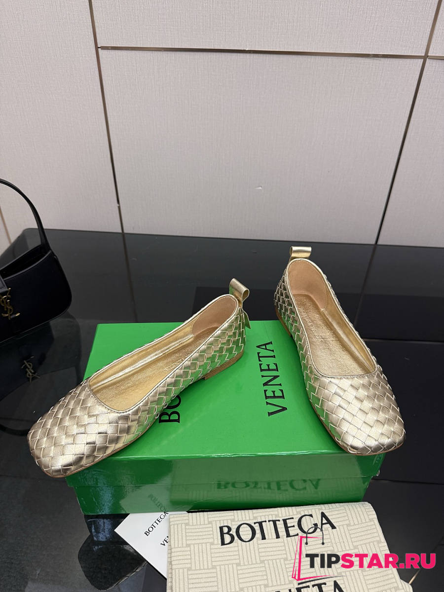Bottega Veneta Gold Intrecciato Woven Nappa Leather Bow Ballet Flats