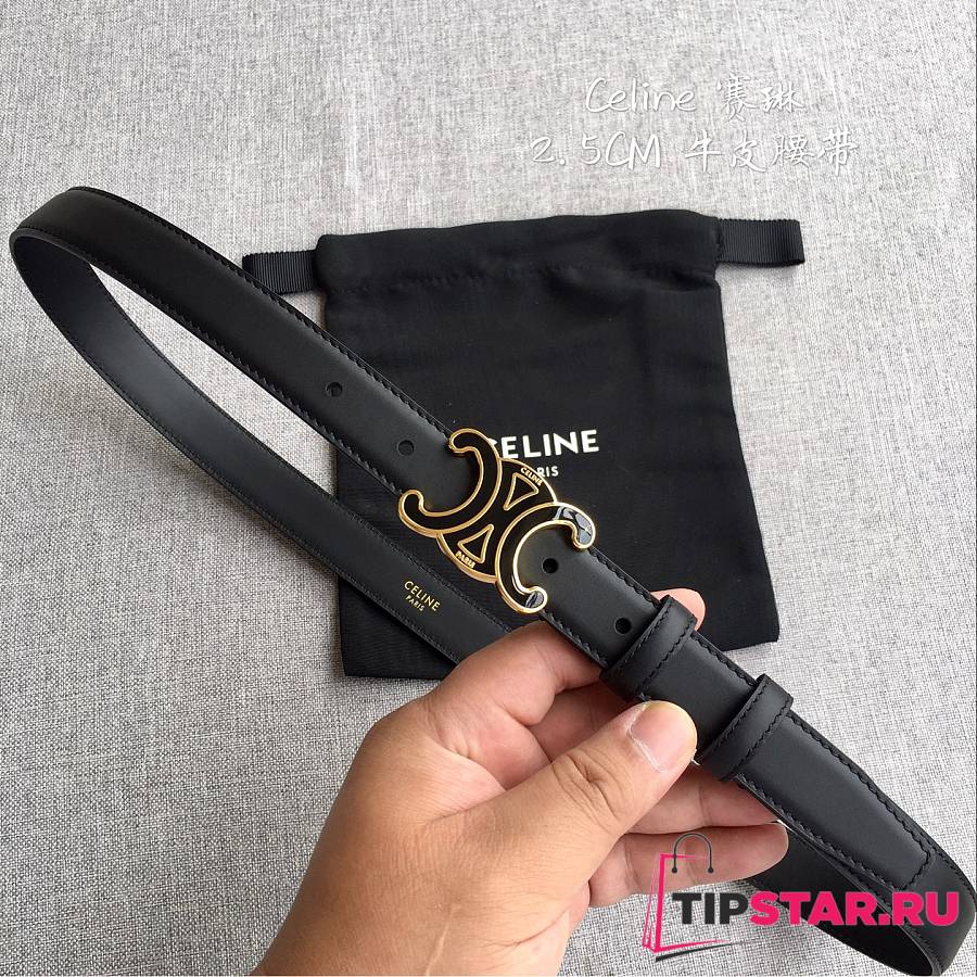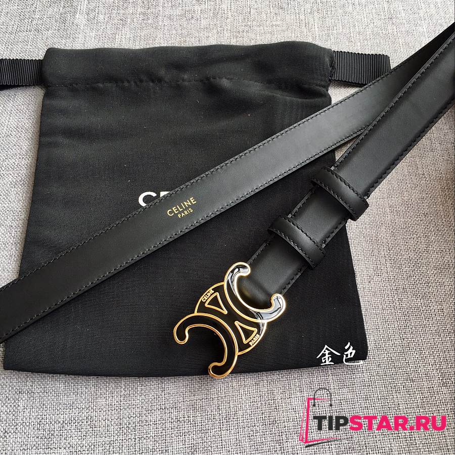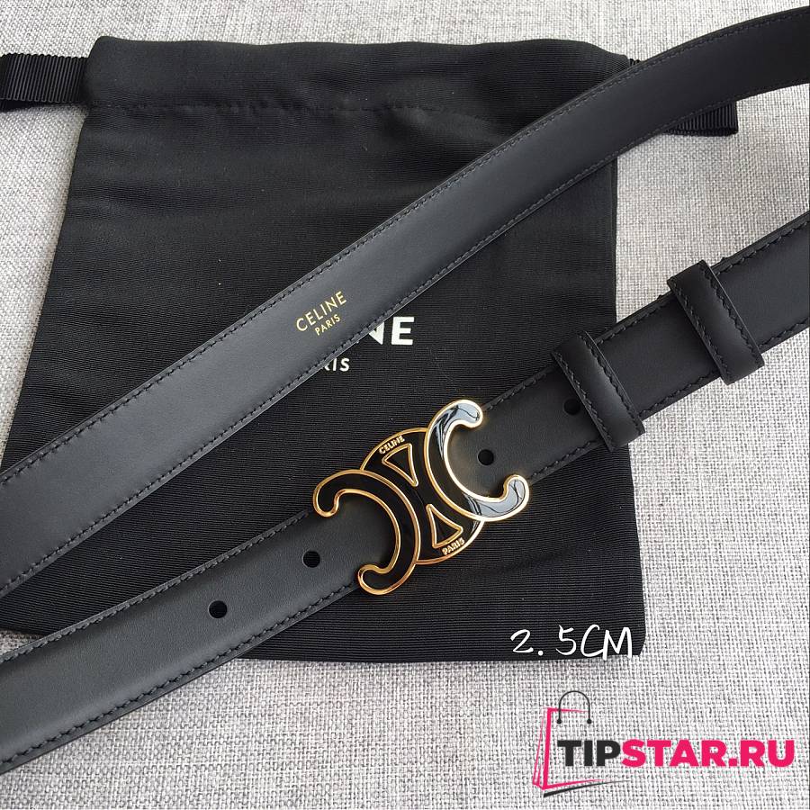 Celine 2.5cm Triumph TRIOMPHE Enamel Buckle Belt Black