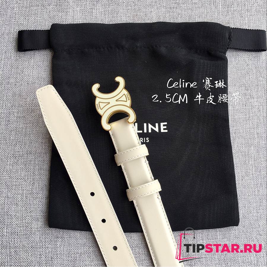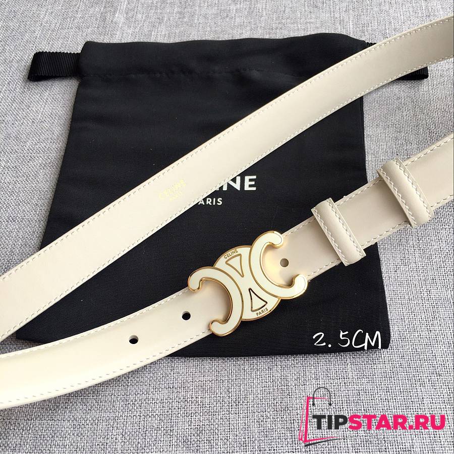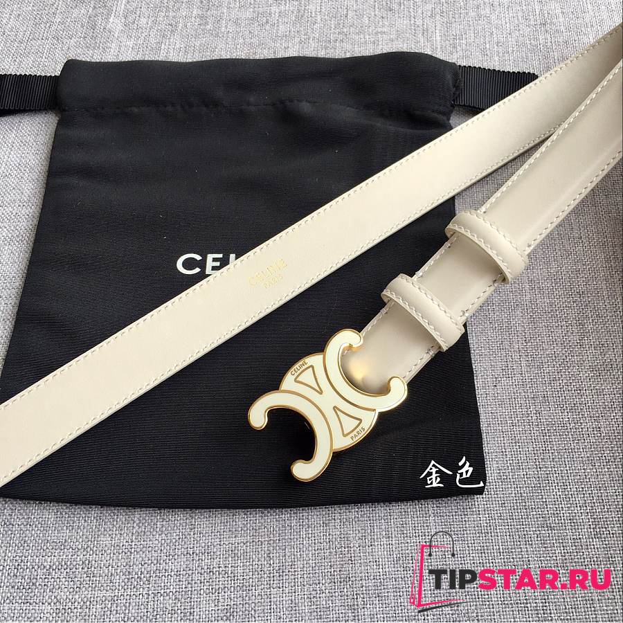 Celine 2.5cm Triumph TRIOMPHE Enamel Buckle Belt Off-white