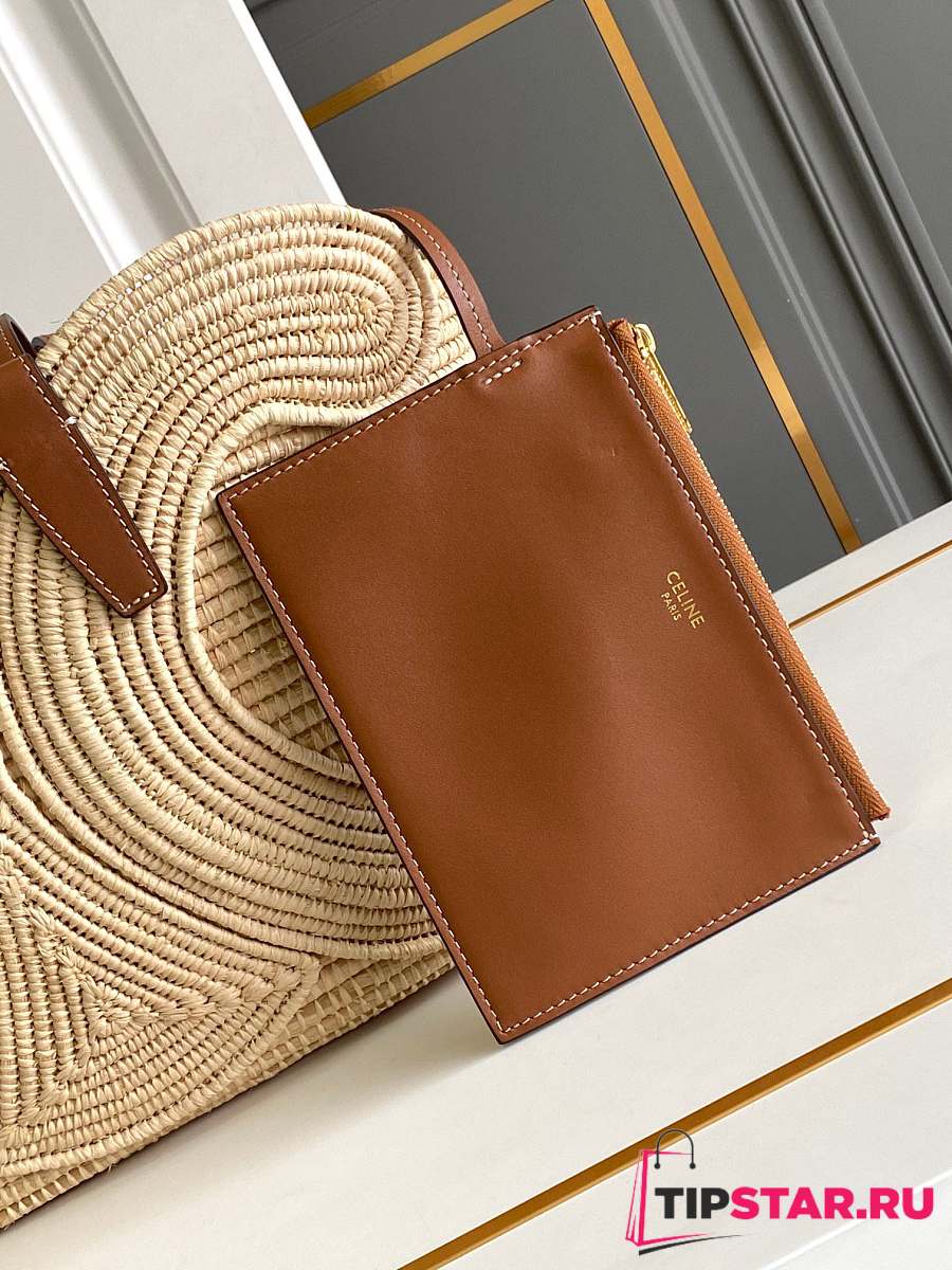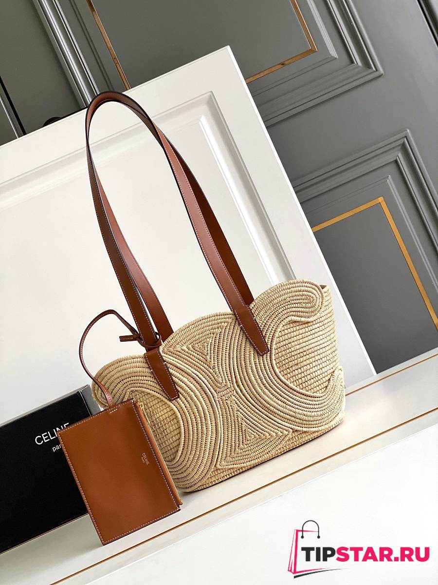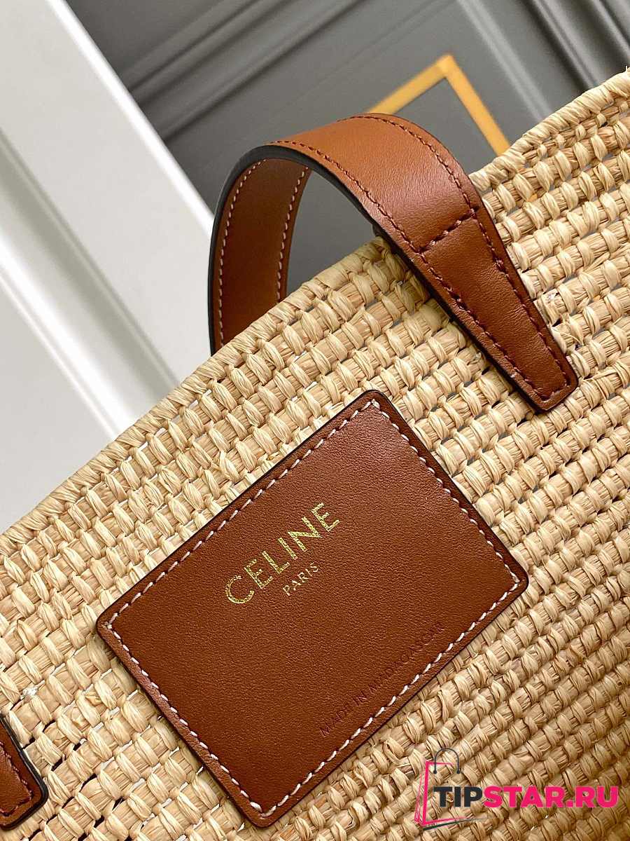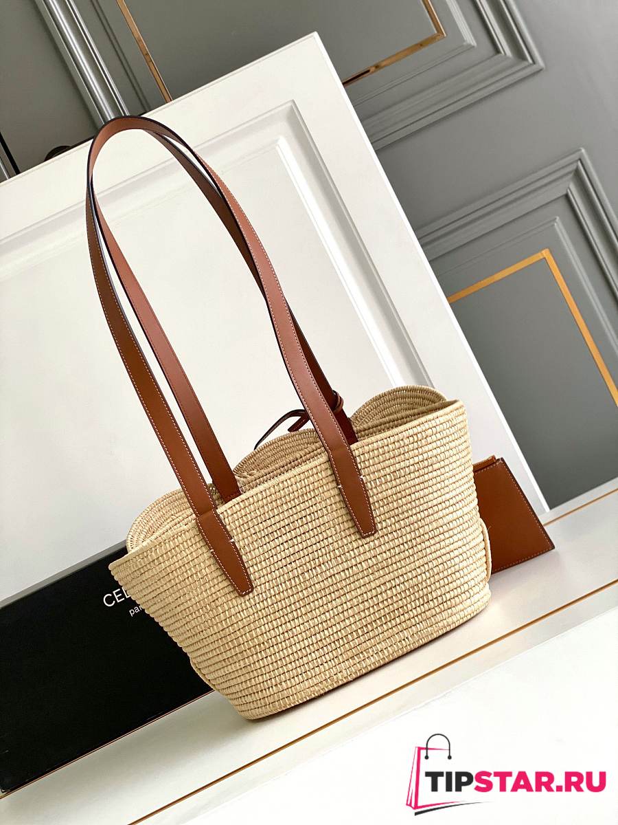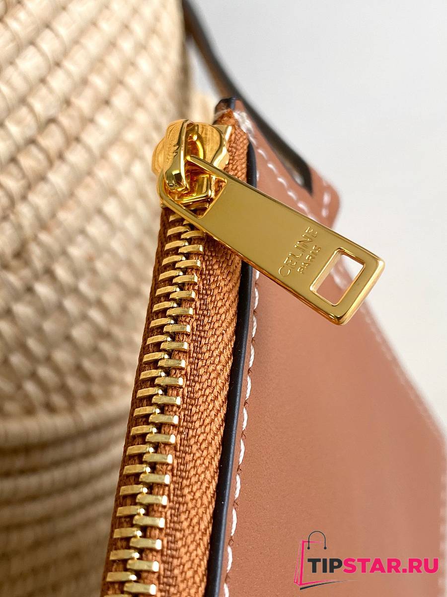 Celine Classic Panier Small Braided Triomphe In Raffia And Calfskin