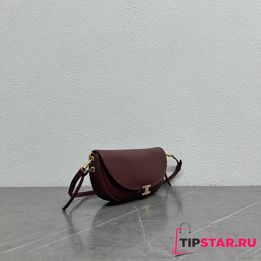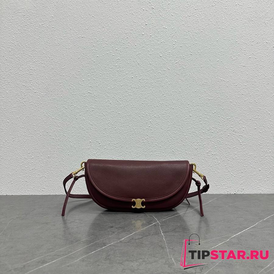 Celine Little Halfmoon Soft Triomphe In Supple Shiny Lambskin Burgundy