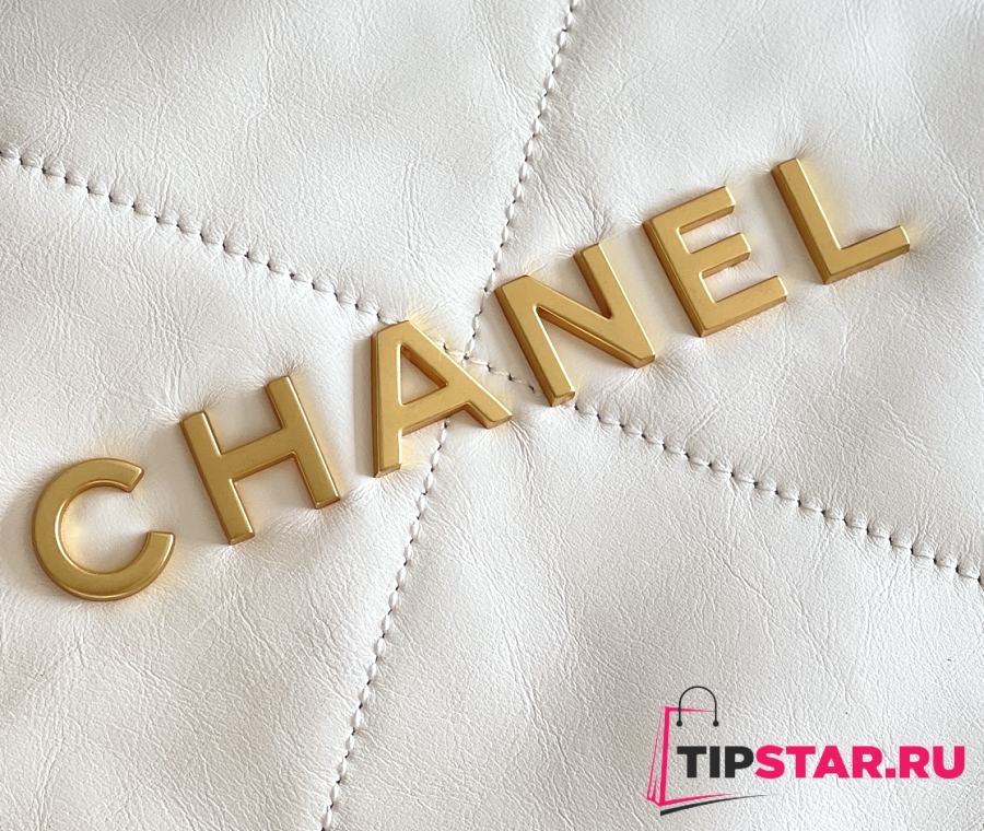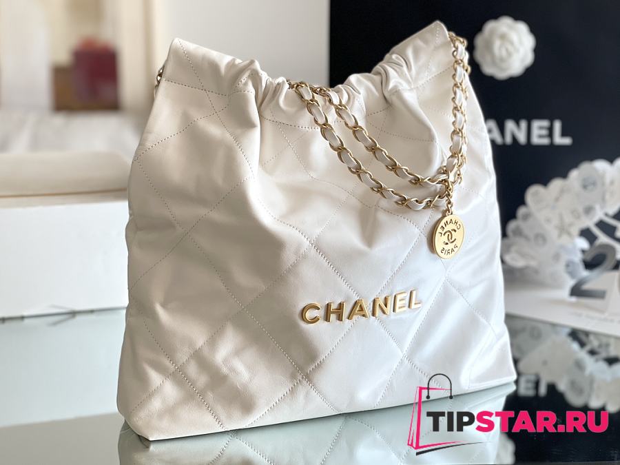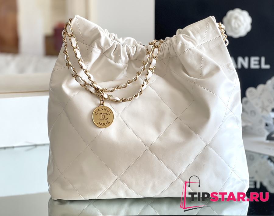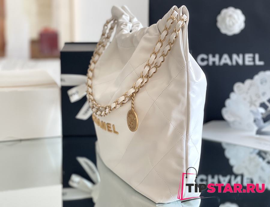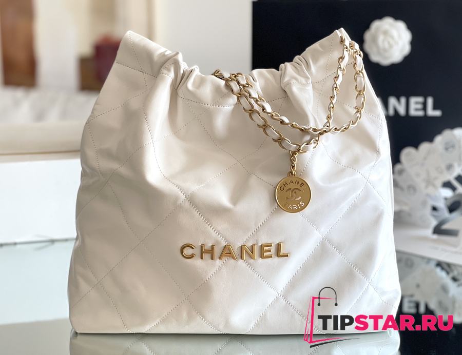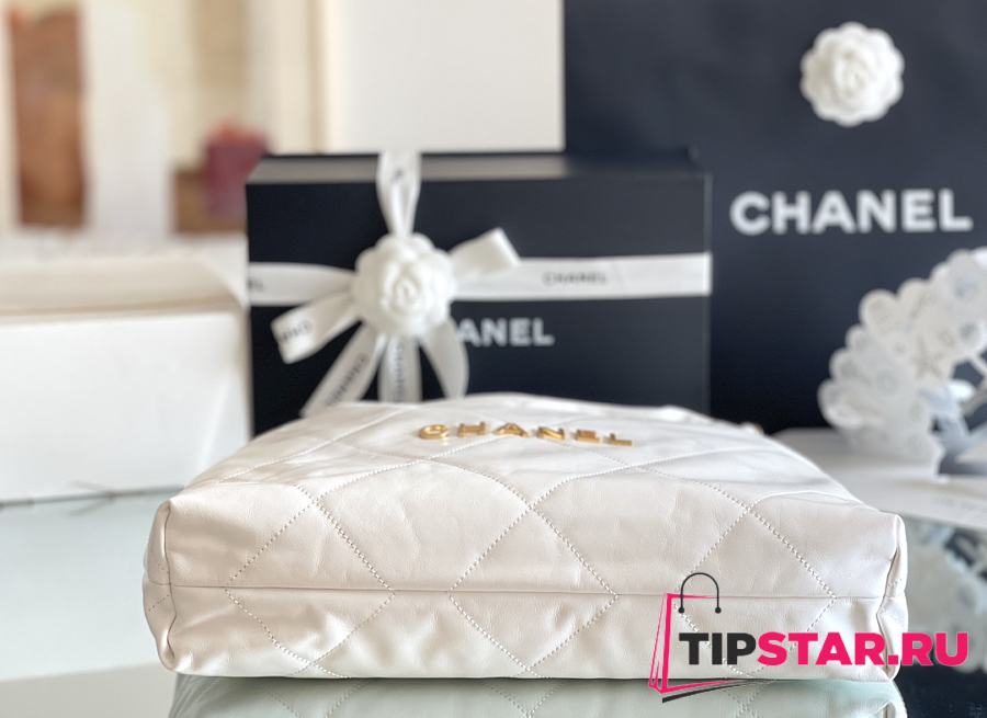 Chanel 22 Handbag Shiny Calfskin & Gold-Tone Metal White AS3261