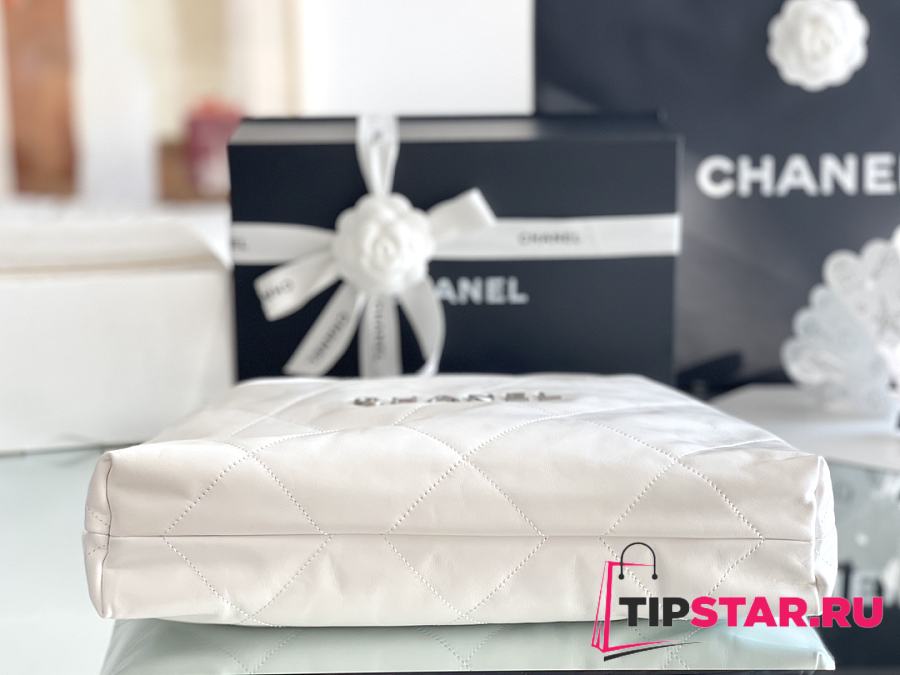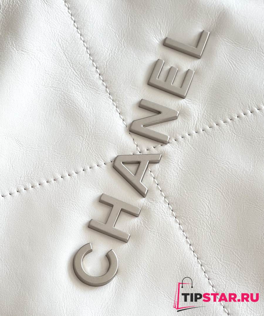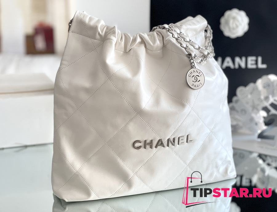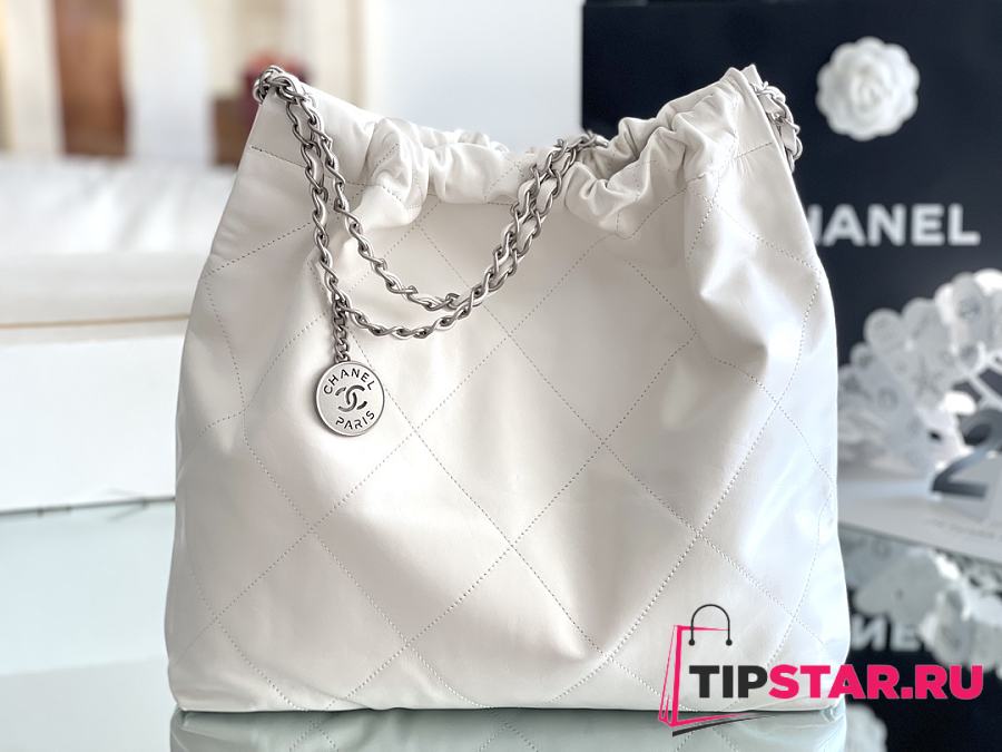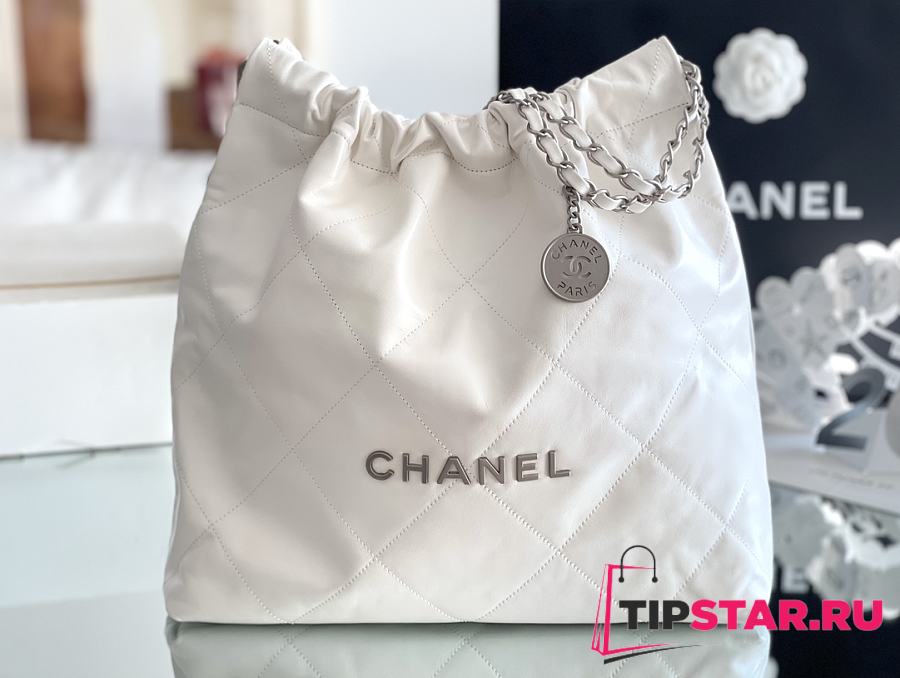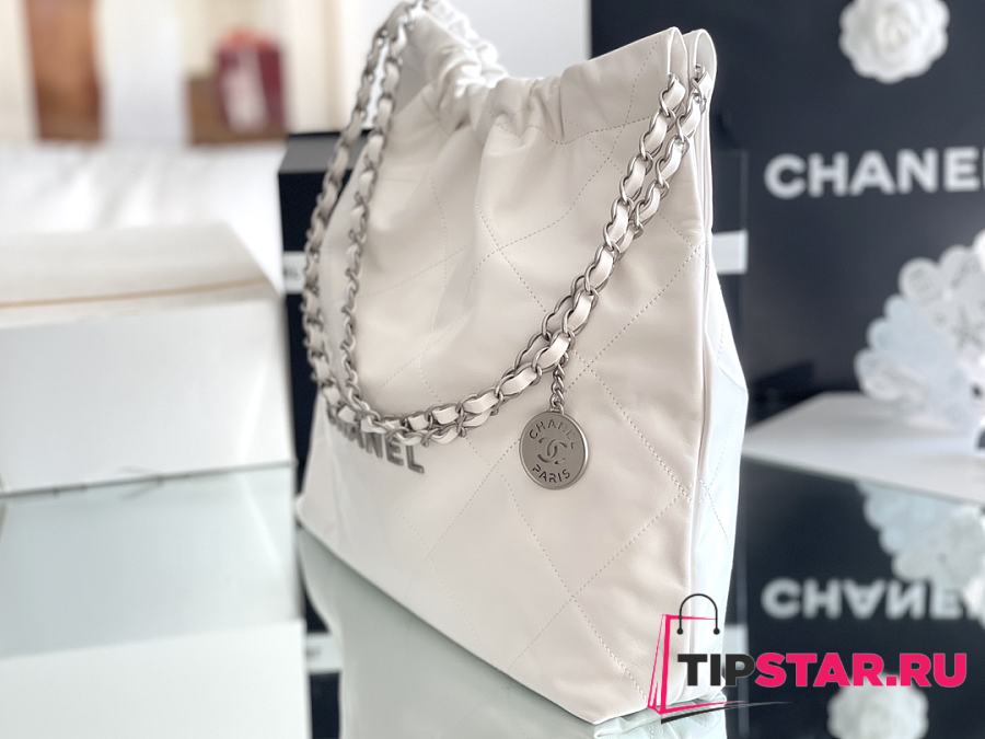 Chanel 22 Handbag Shiny Calfskin & Silver-Tone Metal White AS3261
