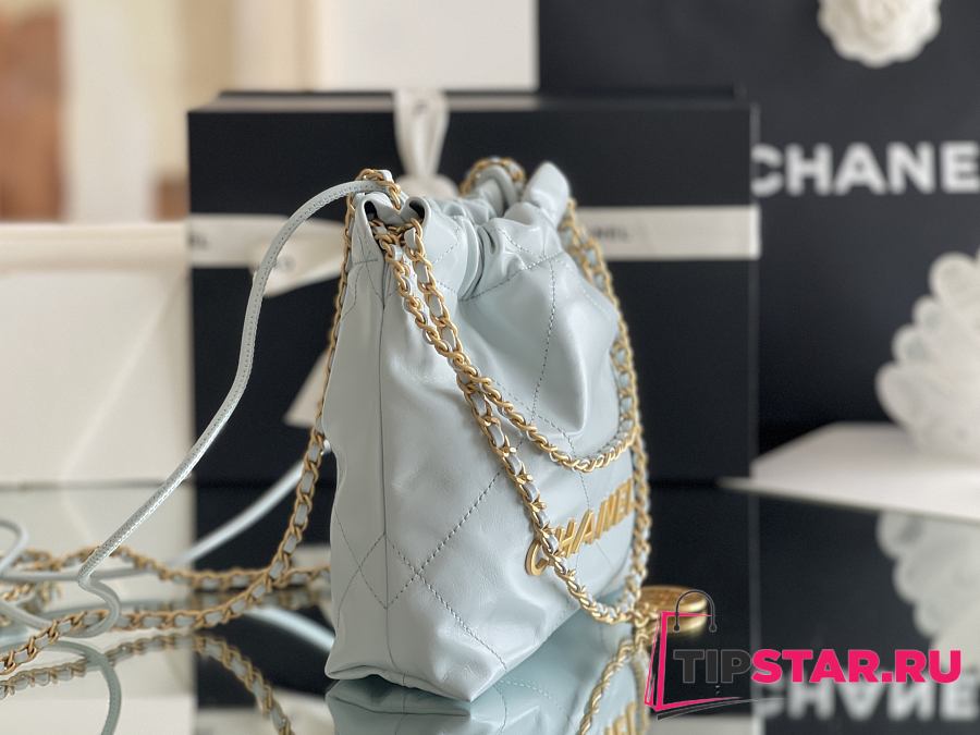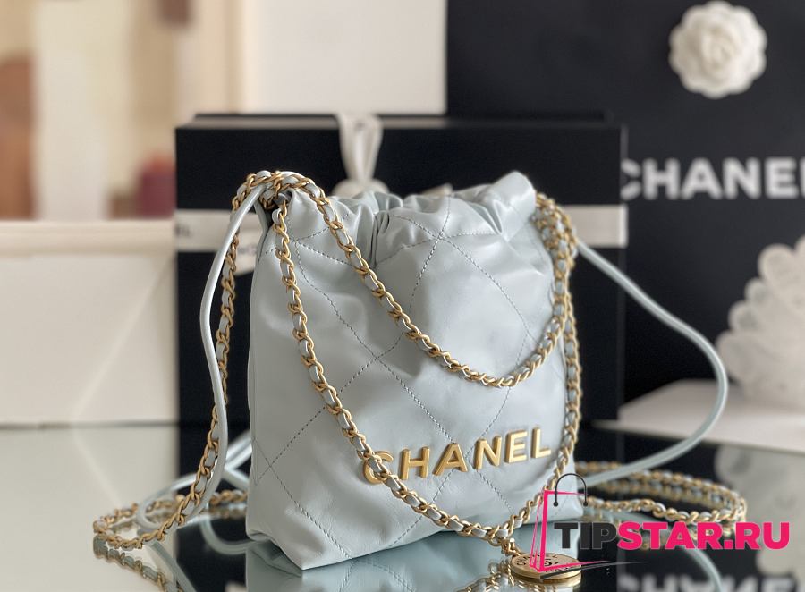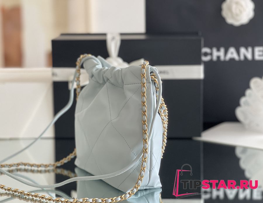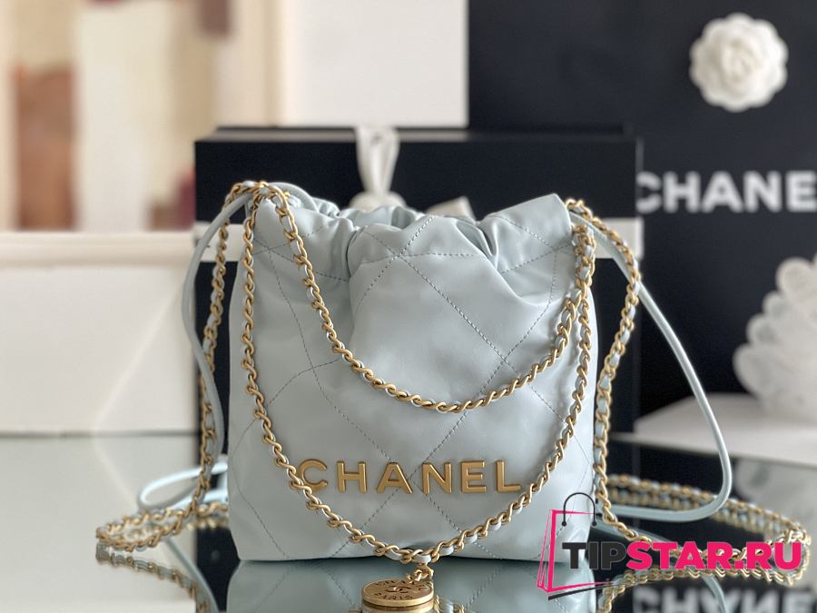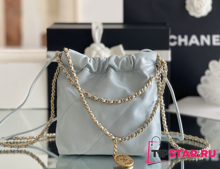 Chanel 22 mini bag Glossy Calfskin & Gold Metal Blue AS3260