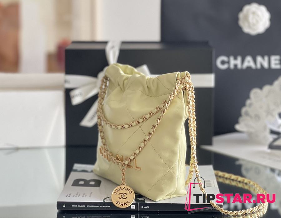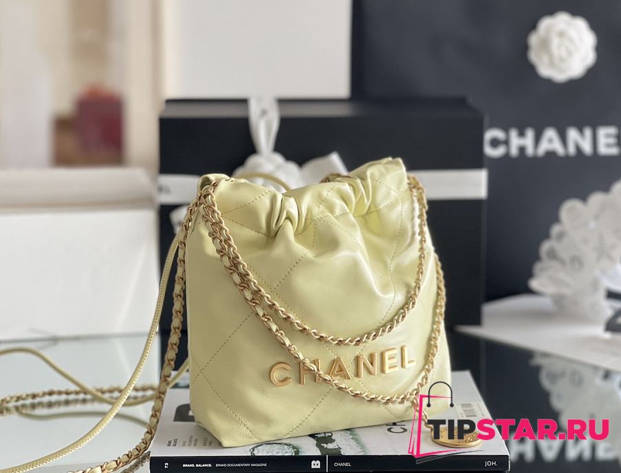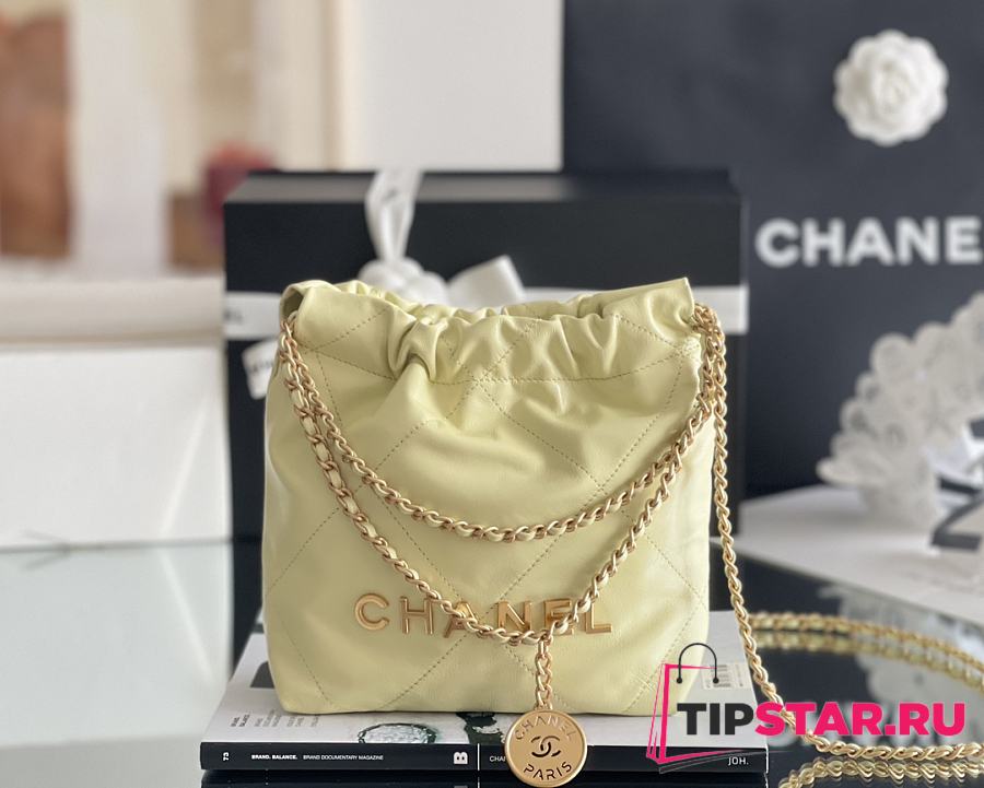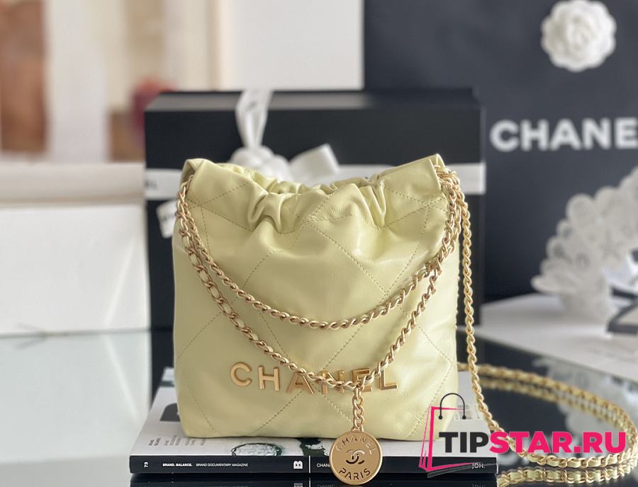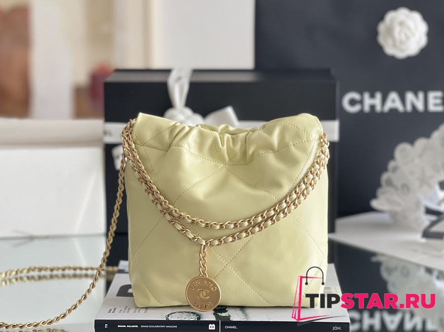 Chanel 22 mini bag Glossy Calfskin & Gold Metal Yellow AS3260