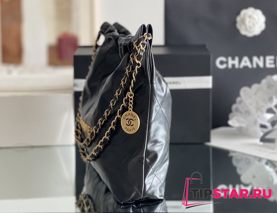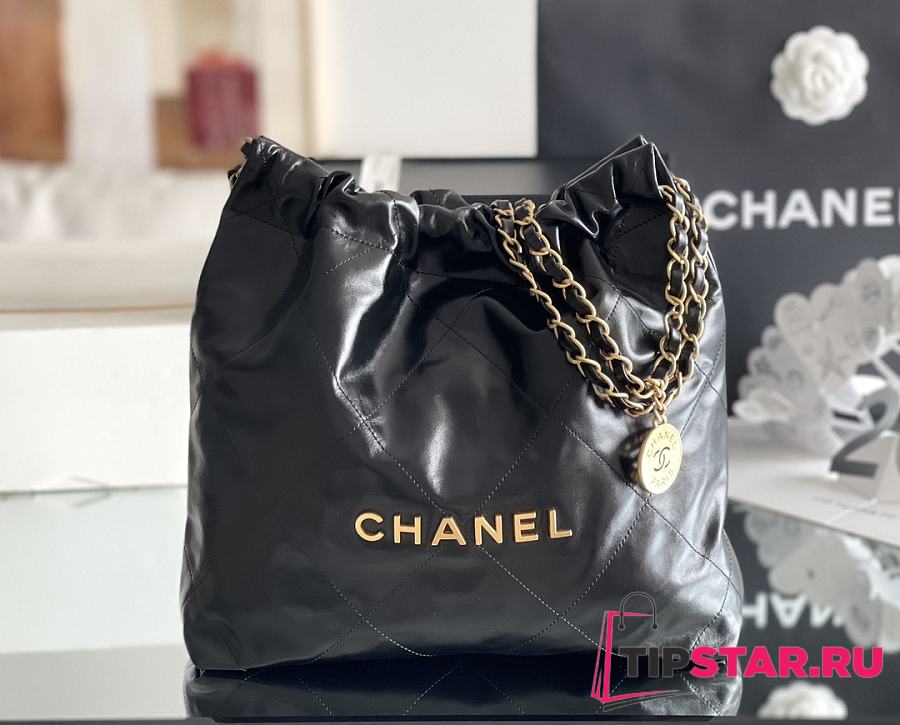 Chanel 22 small bag Glossy Calfskin & Gold Metal Black AS3260