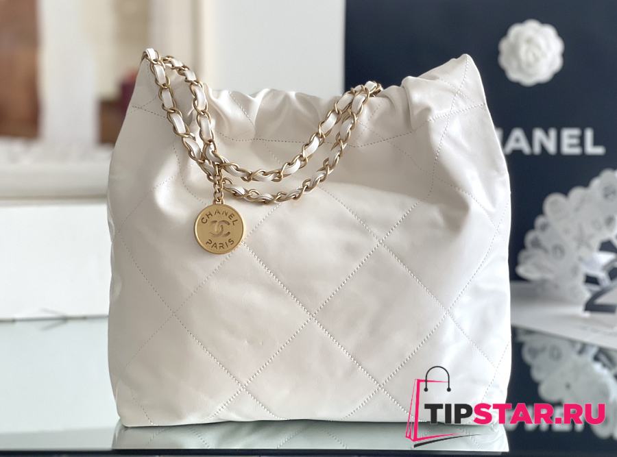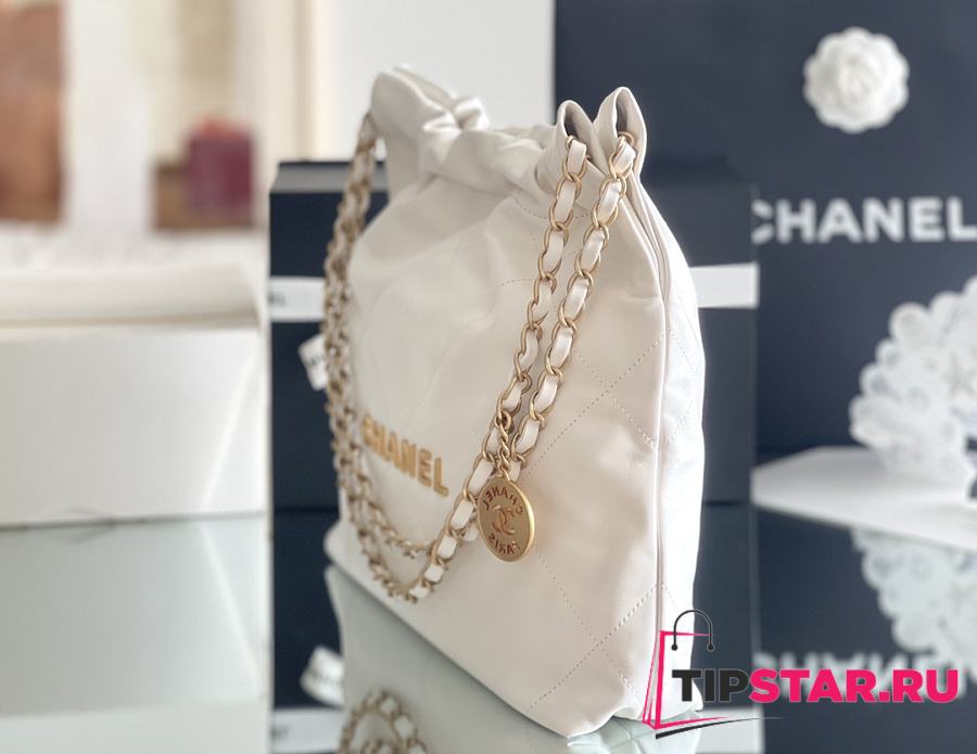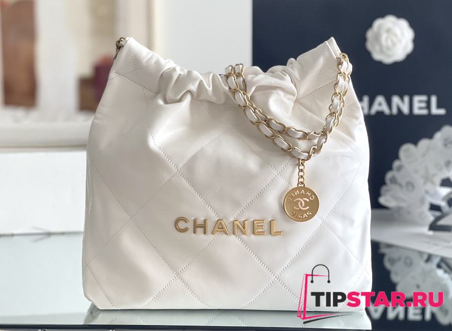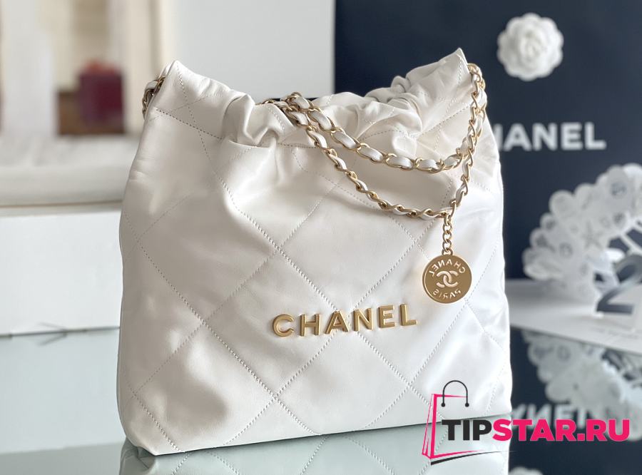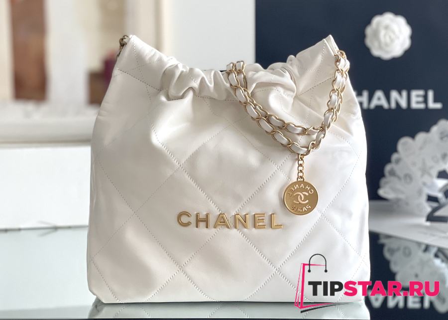 Chanel 22 small bag Glossy Calfskin & Gold Metal White AS3260