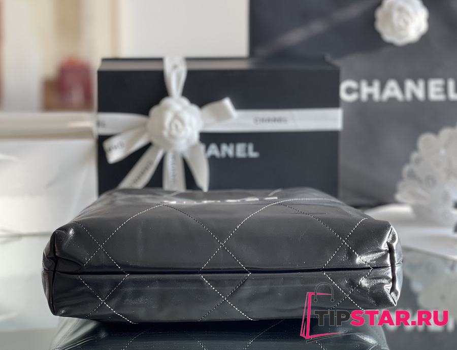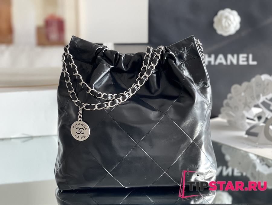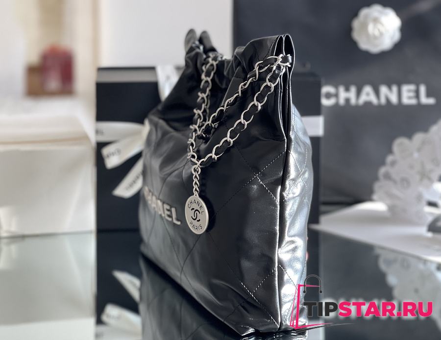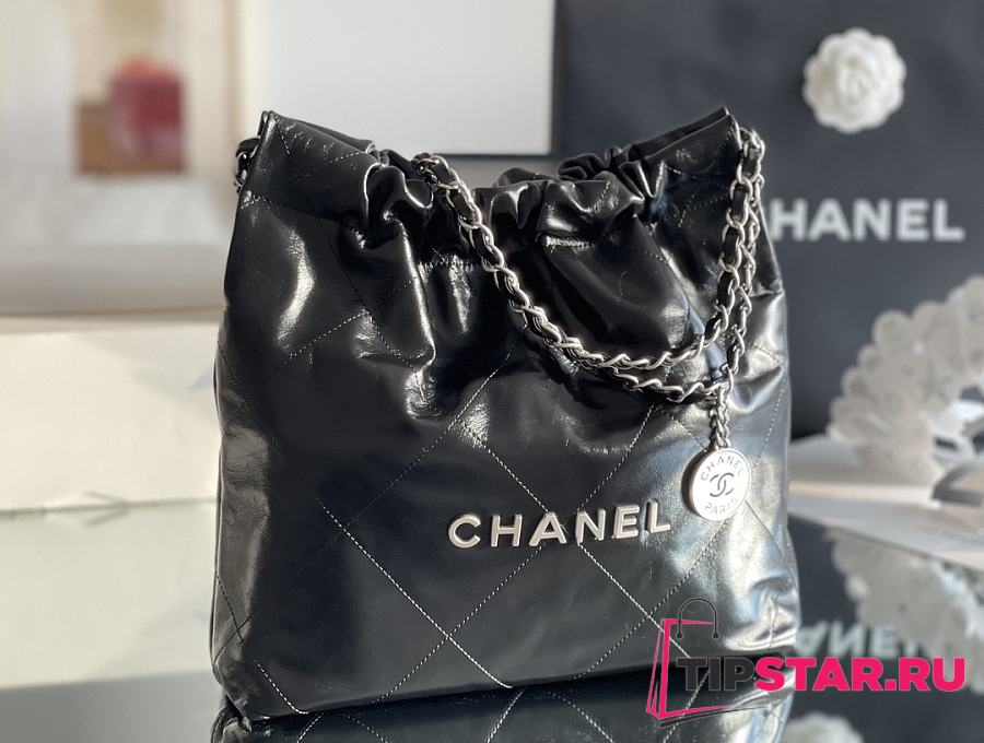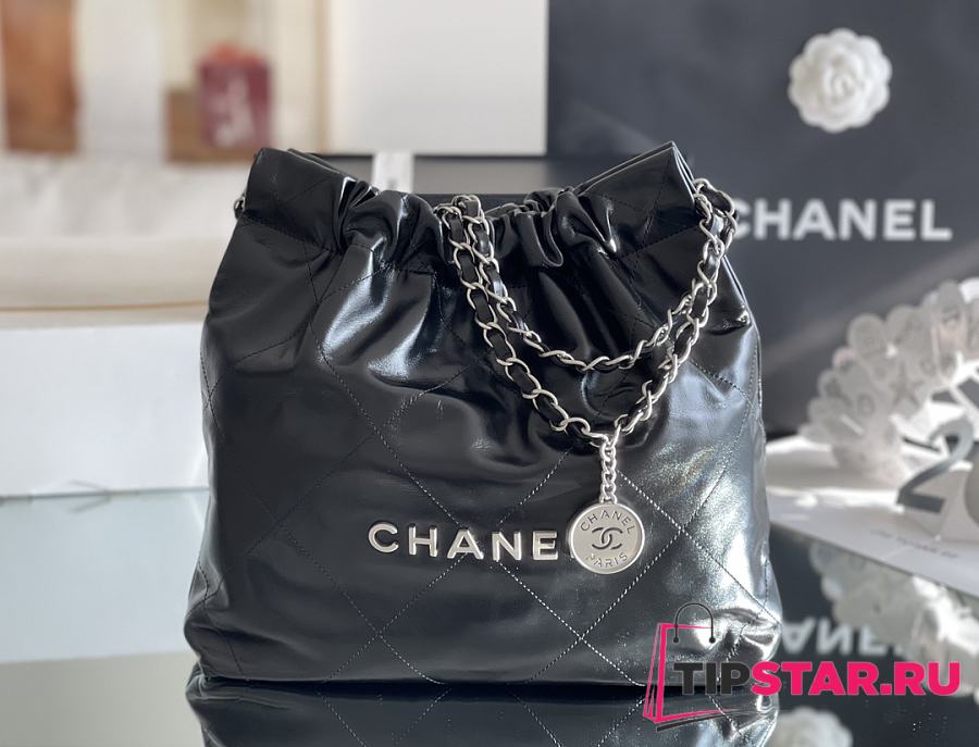 Chanel 22 small bag Glossy Calfskin & Silver Metal Black AS3260