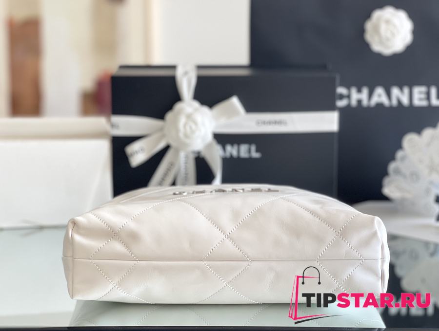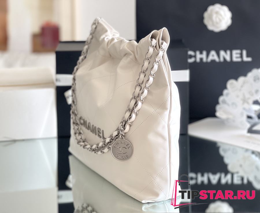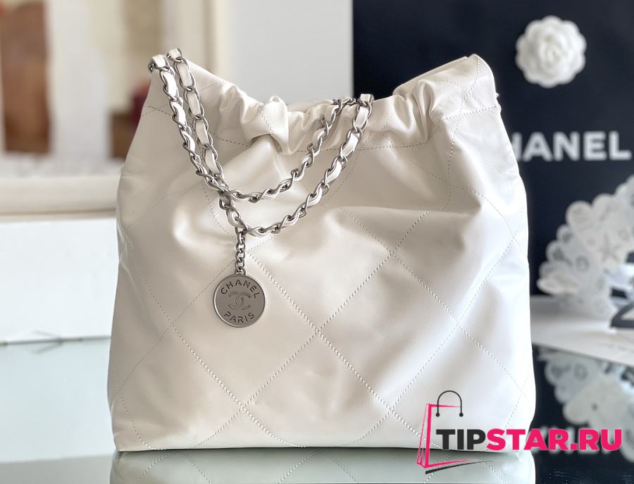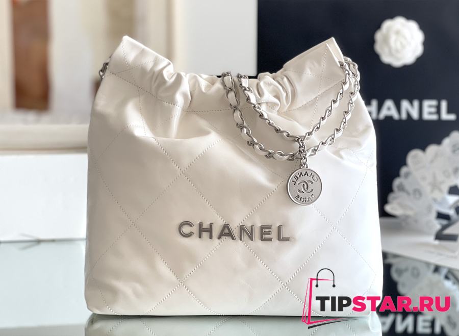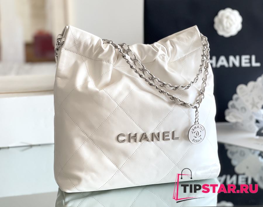 Chanel 22 small bag Glossy Calfskin & Silver Metal White AS3260