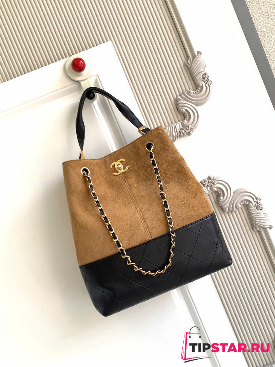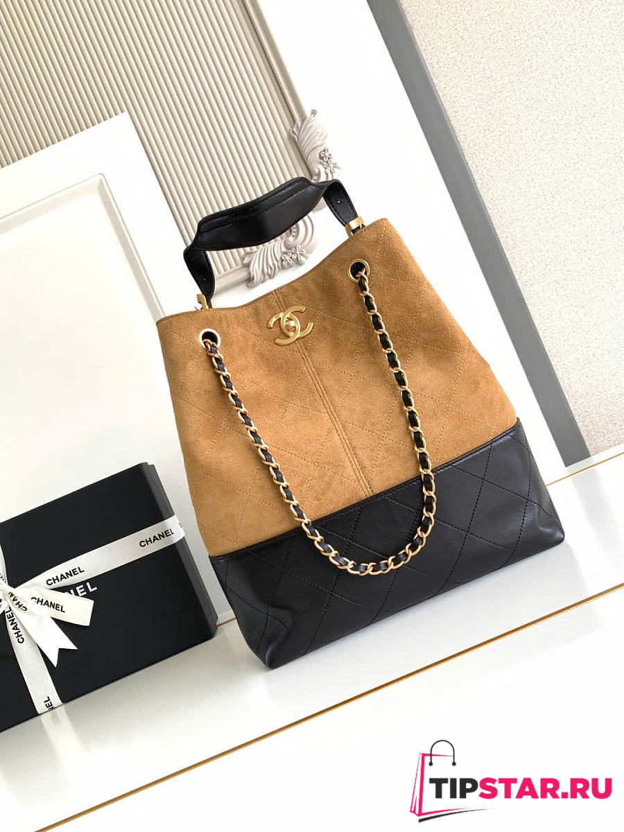 Chanel 25A Suede & Calfskin Vertical Tote Brown