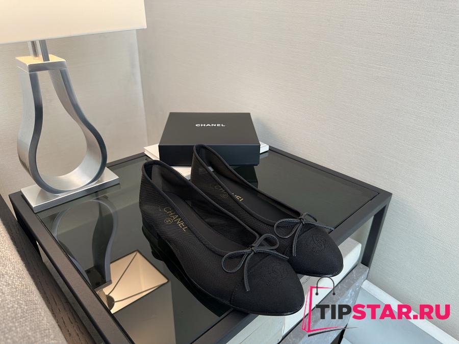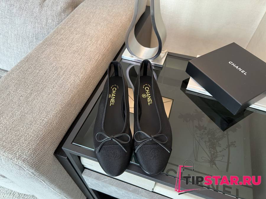Chanel Black CC Cap Toe Jersey Flat Ballerina 01
