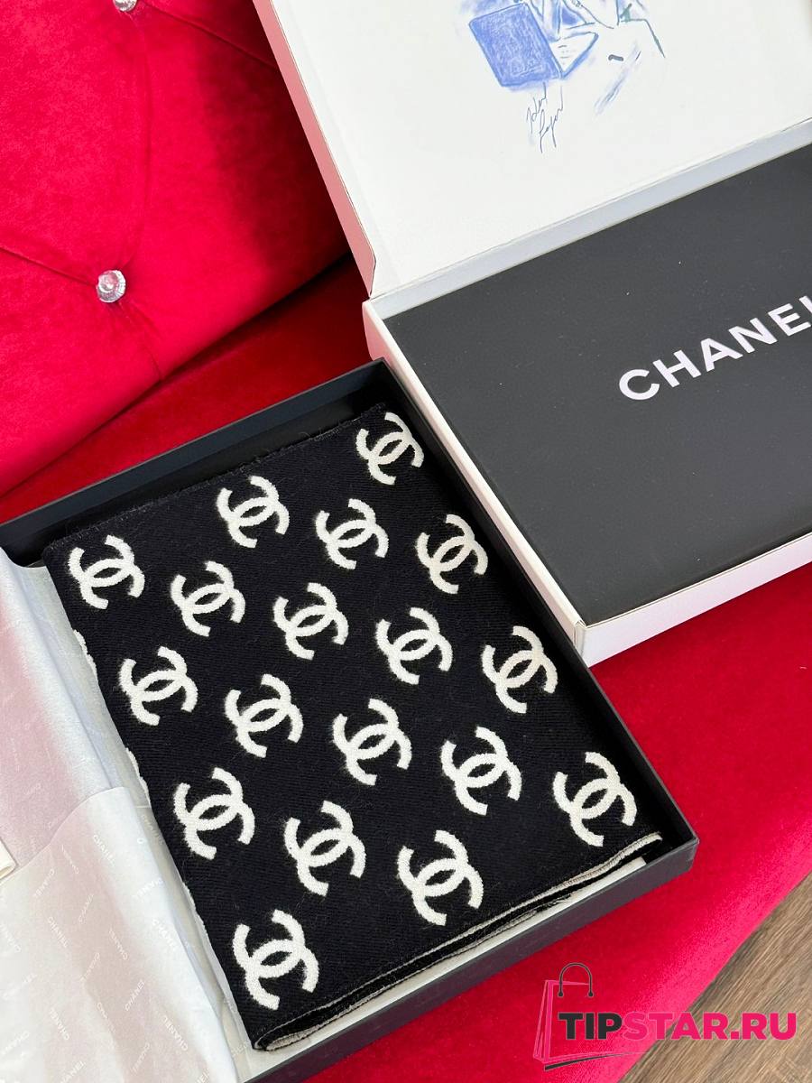 Chanel Book Seal Wool Long Scarf