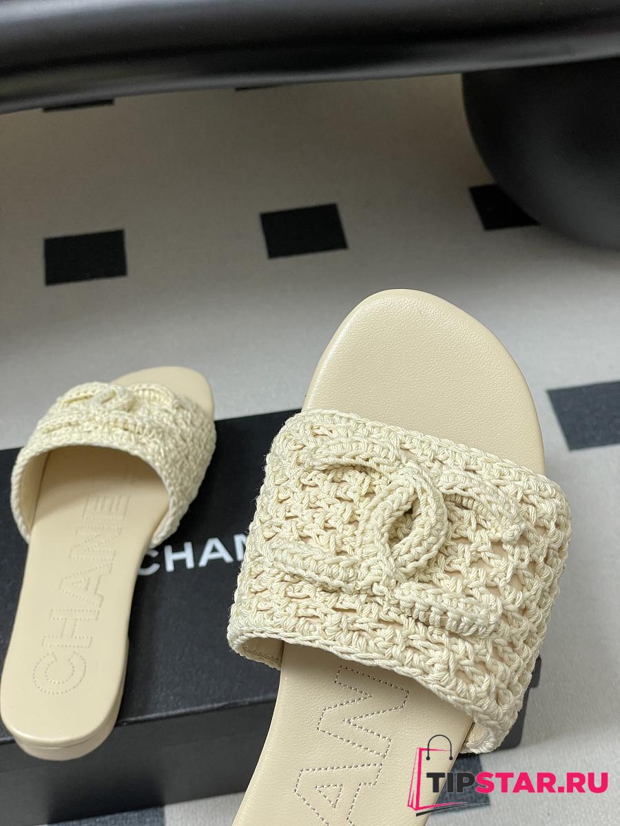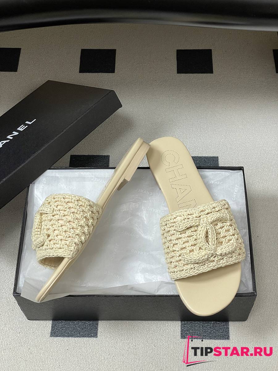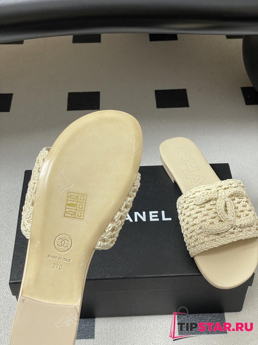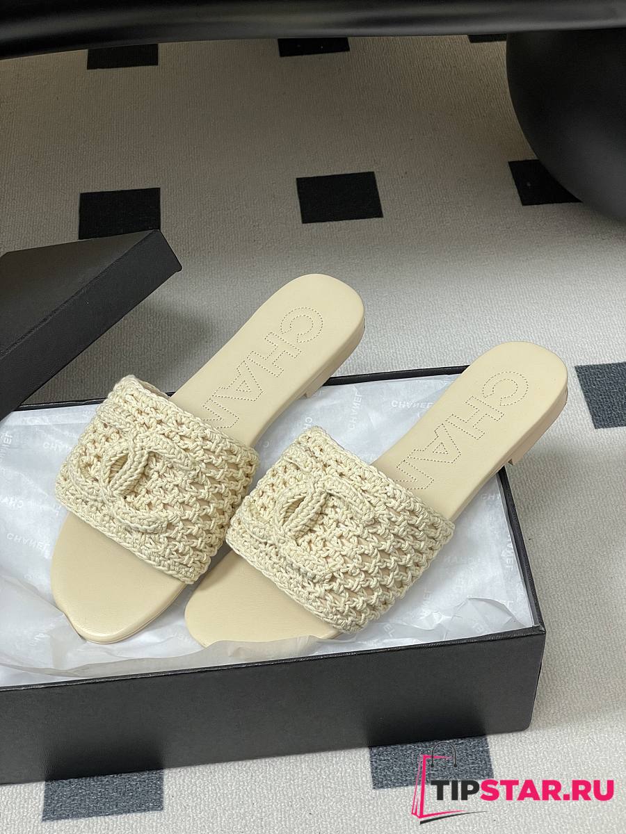 Chanel CC logo crochet design Sandals Beige