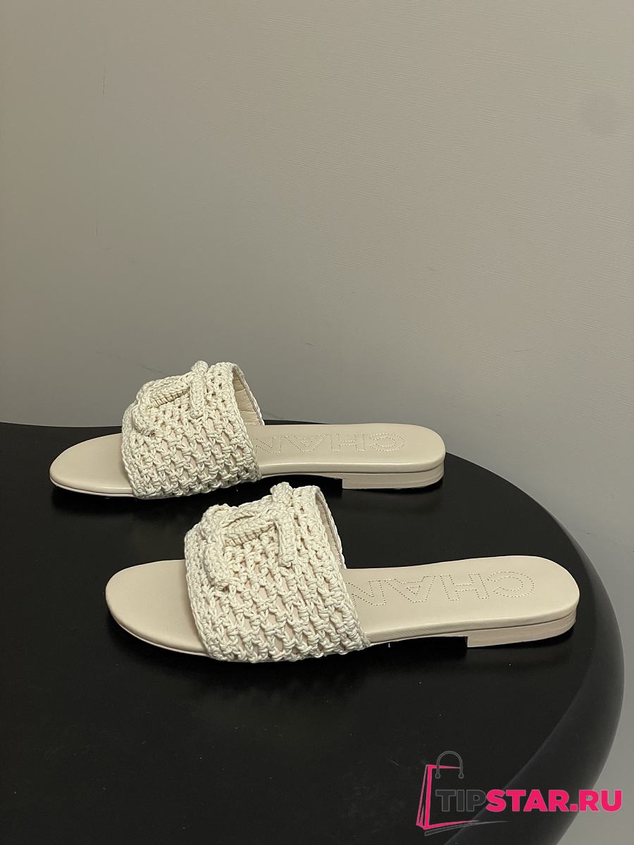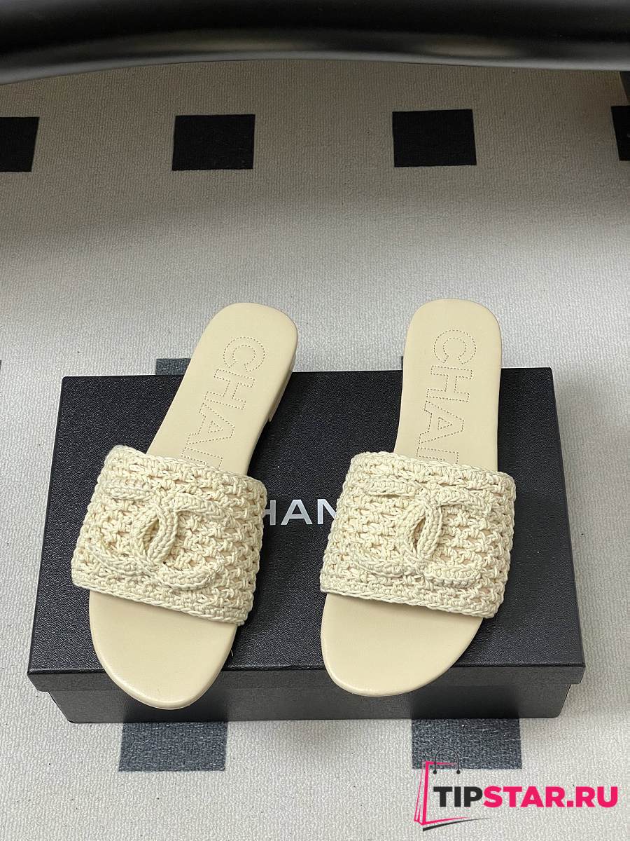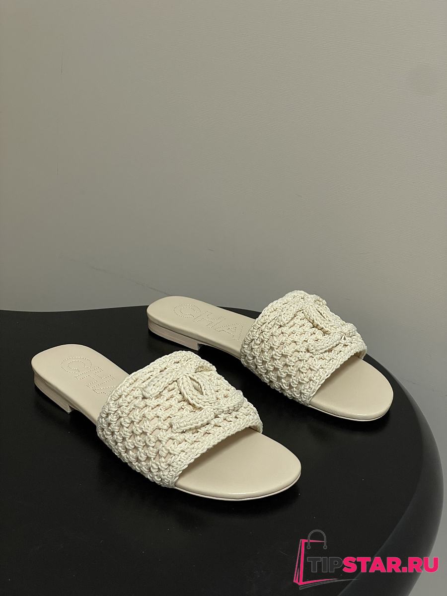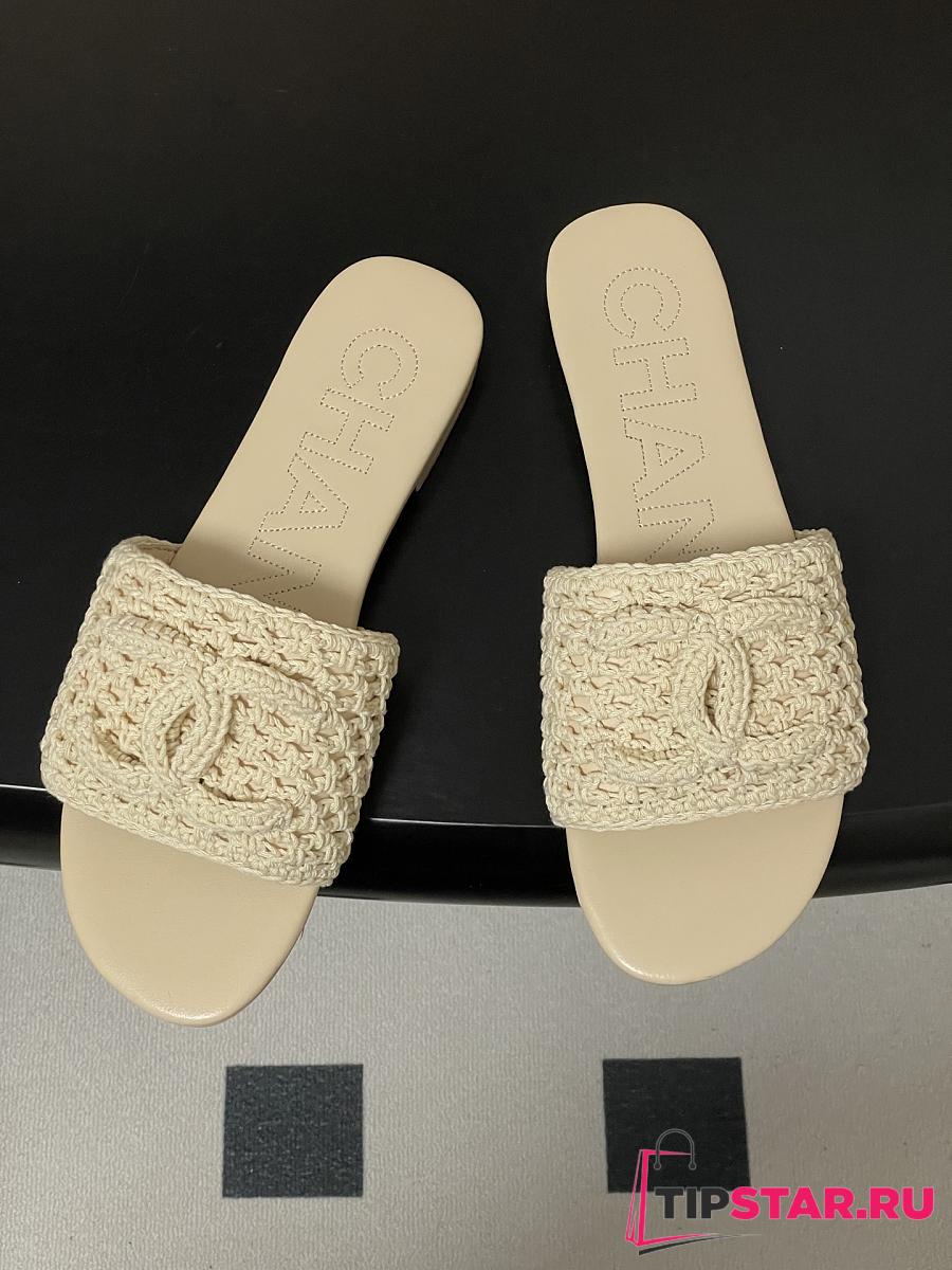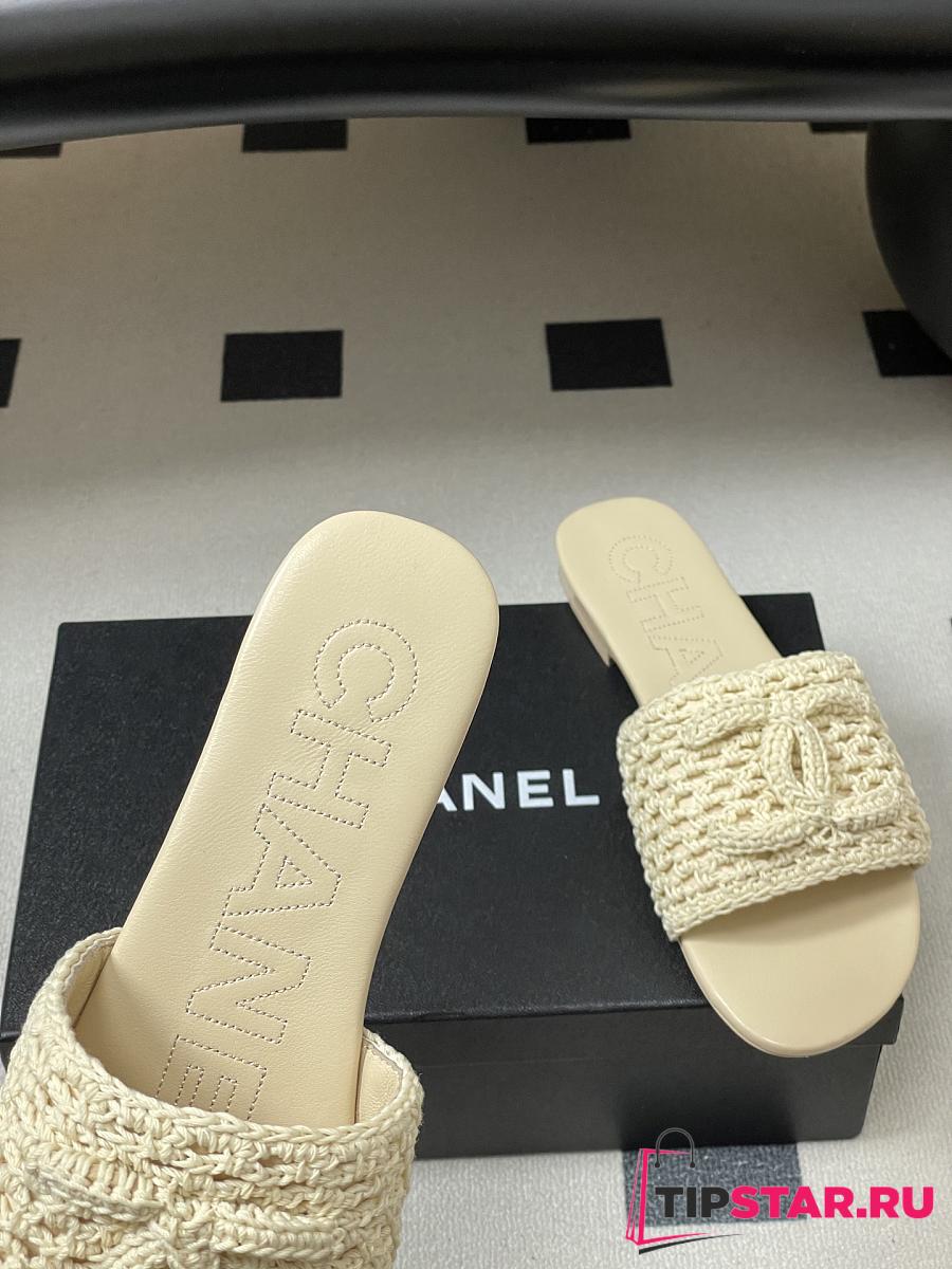Chanel CC logo crochet design Sandals Beige