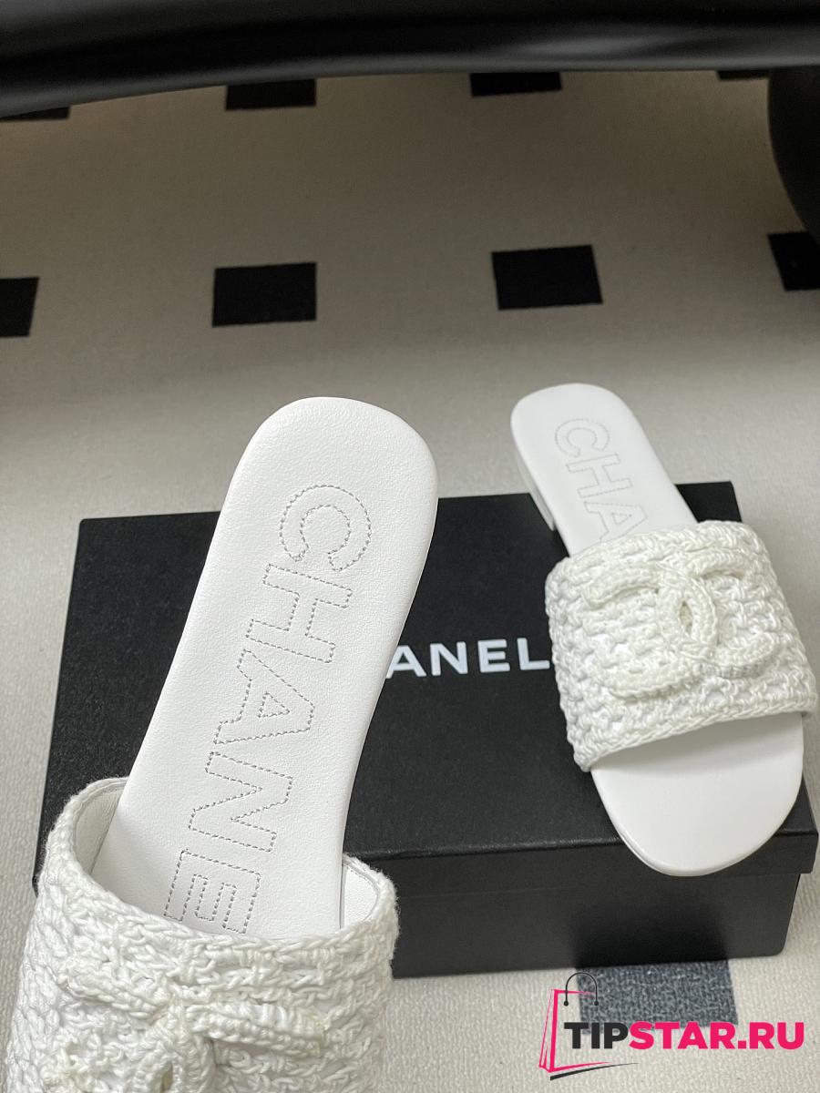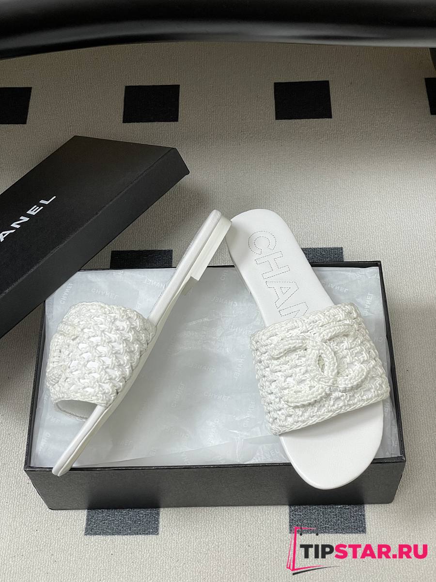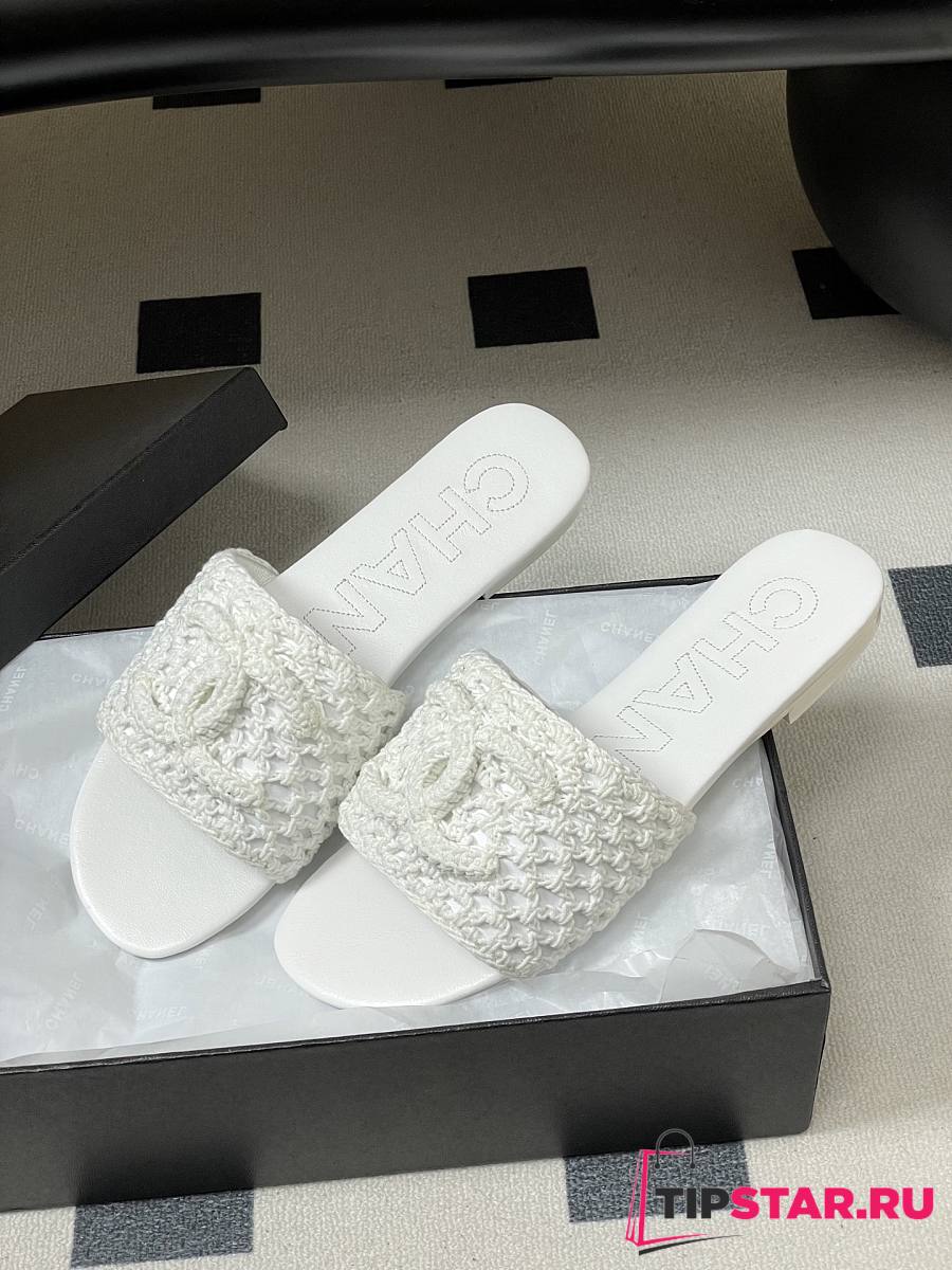 Chanel CC logo crochet design Sandals White