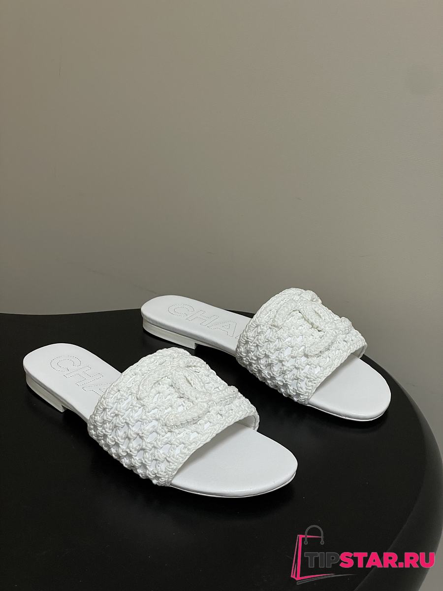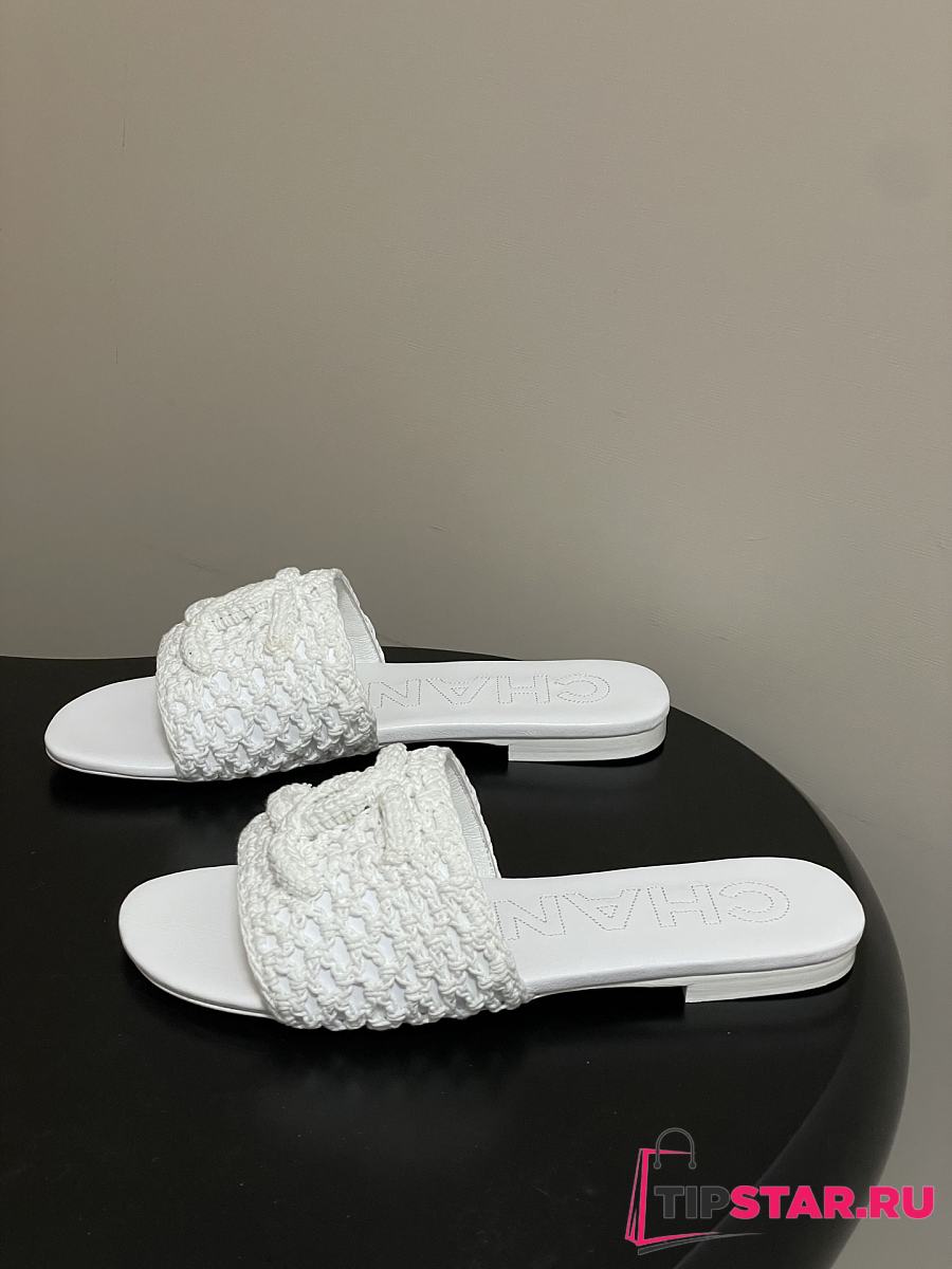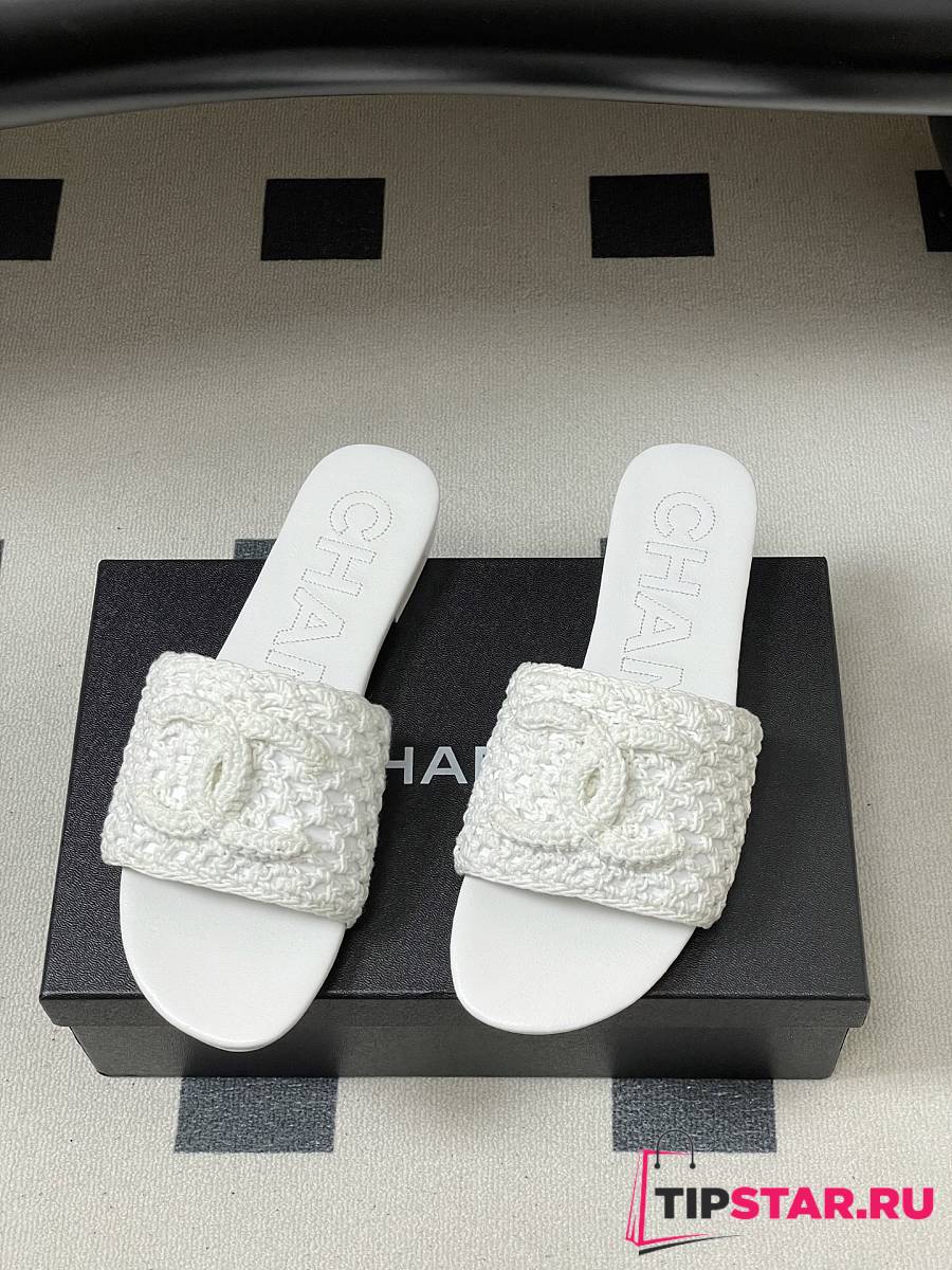 Chanel CC logo crochet design Sandals White