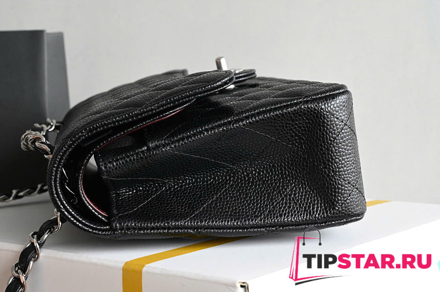 Chanel Small Flap Bag Black Lambskin Silver Metal 20cm
