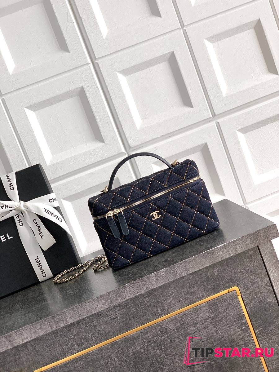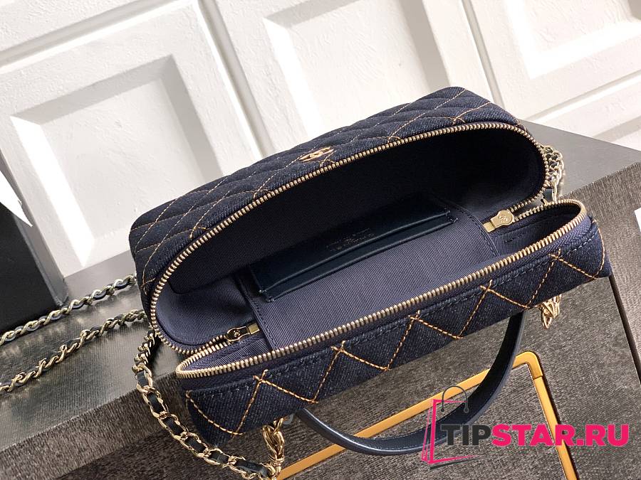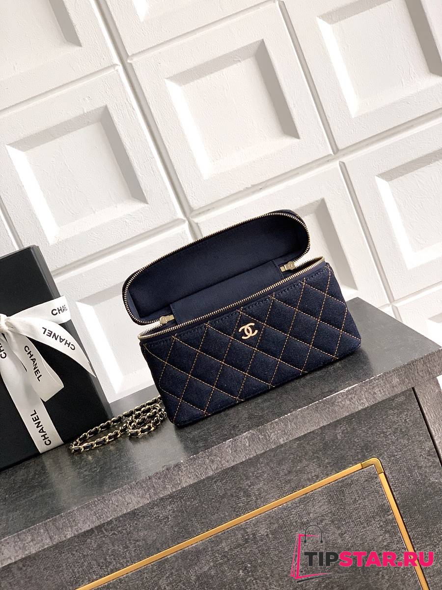 Chanel Classic Vanity with Chain Denim & Gold Metal Dark Blue & Orange