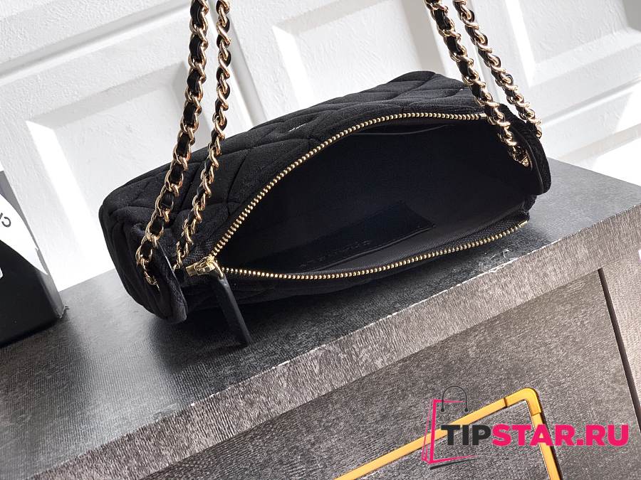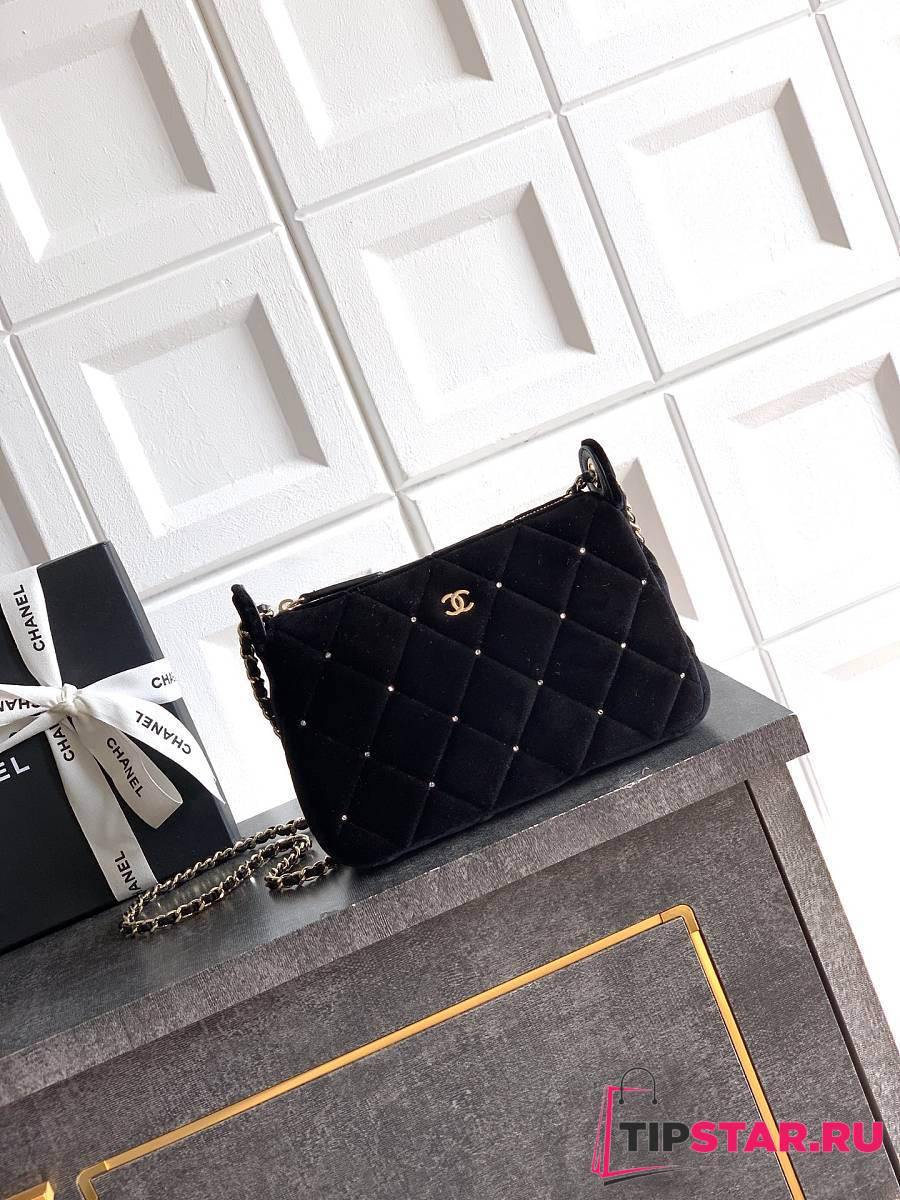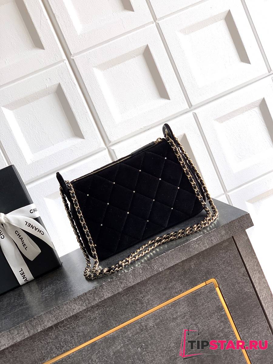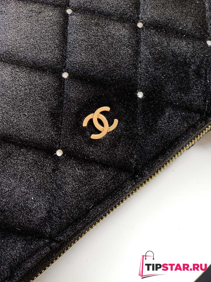 Chanel Clutch with Chain Velvet, gemstones & gold-plated metal black
