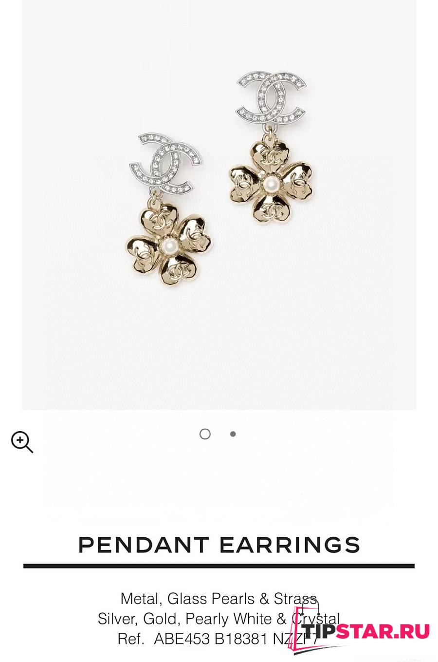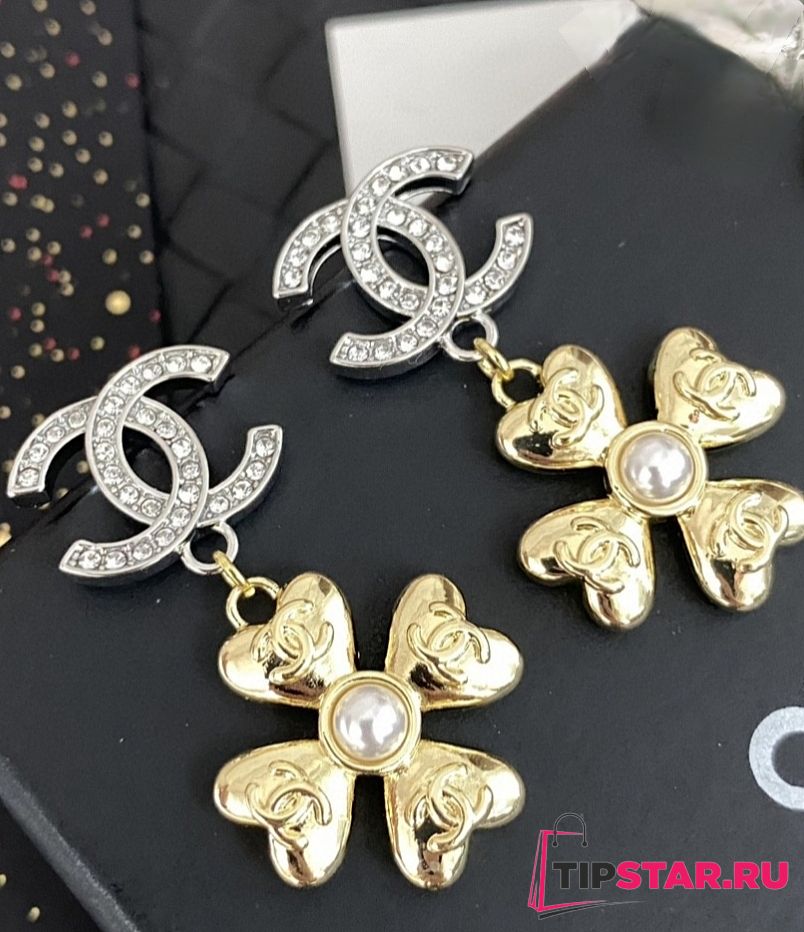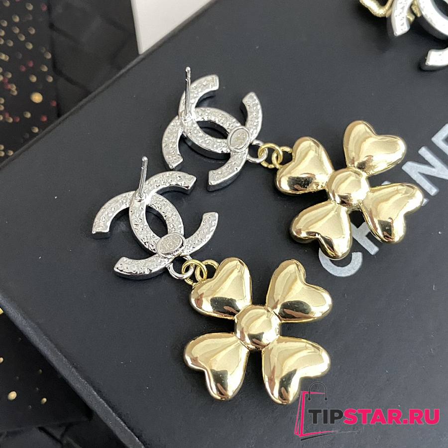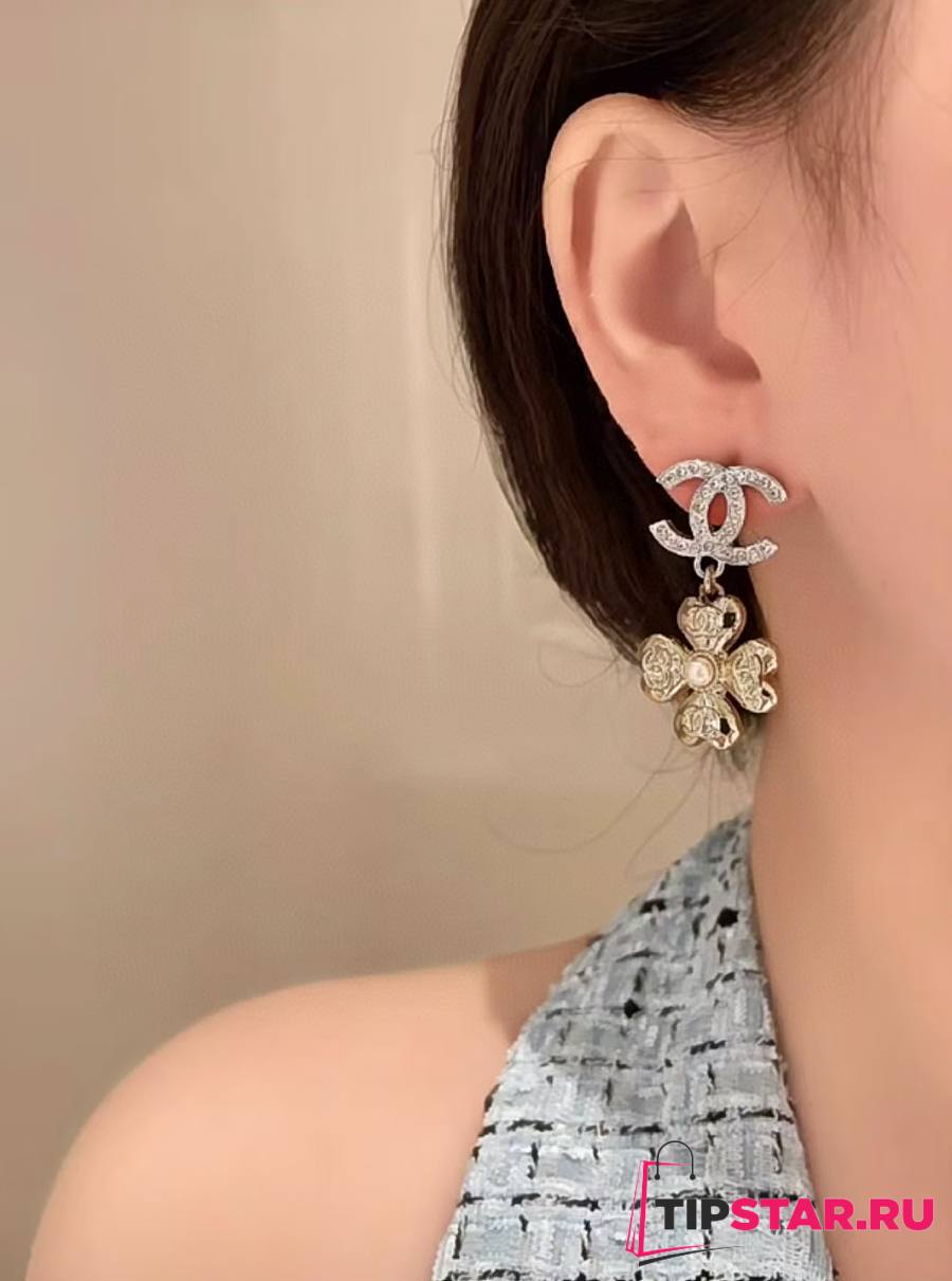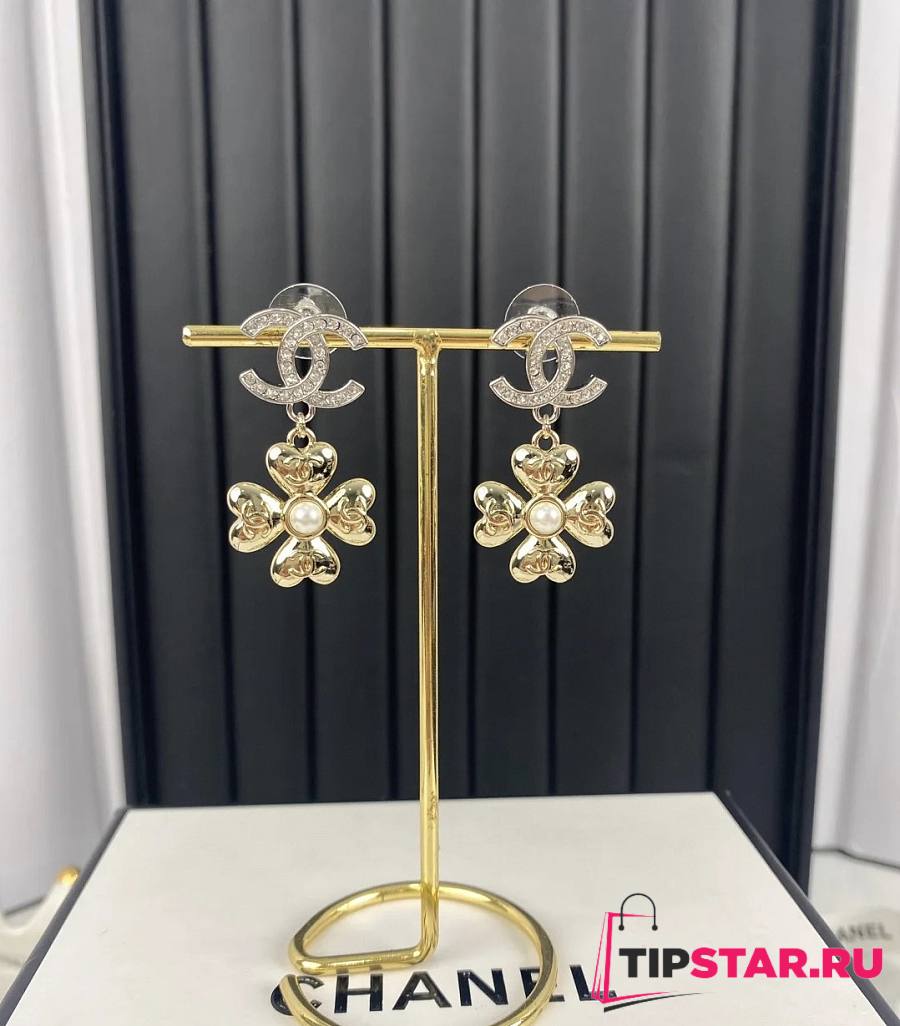 Chanel Double C Pendant Gold Four-Leaf Clover Earrings