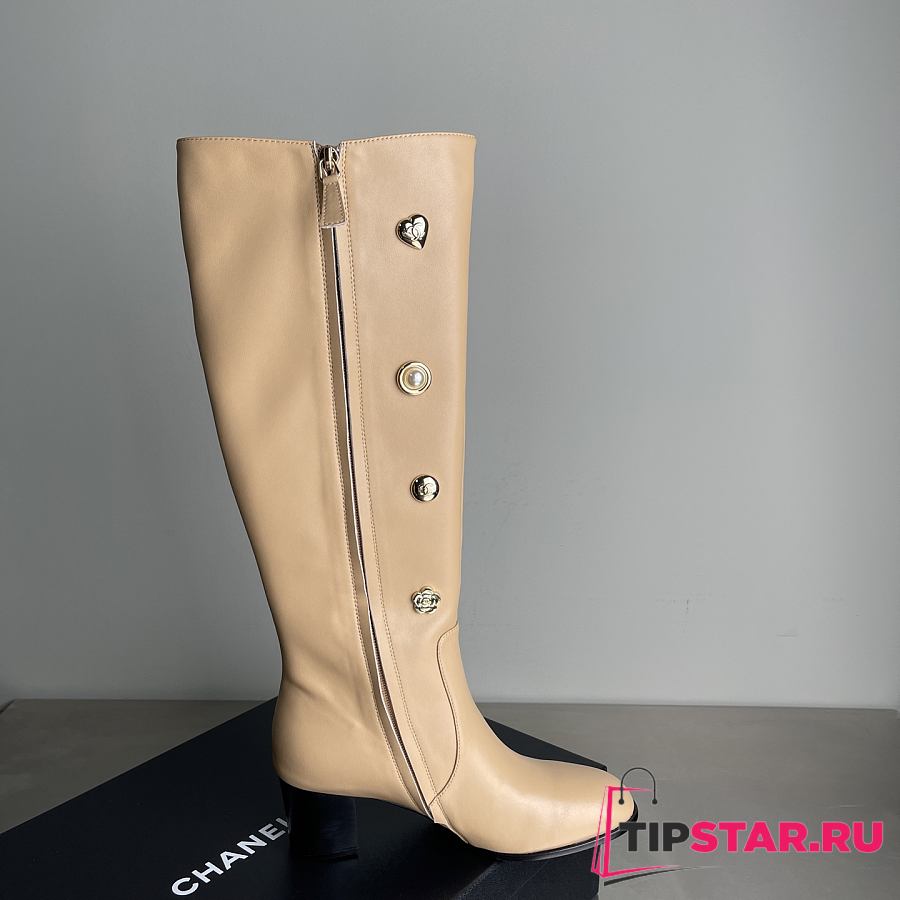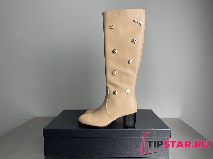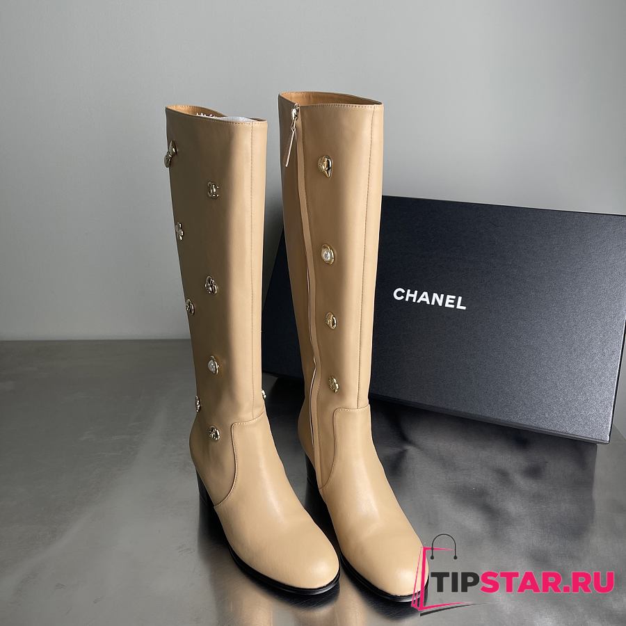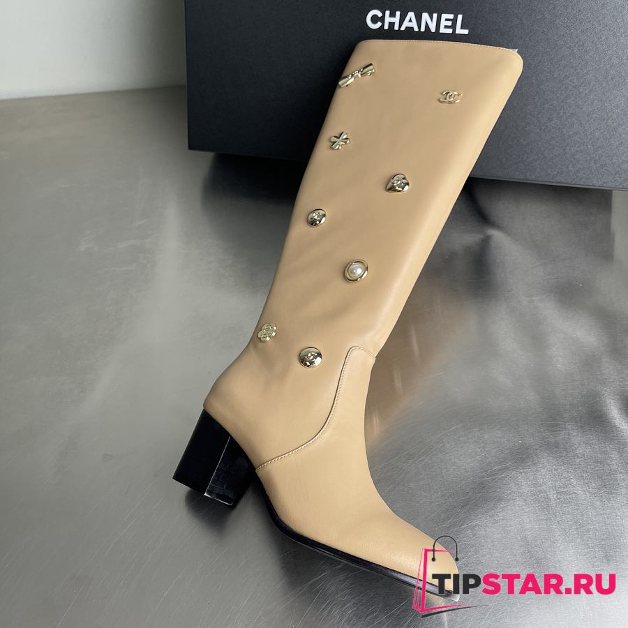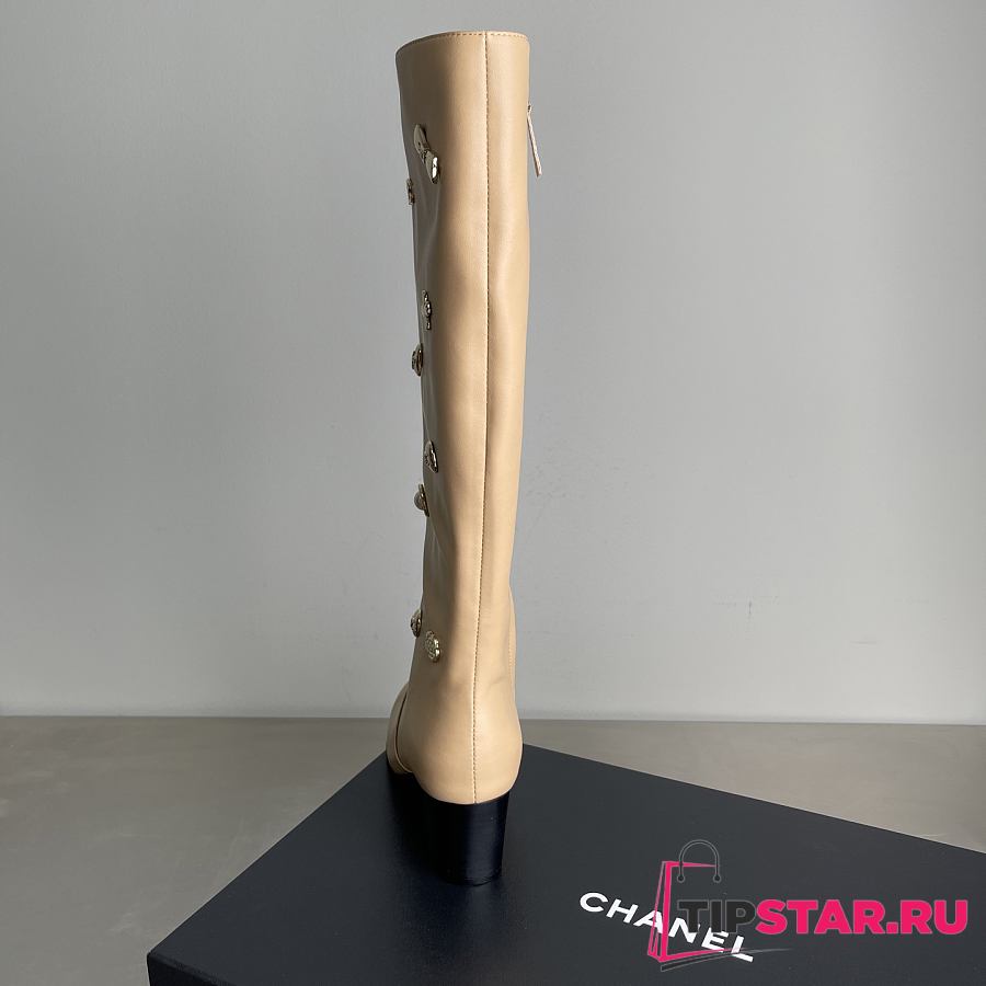 Chanel Double C Slim Fit Boots Beige