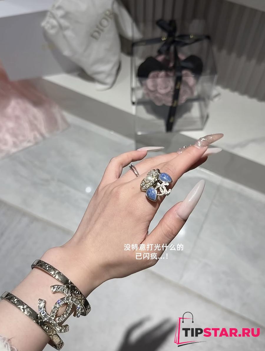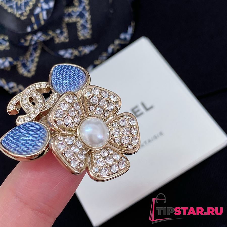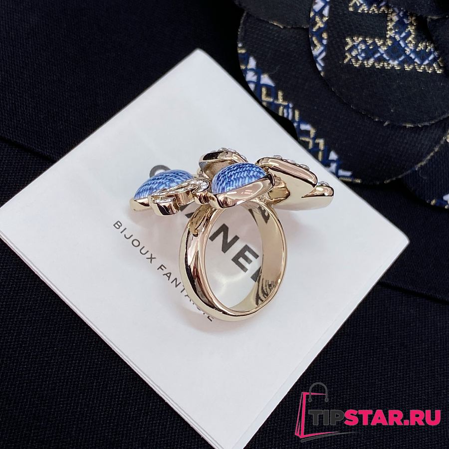 Chanel Fragrant Faux Denim Floral Double C Ring