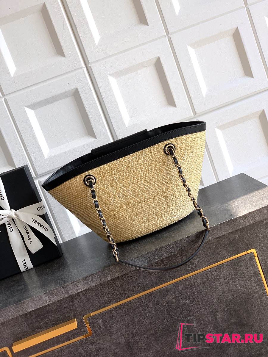 Chanel Medium shopping bag Braided straw Beige & Black