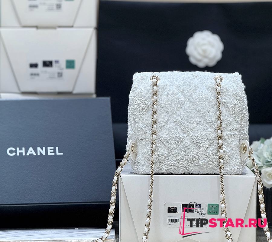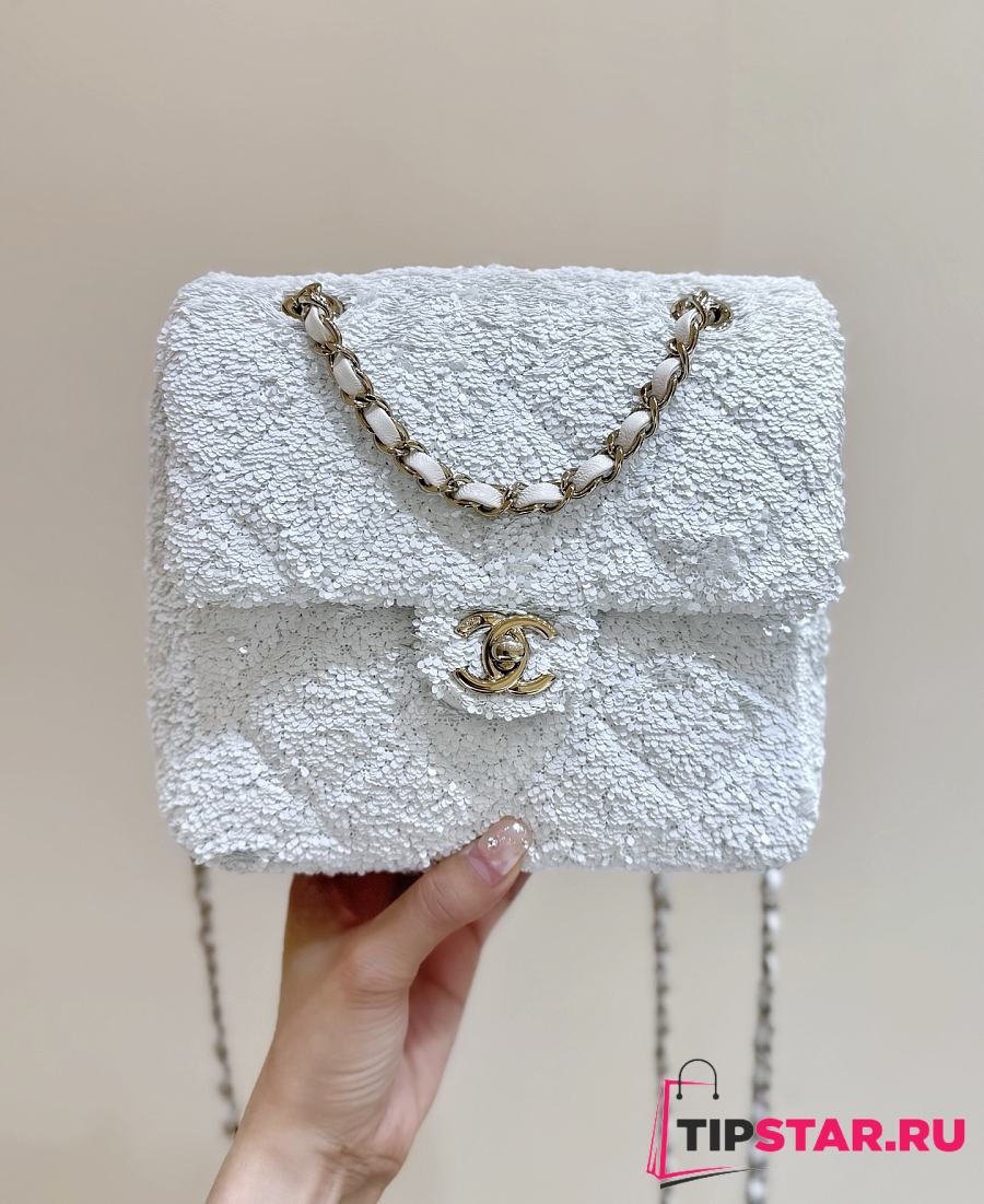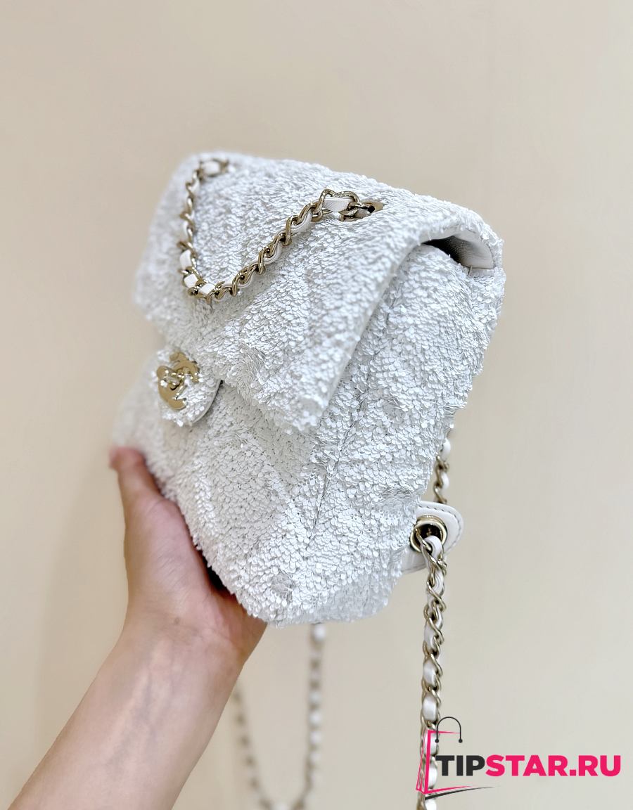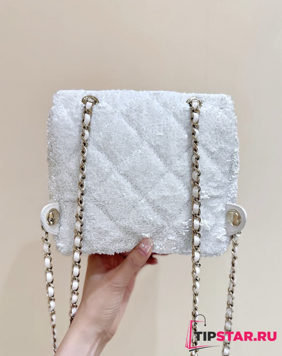 Chanel Timeless/Classique Chain glitter backpack white