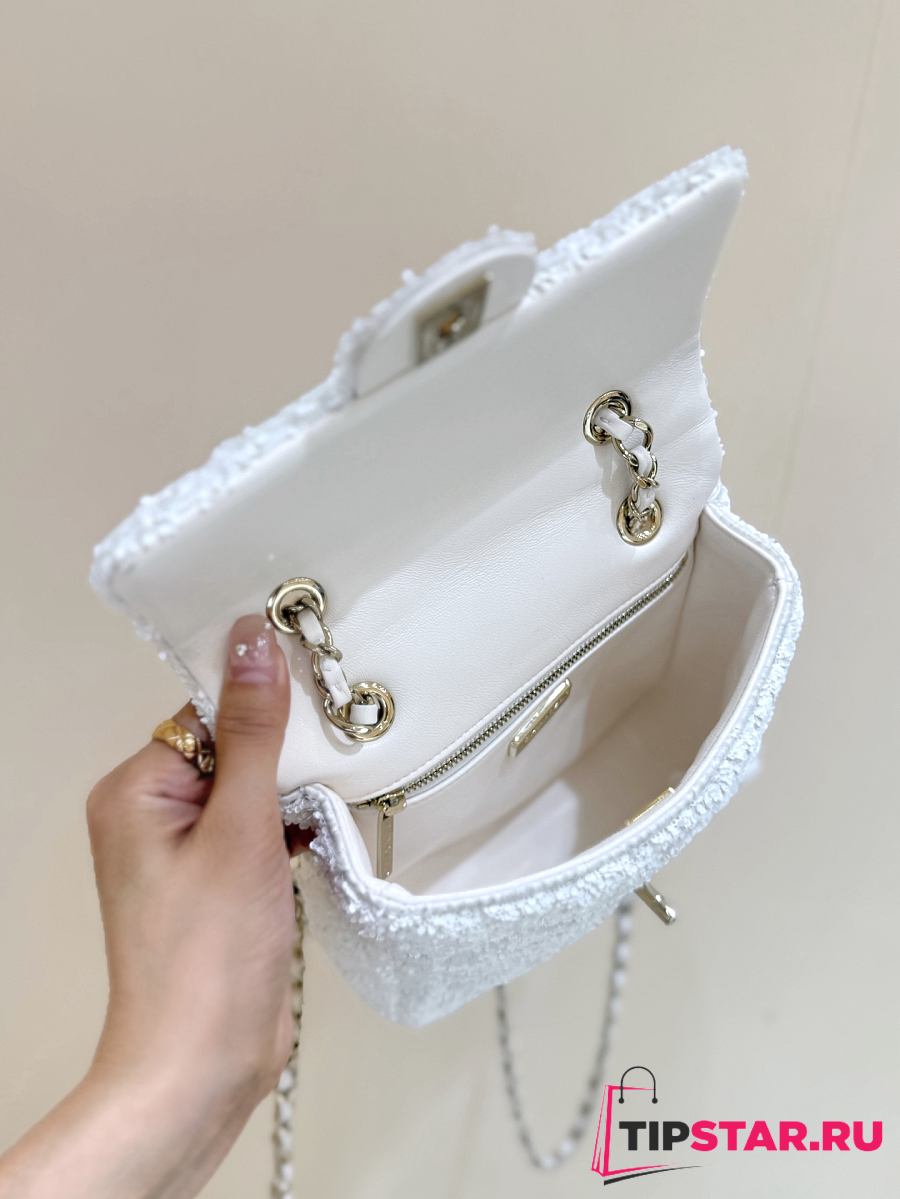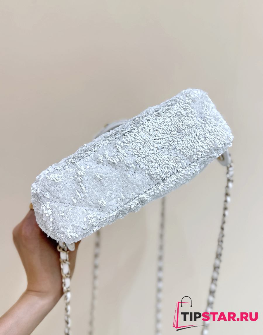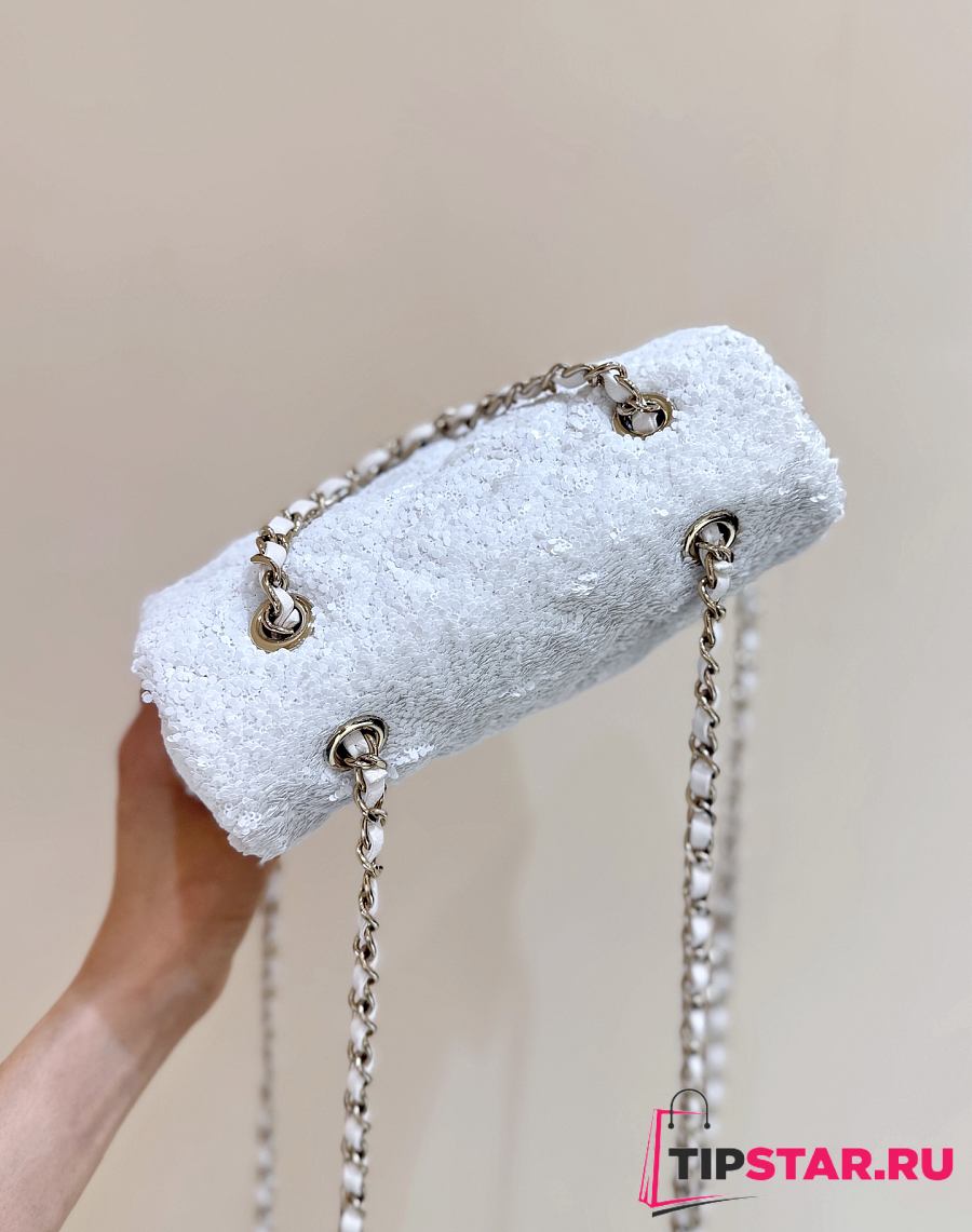 Chanel Timeless/Classique Chain glitter backpack white