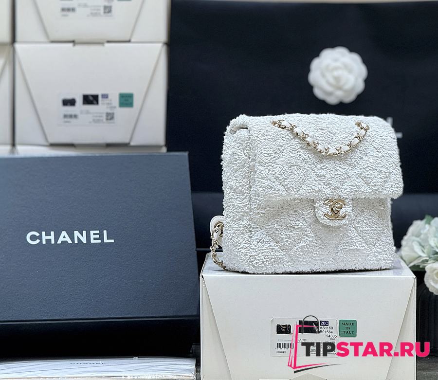 Chanel 22 Small Handbag AS3260 Shiny Calfskin & Rainbow Metal White Size 35 × 37 × 7 cm
