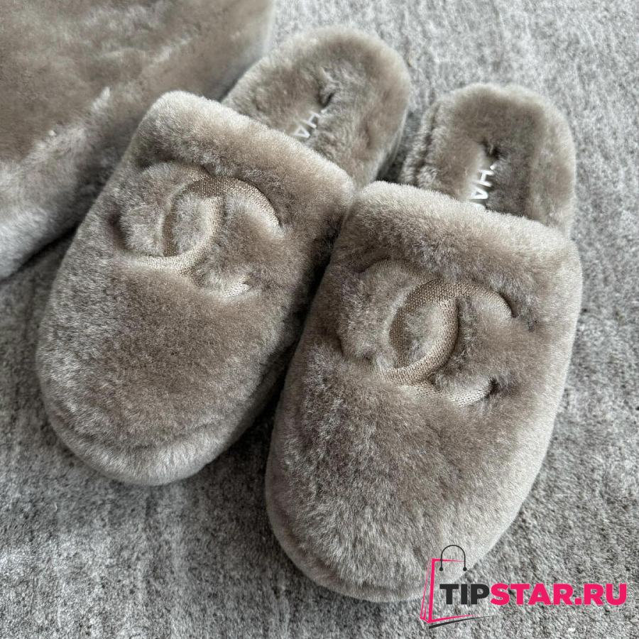 Chanel Super Warm Wool Grey Slippers