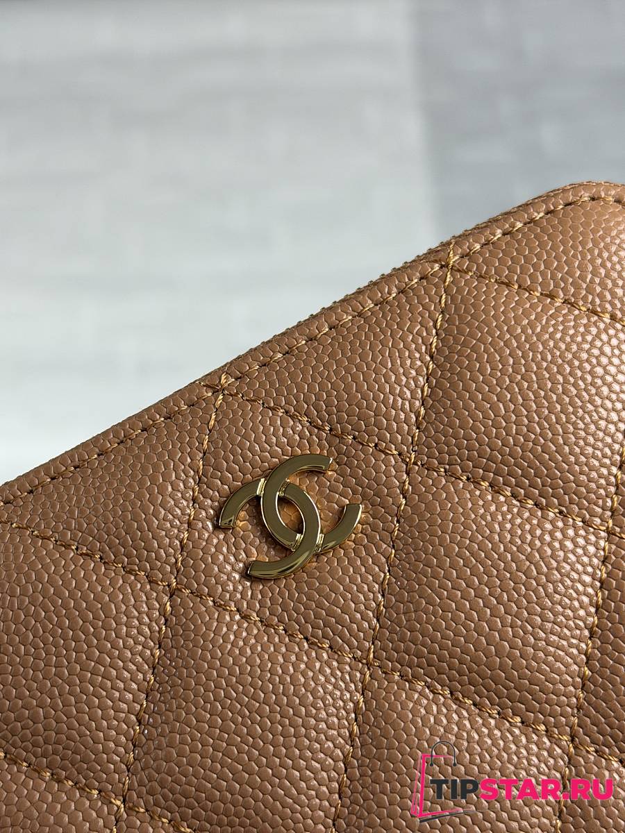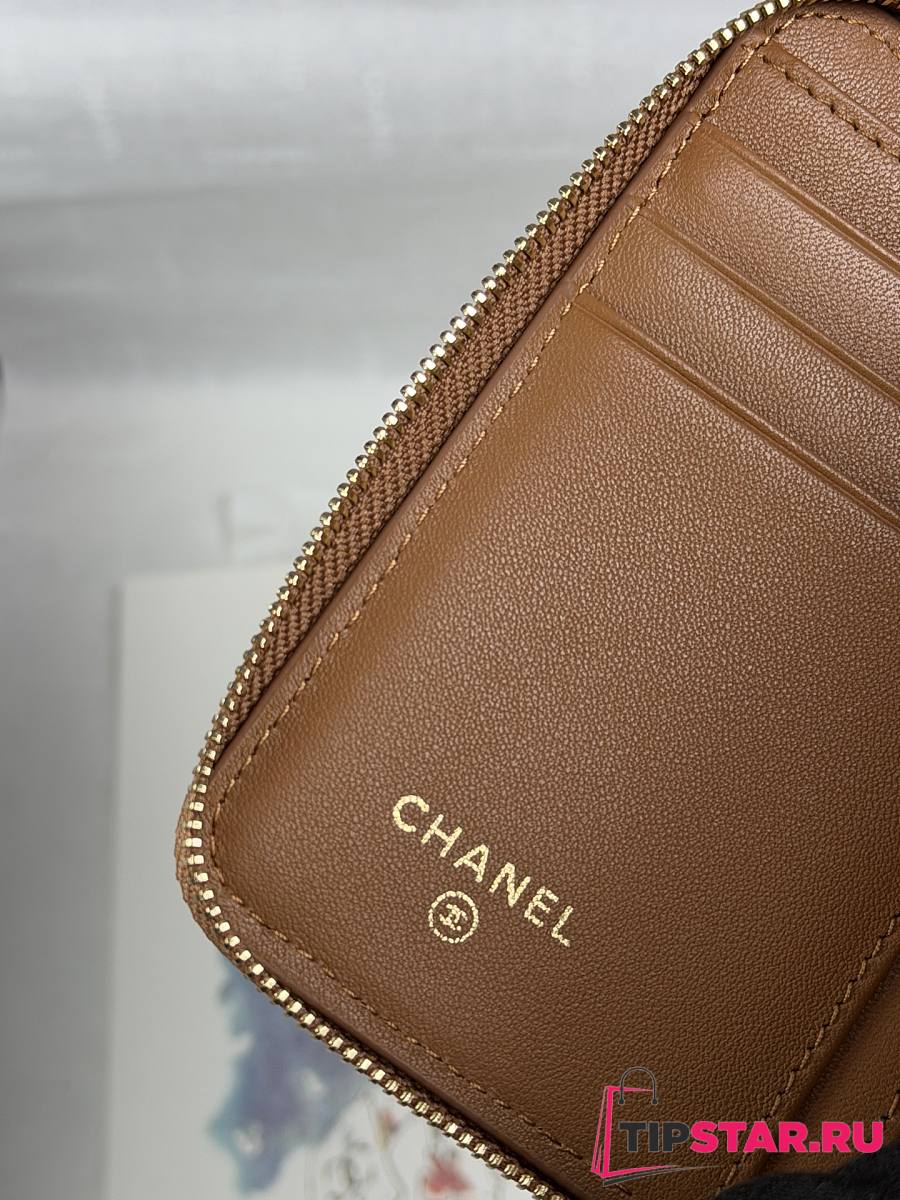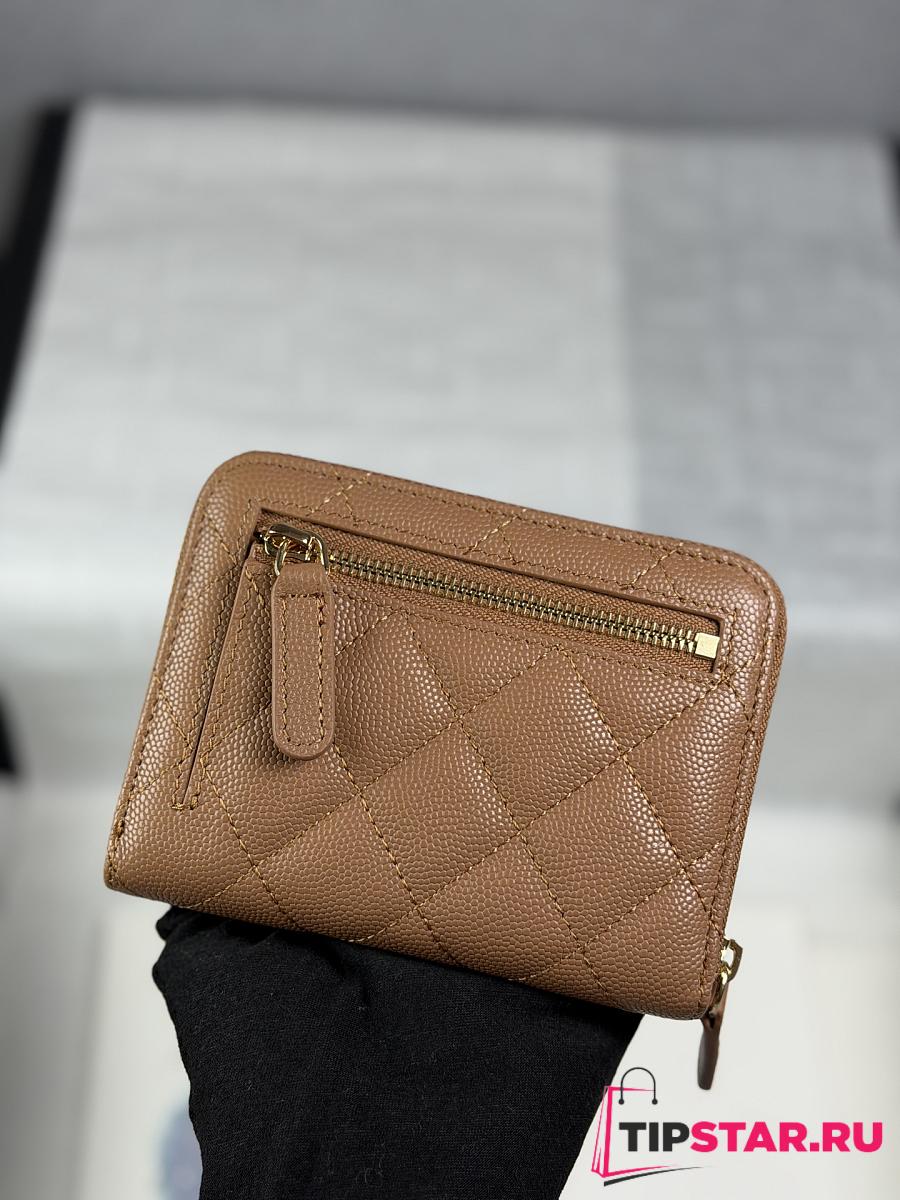 Chanel Zippered Coin Case Carviar Gold Hardware Brown
