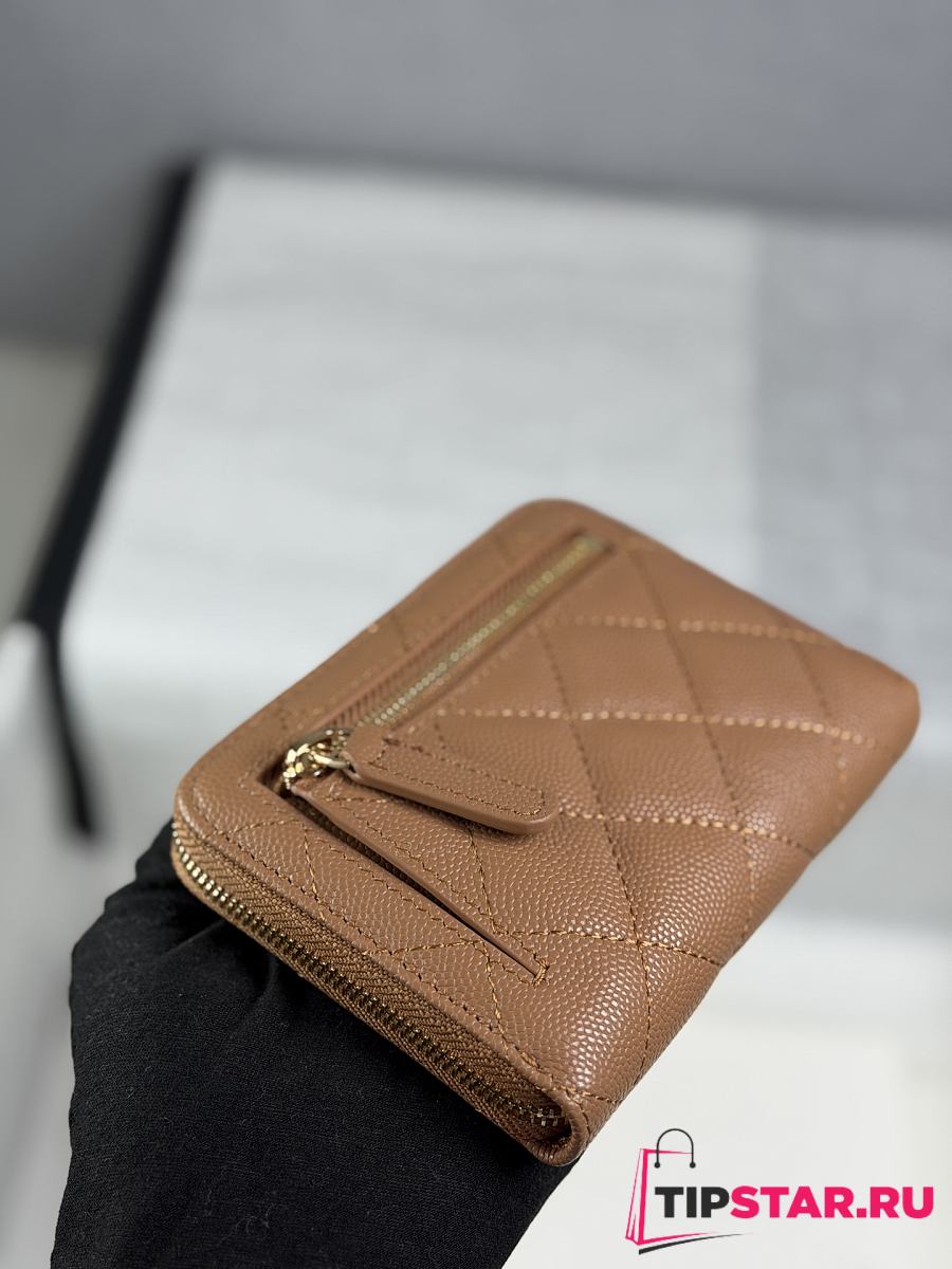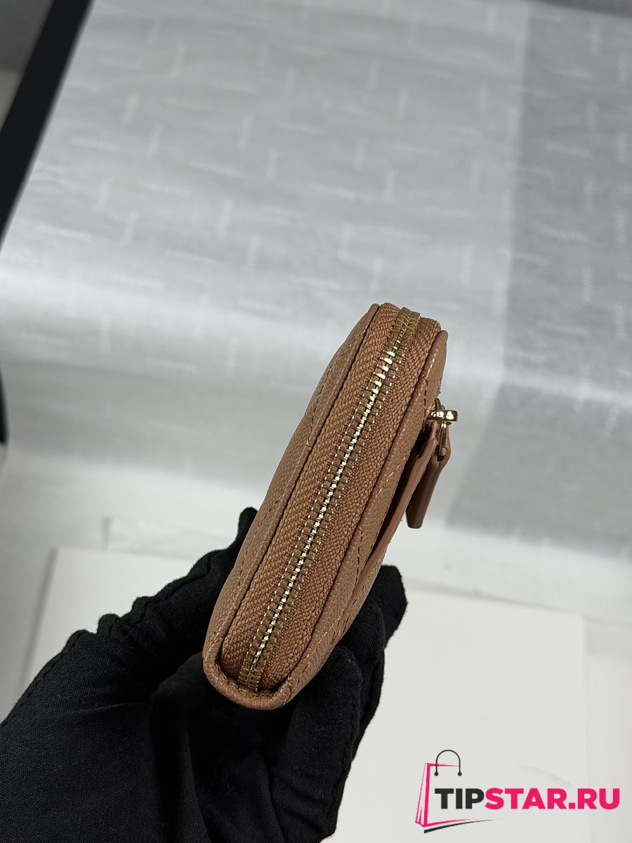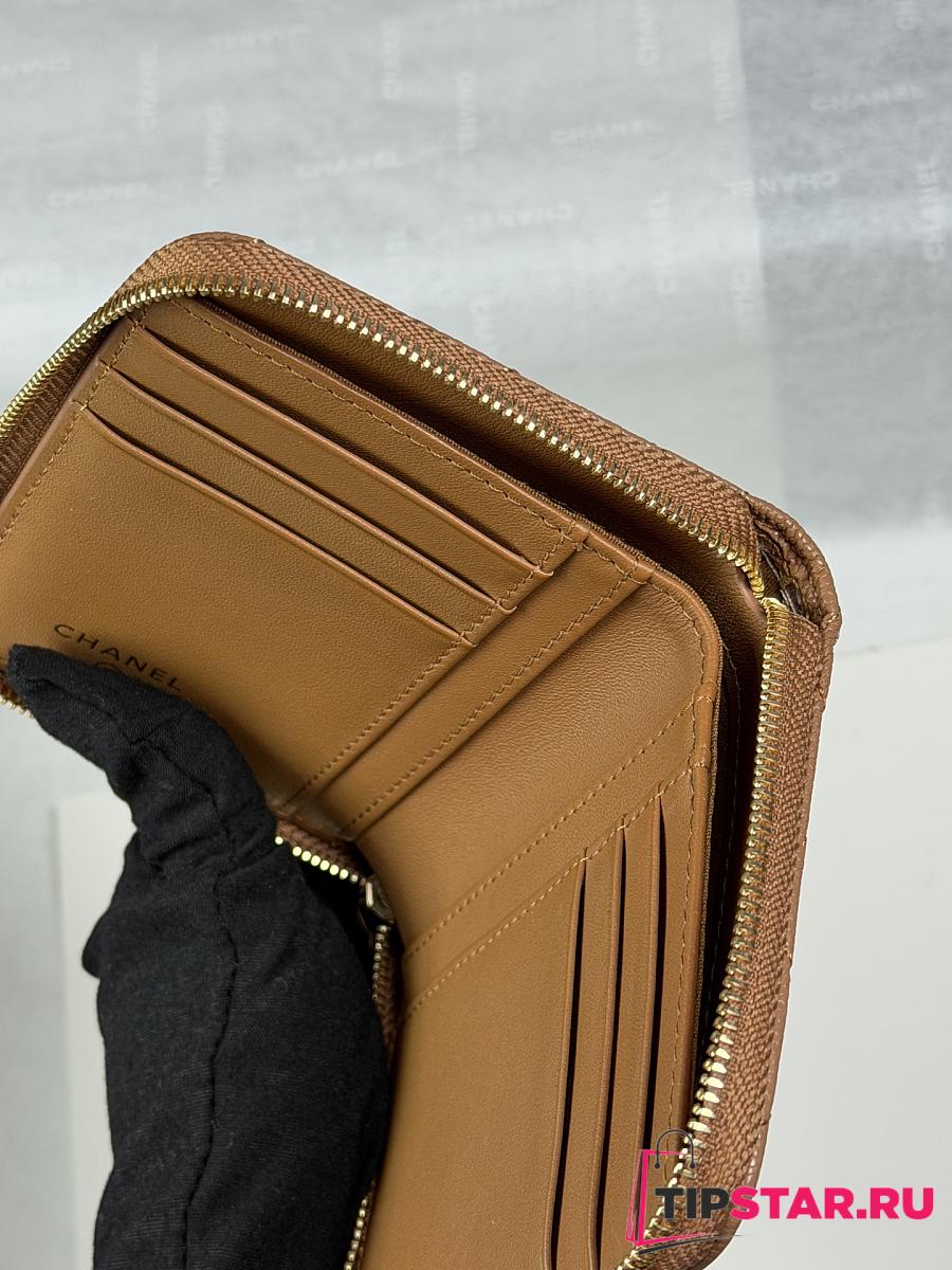 Chanel Zippered Coin Case Carviar Gold Hardware Brown
