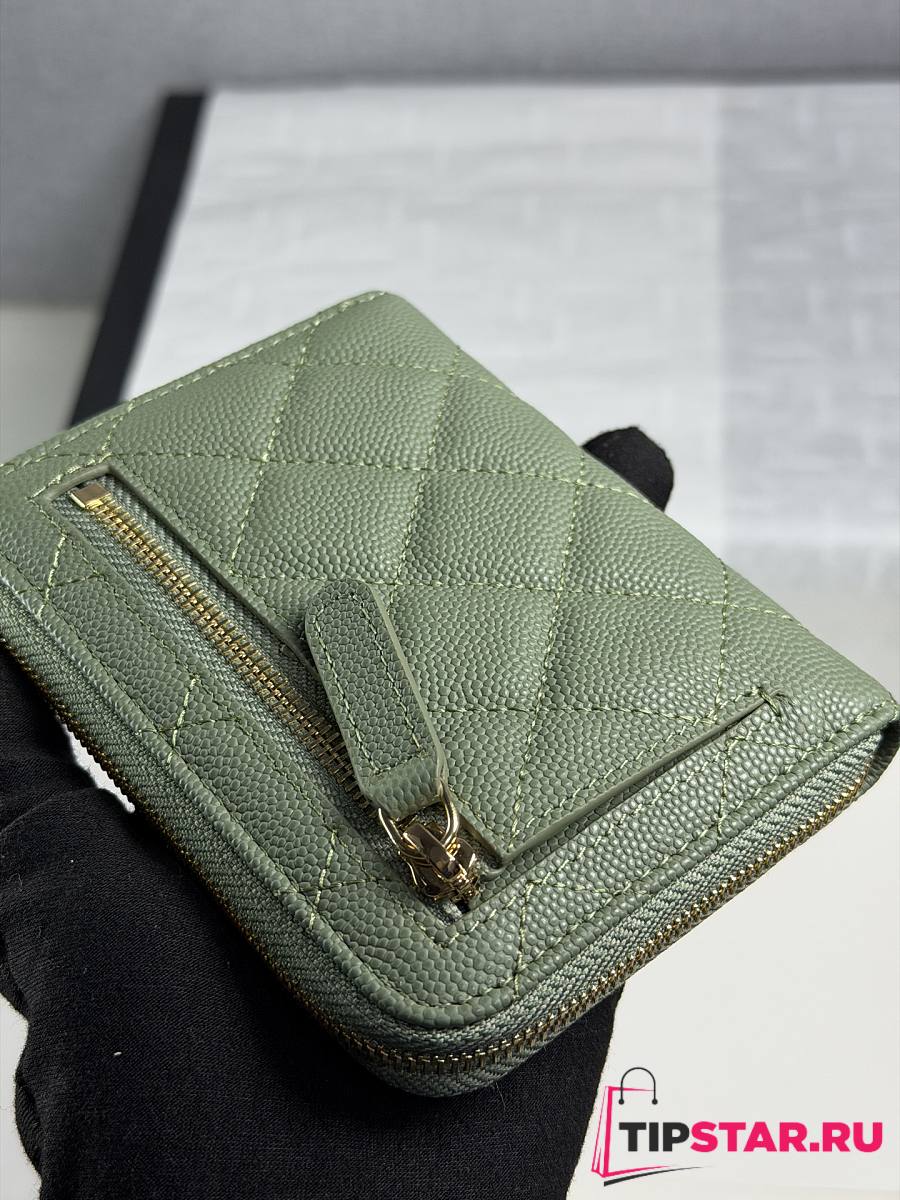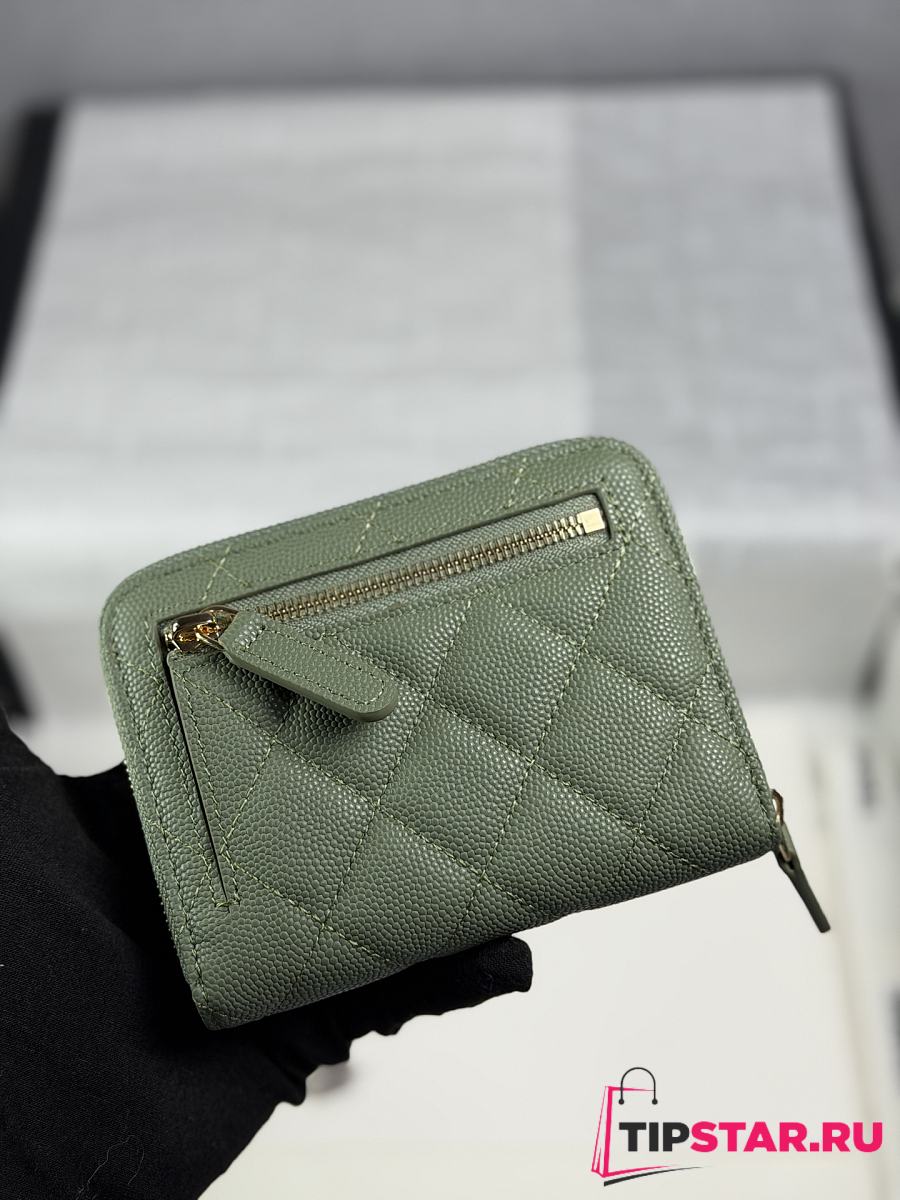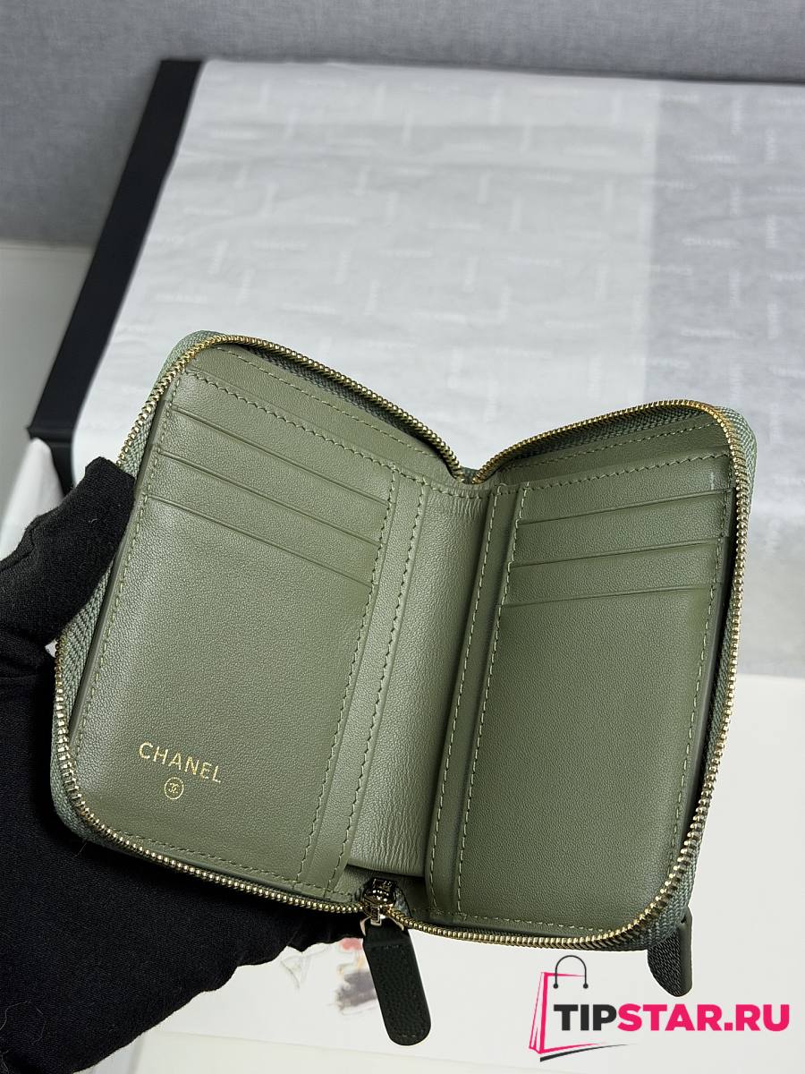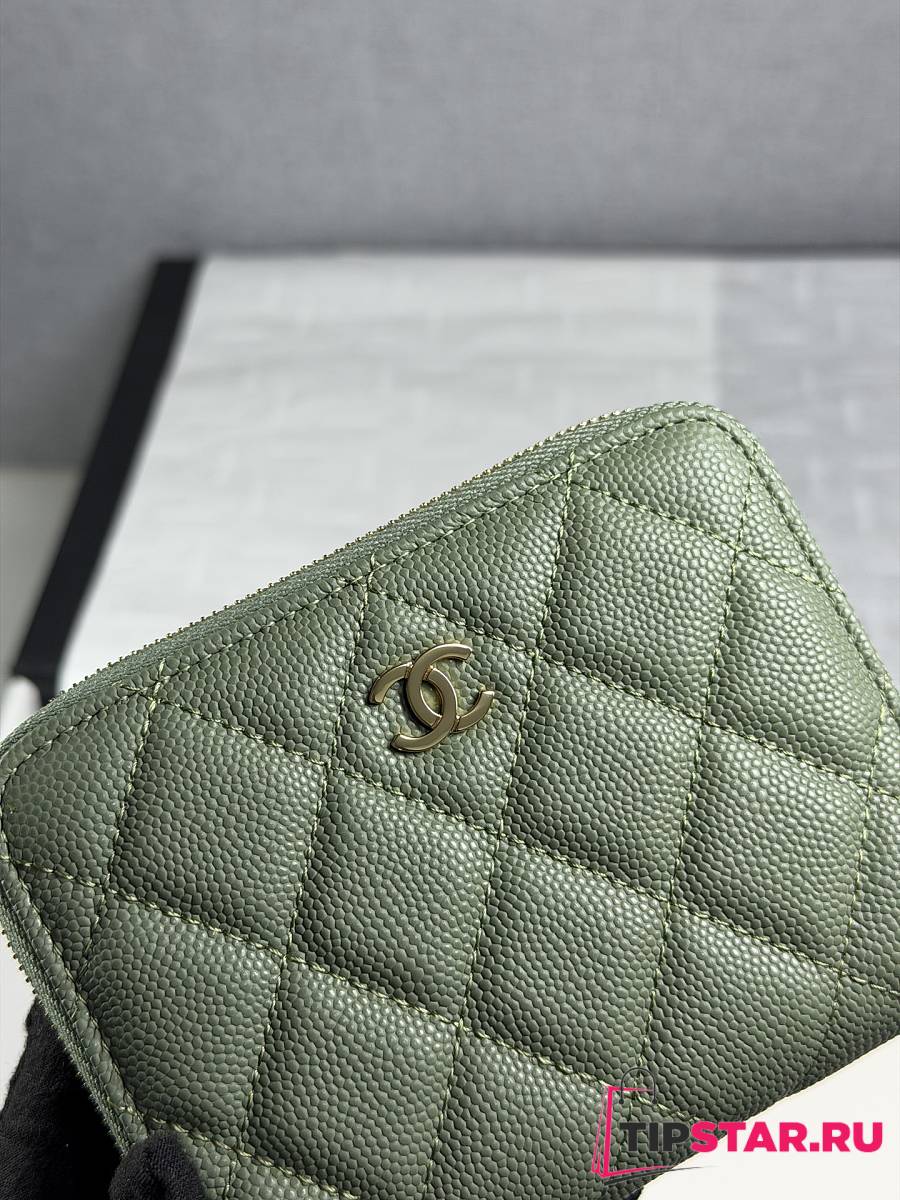 Chanel Zippered Coin Case Carviar Gold Hardware Green