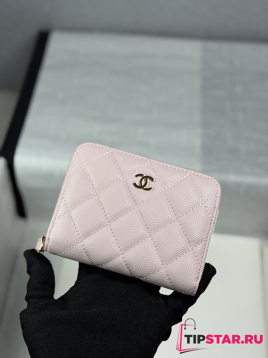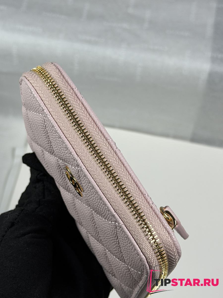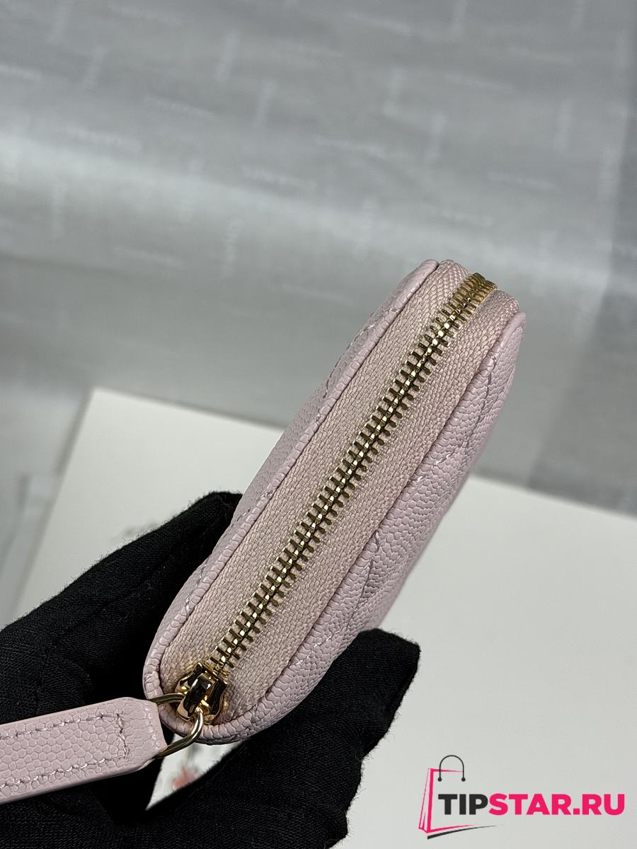 Chanel Zippered Coin Case Carviar Gold Hardware Light Pink