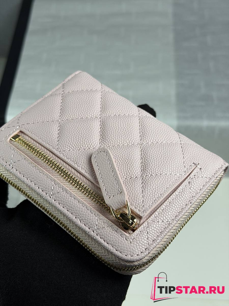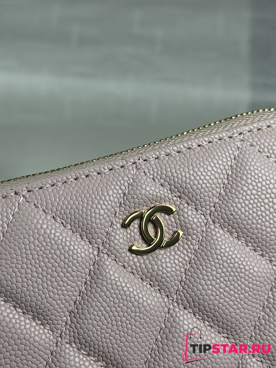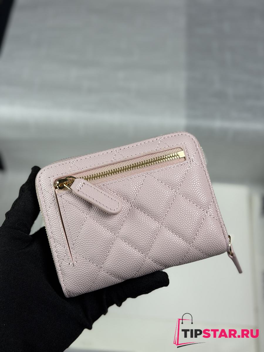 Chanel Zippered Coin Case Carviar Gold Hardware Light Pink
