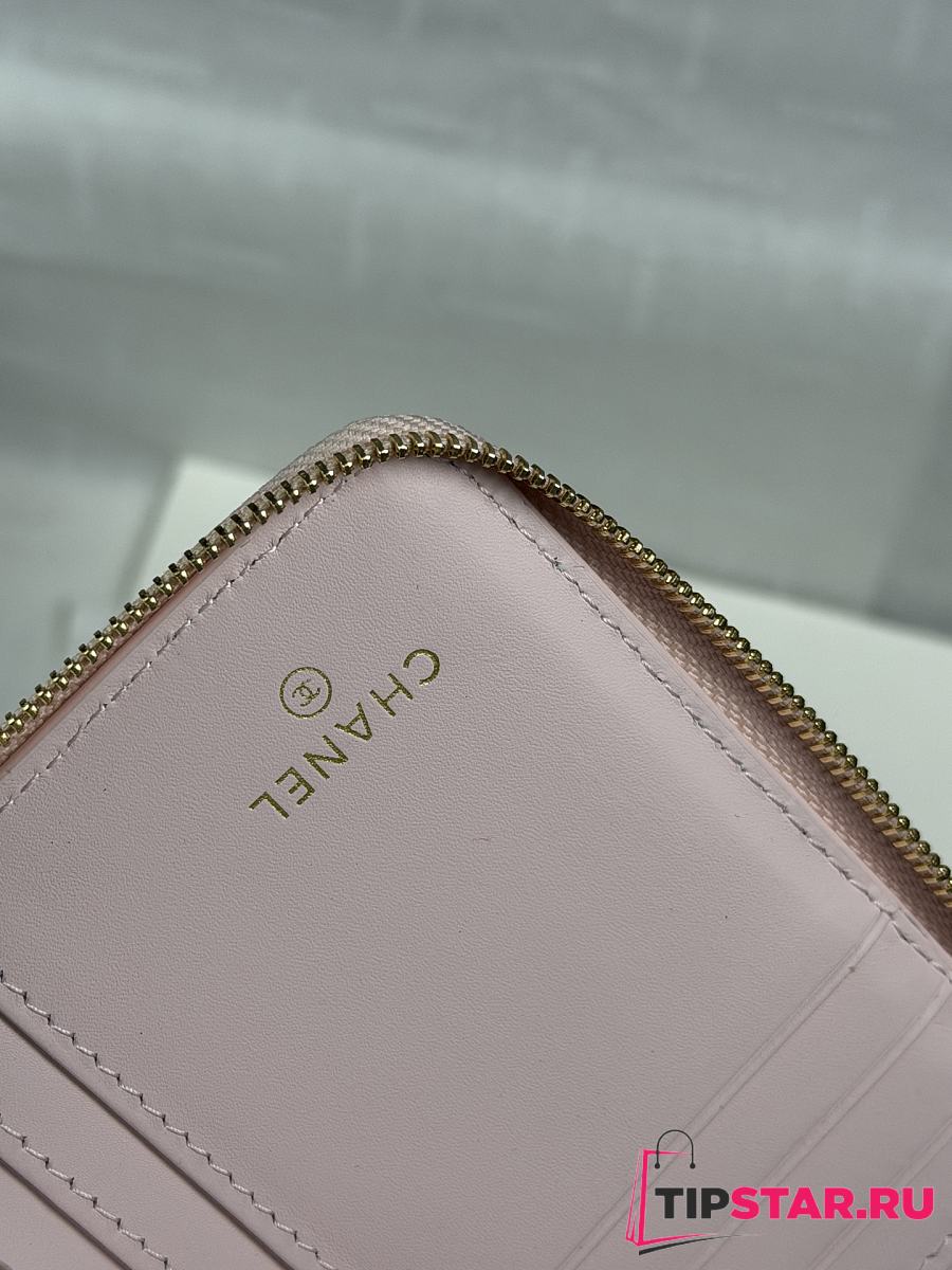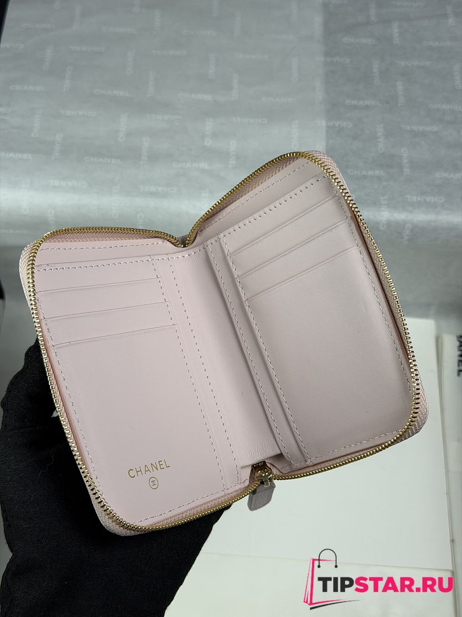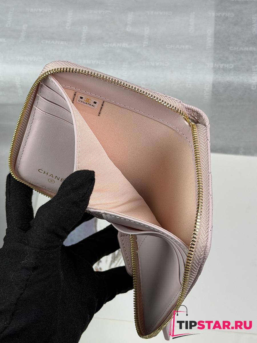 CHANEL Wallet Grained Calfskin & Gold-Tone Metal Light Pink -11X7 cm