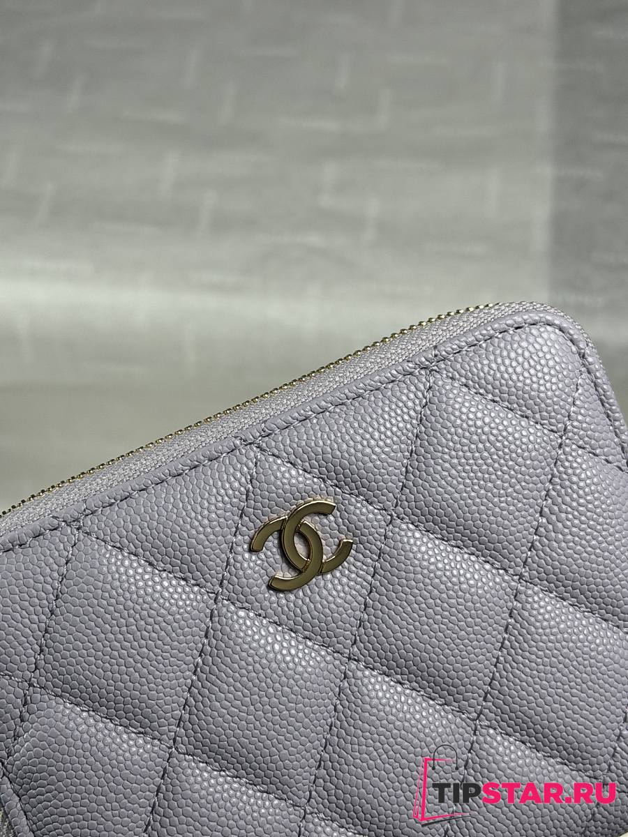 Chanel Zippered Coin Case Carviar Gold Hardware Purble