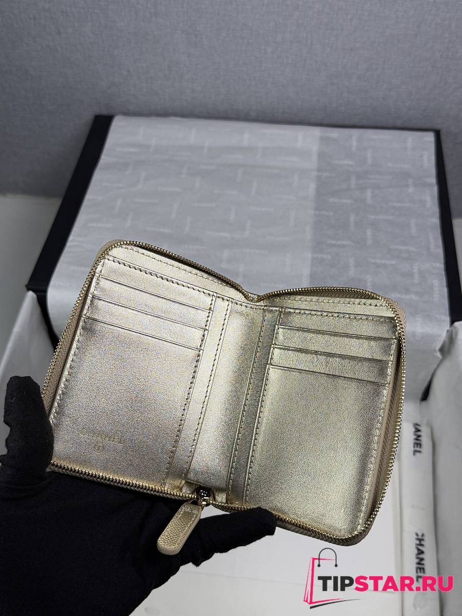 Chanel Zippered Coin Case Champagne Gold