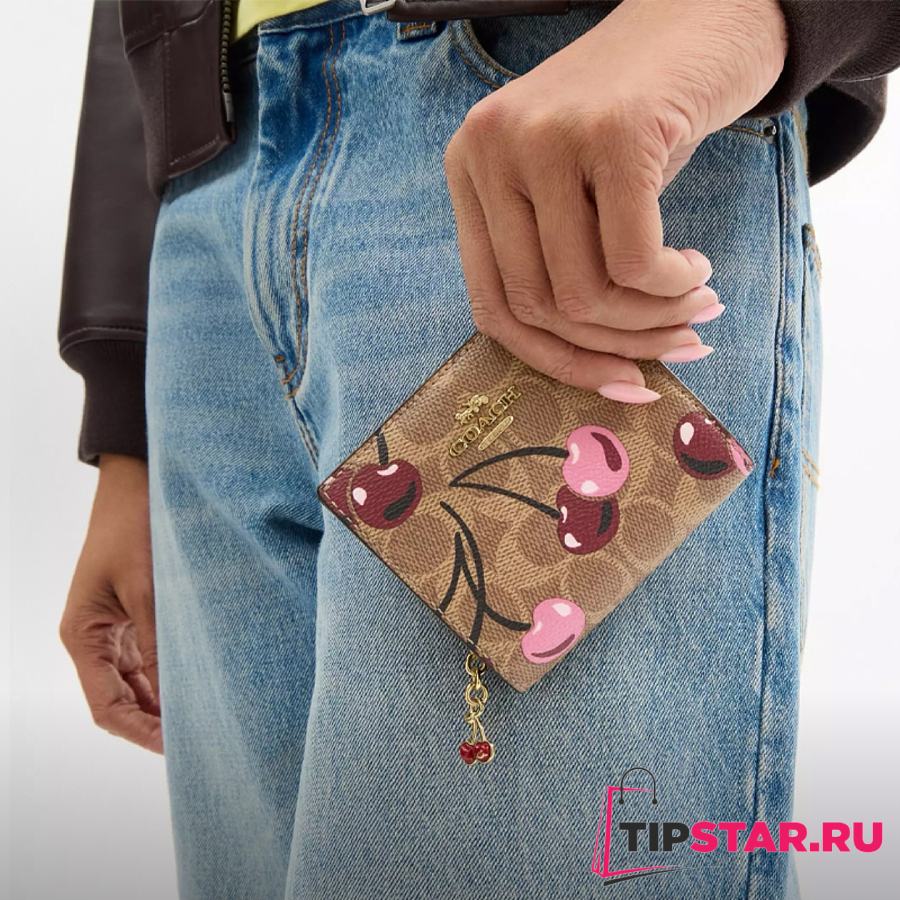 Coach Snap Wallet In Signature Canvas With Cherry 01