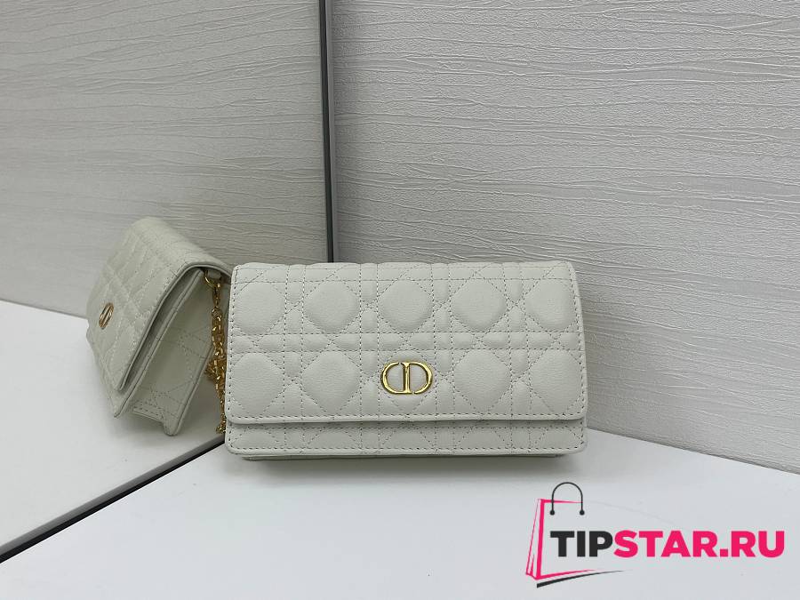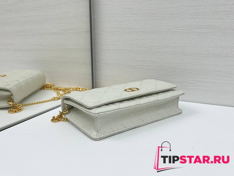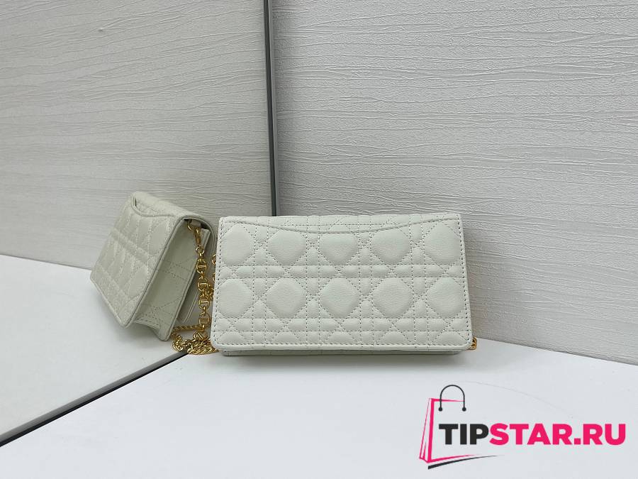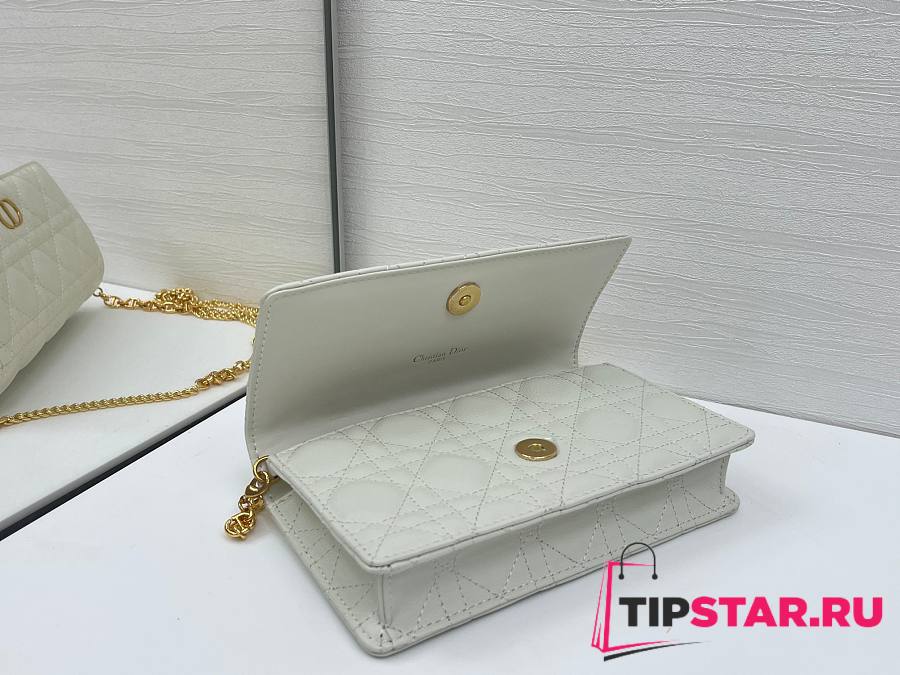 Dior Lady phone holder white patent cannage calfskin 18cm