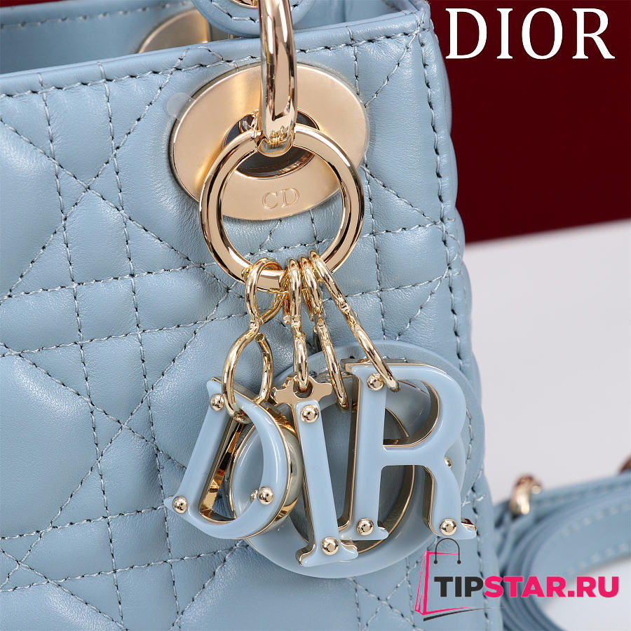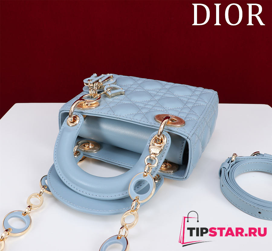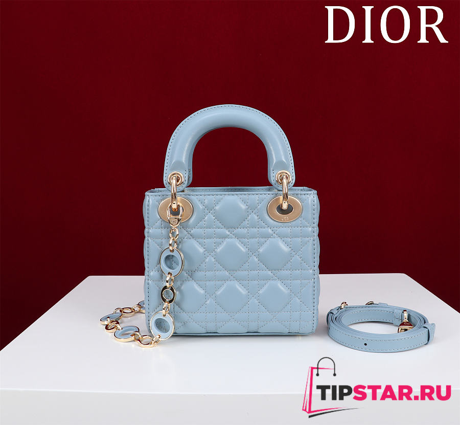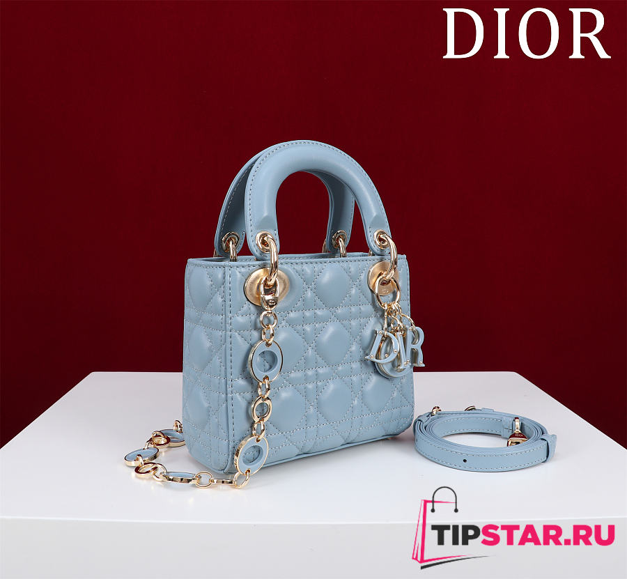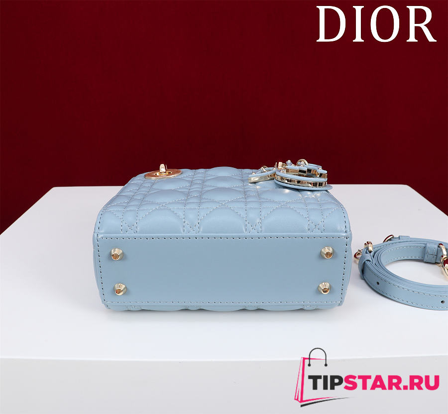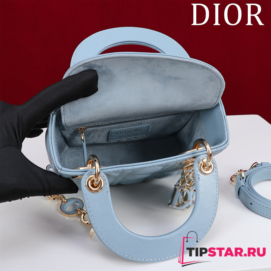 Dior Lady Leather with Velvet In Blue Size 17*15*7cm